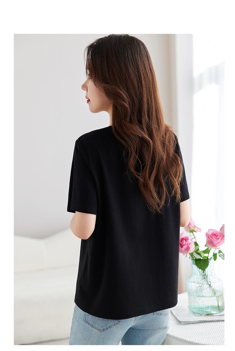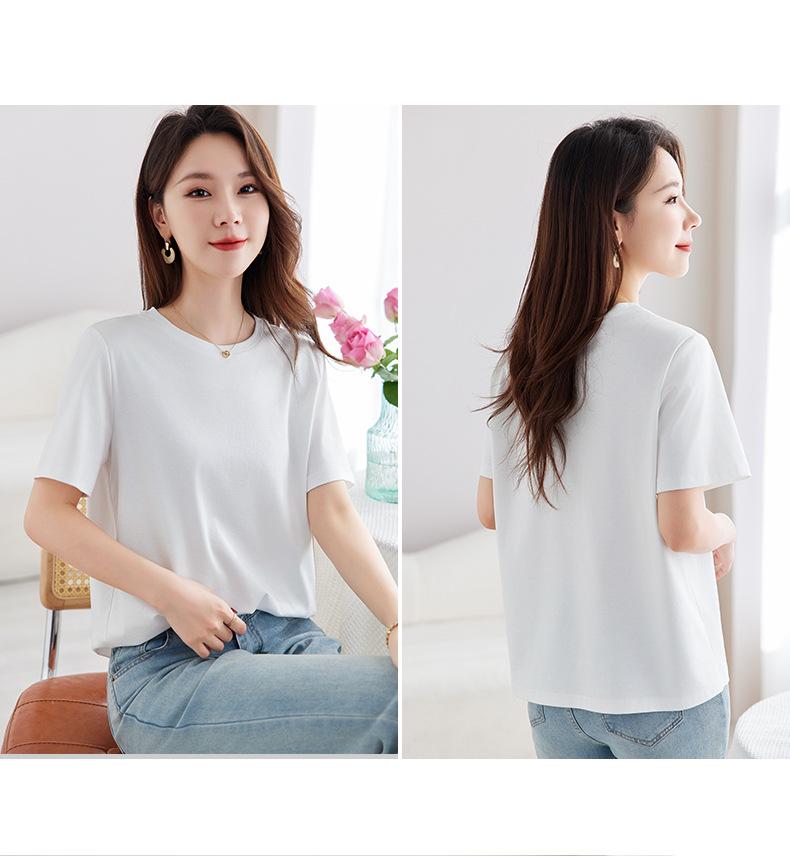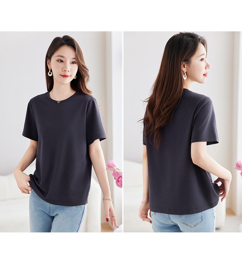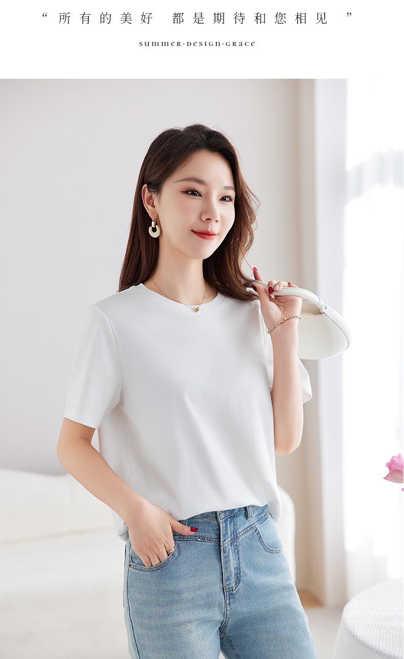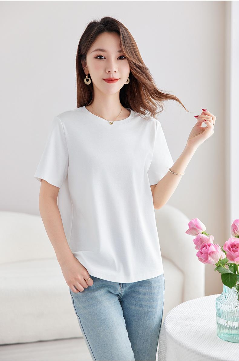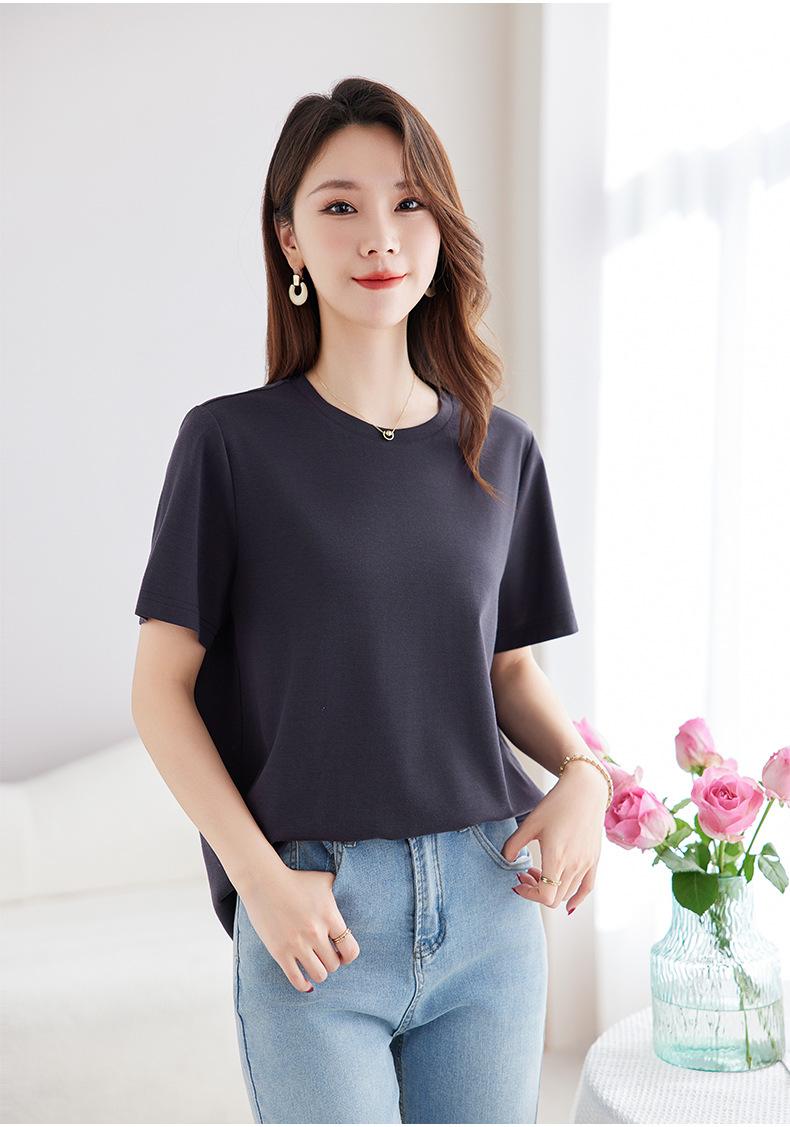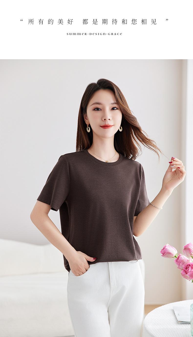 [Fibra Regenerada Mezclada con Seda] Verano Nueva Camiseta Slim de Cuello Redondo para Mujer Suelta Combinable Camiseta Básica 9060
