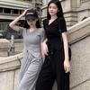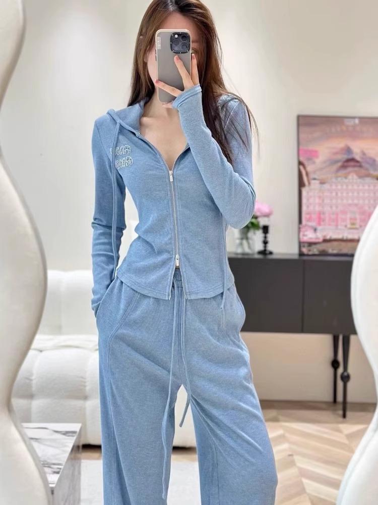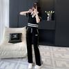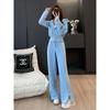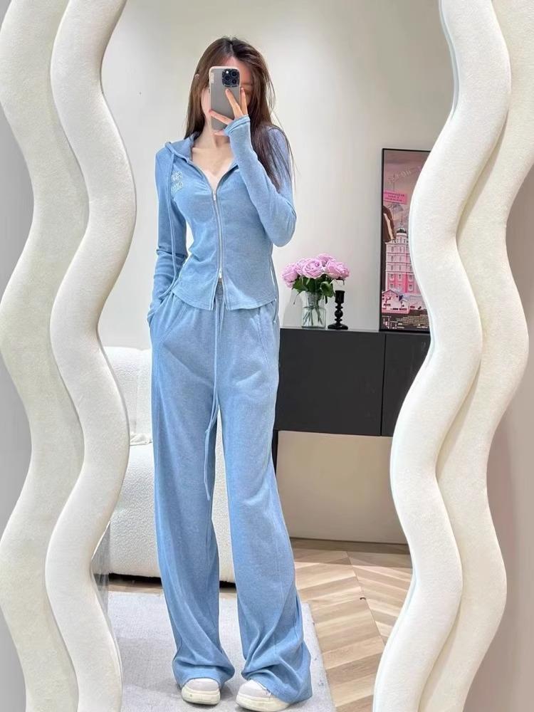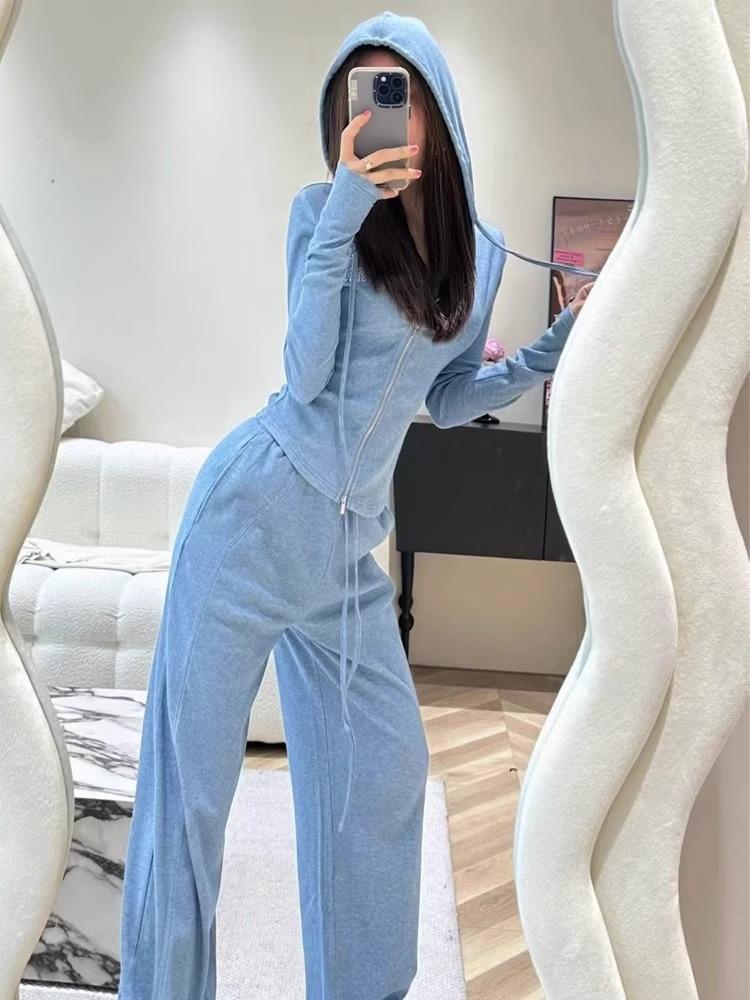 Traje Deportivo Casual Urbano de Celebridad de Internet para Mujer Primavera y Otoño Nuevo Popular Estilo K Sudadera Slim Pantalones de Pierna Ancha Conjunto de Dos Piezas