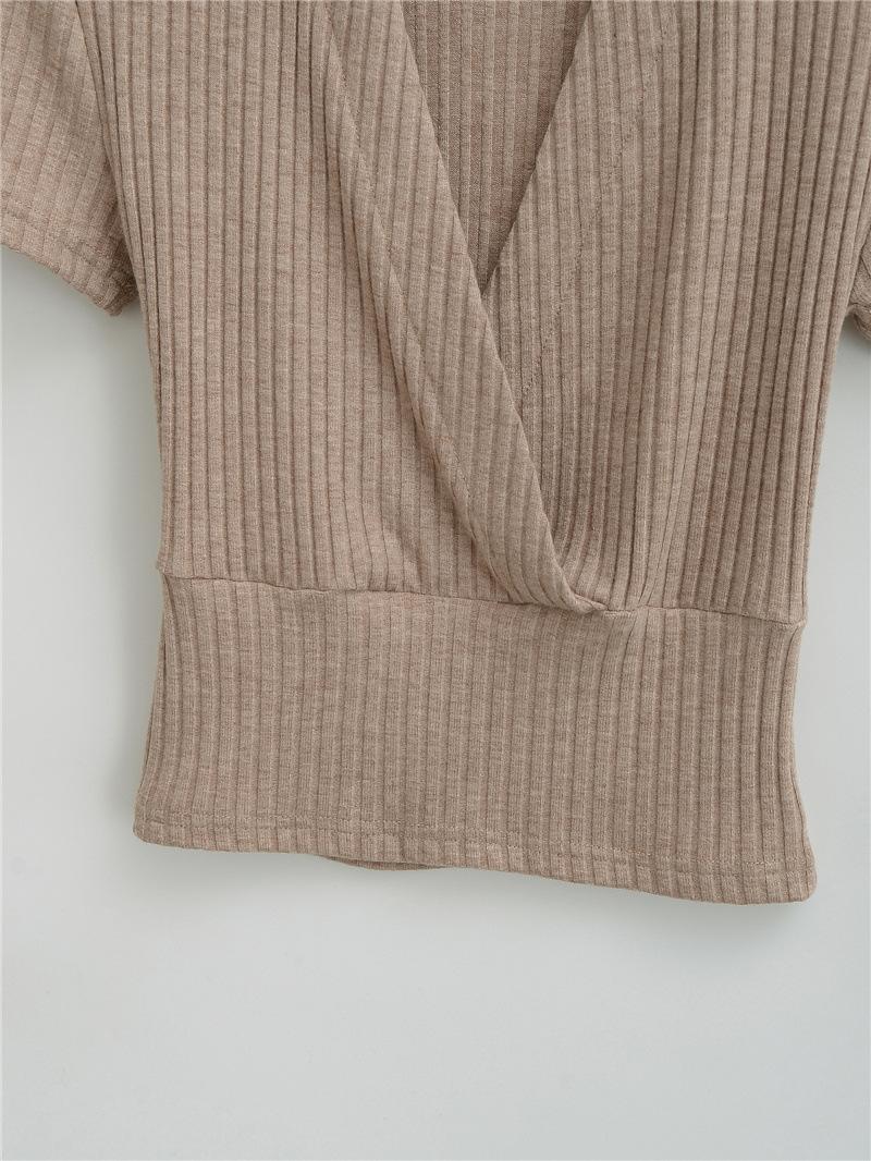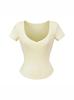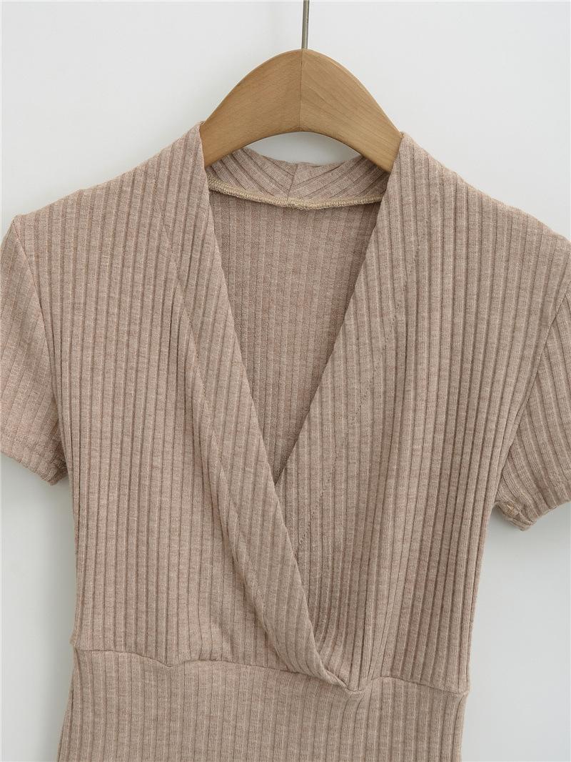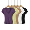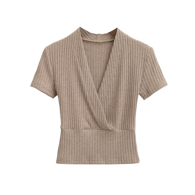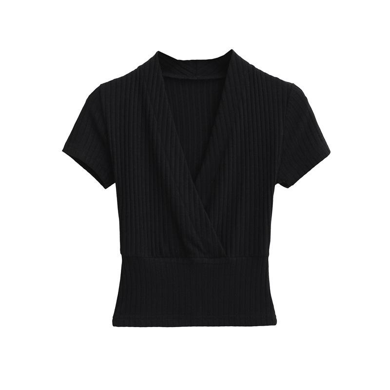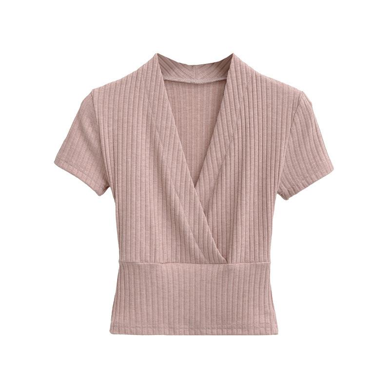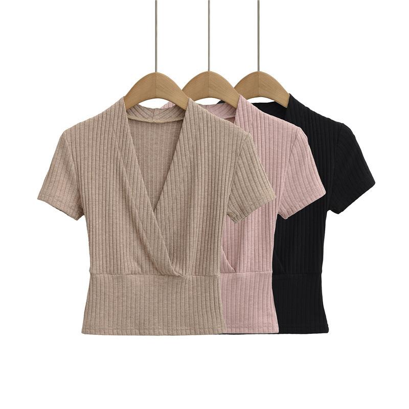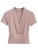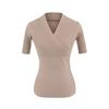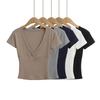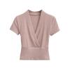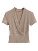 Pura Lujuria Sexy Sexy Cuello en V Cruzado Manga Corta Tejido de Punto 2025 Verano Nuevo Ajustado Cintura Baja Camiseta Básica para Mujer