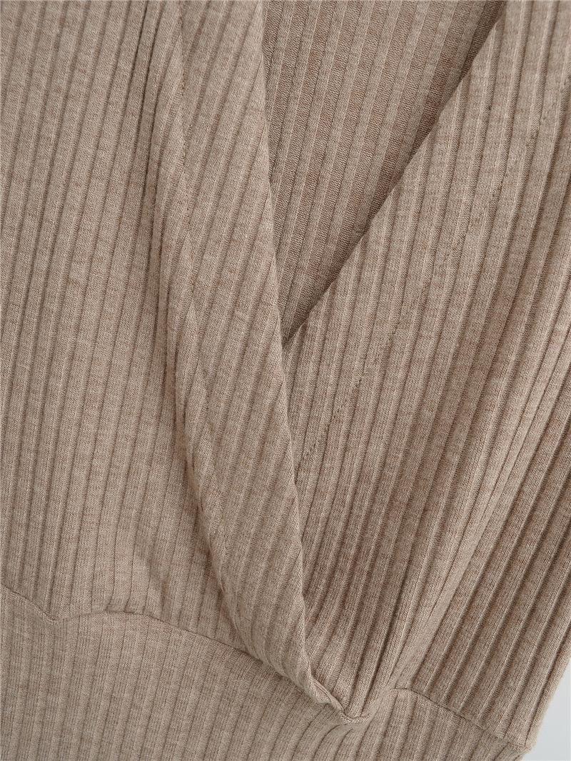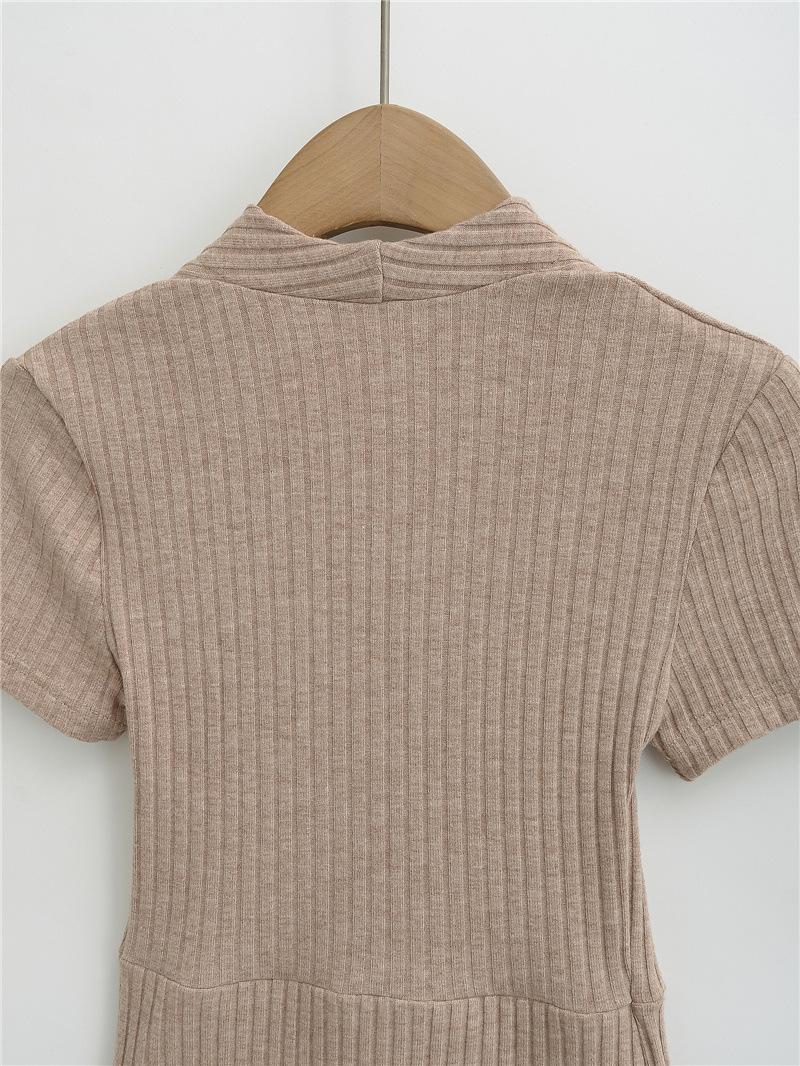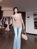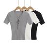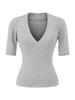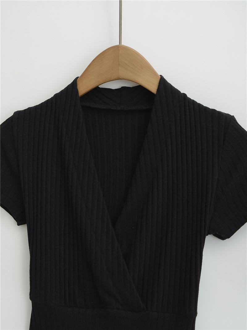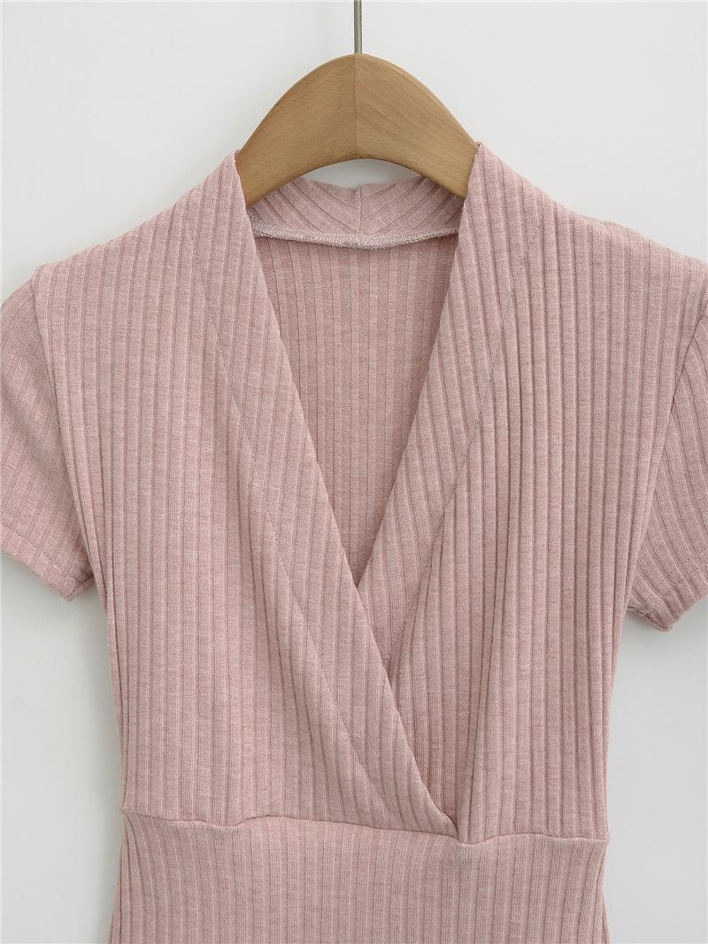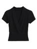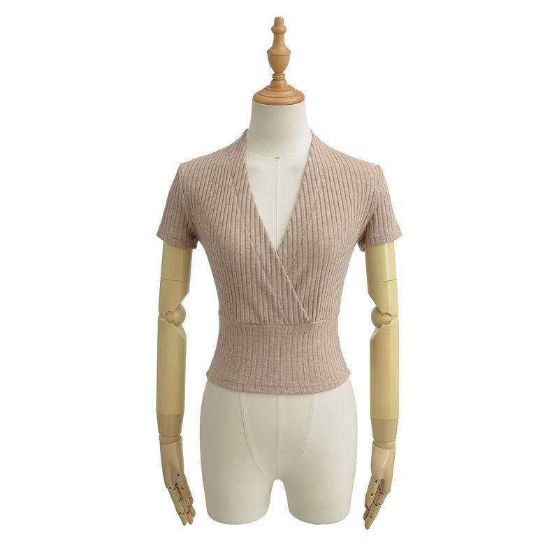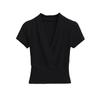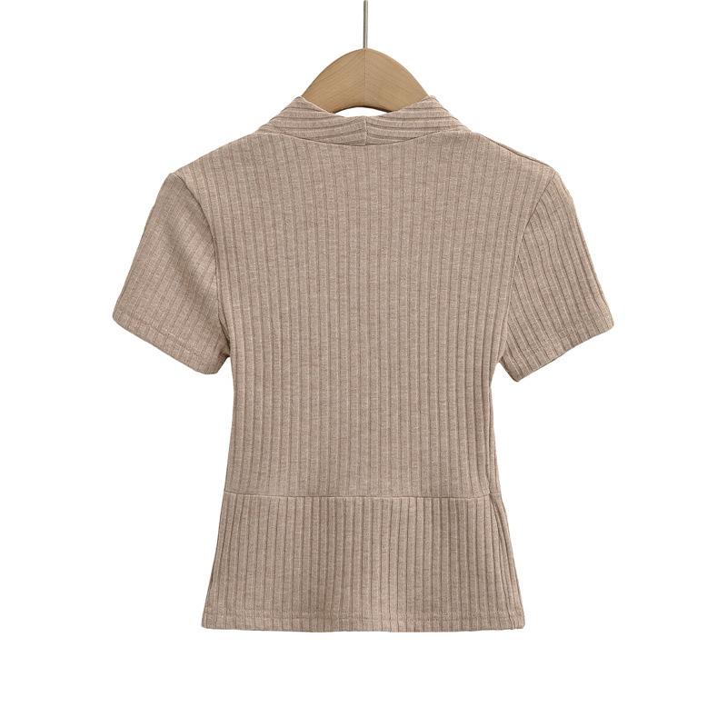 Pura Lujuria Sexy Sexy Cuello en V Cruzado Manga Corta Tejido de Punto 2025 Verano Nuevo Ajustado Cintura Baja Camiseta Básica para Mujer