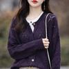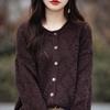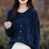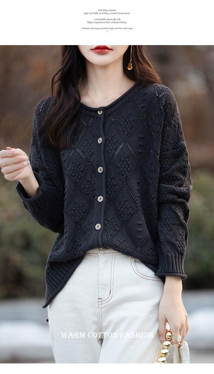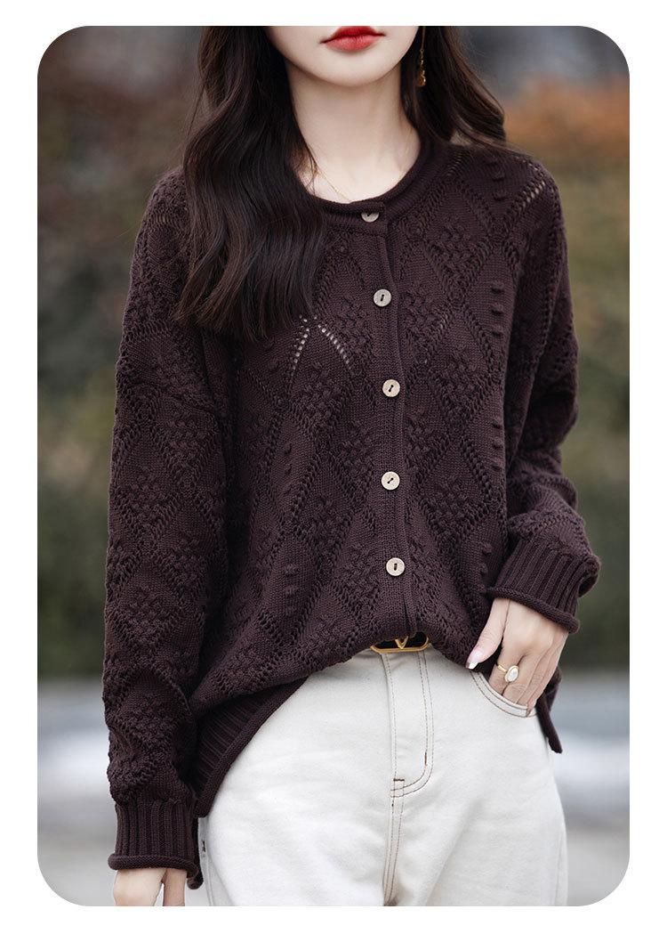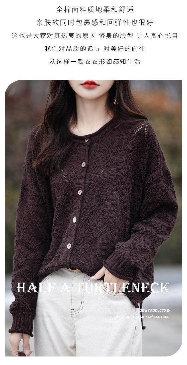 Cárdigan de Algodón de Primavera Calado Suéter Tejido Chaqueta para Mujer Artístico Combinable Casual Manga Larga Chaqueta Exterior
