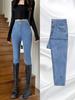 Jeans para mujer 2025, nuevos leggings elásticos ajustados de cintura alta, color claro, de moda, para primavera y otoño