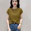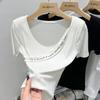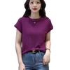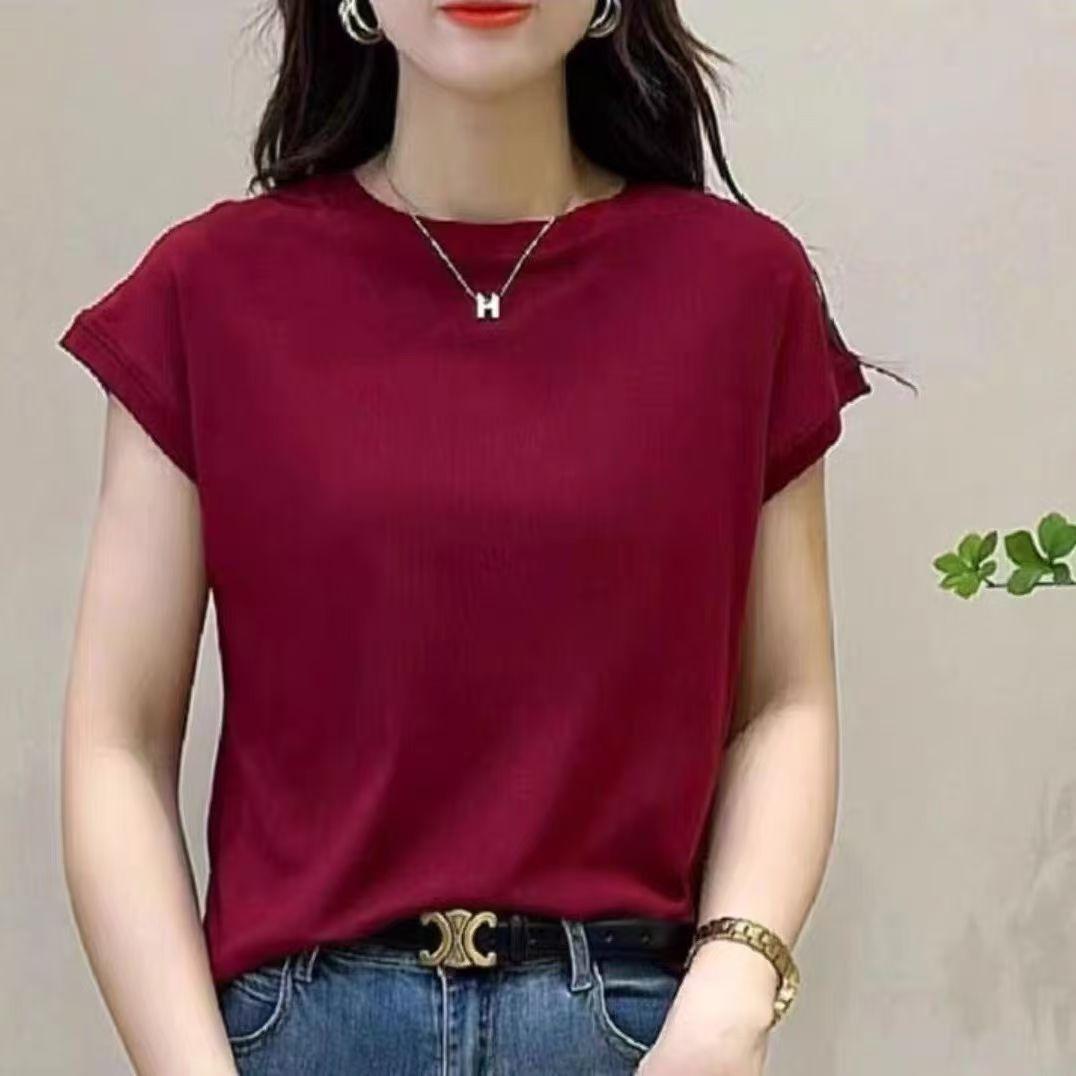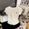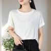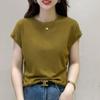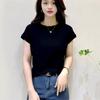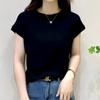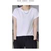 Nueva camiseta holgada de manga corta para mujer, con cuello redondo, color liso, diseño Sense Niche, mangas cortas con vuelo, en blanco y negro.