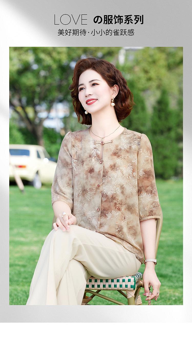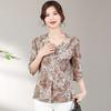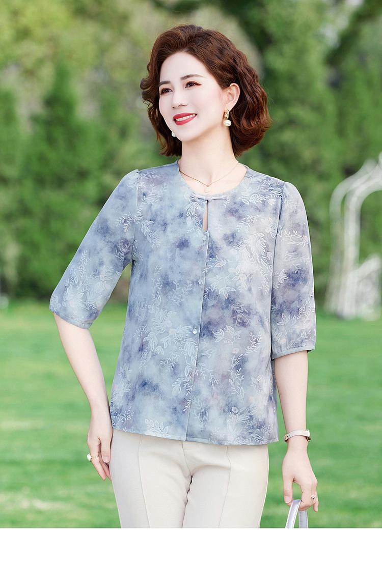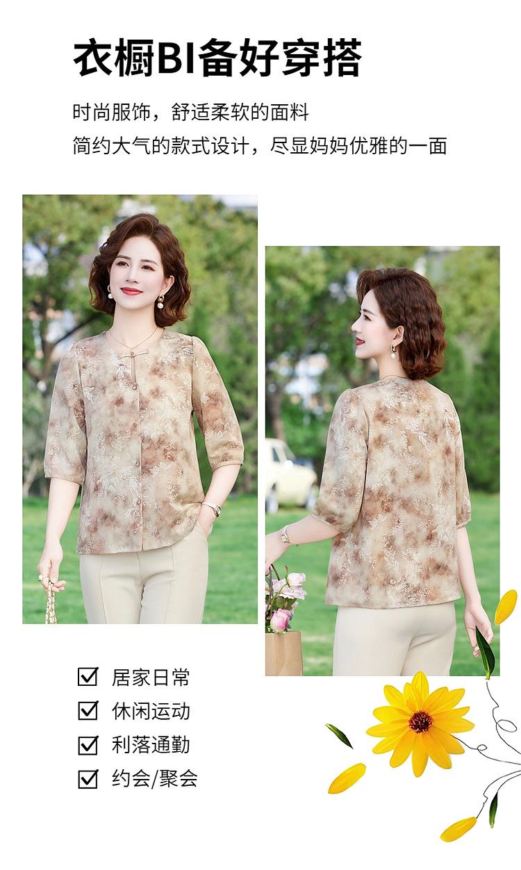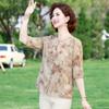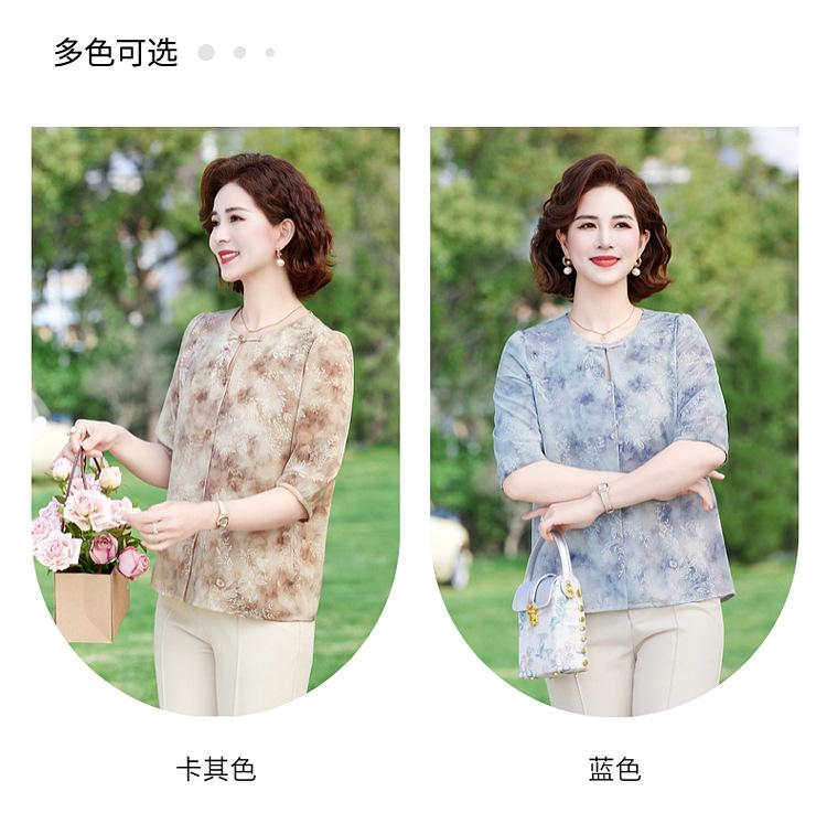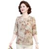 Camiseta de Verano de Manga Media para Madre 2025 Nueva Moda para Mujeres de Mediana Edad y Mayores Camisa de Chifón Estampada Holgada tipo Abuela