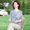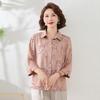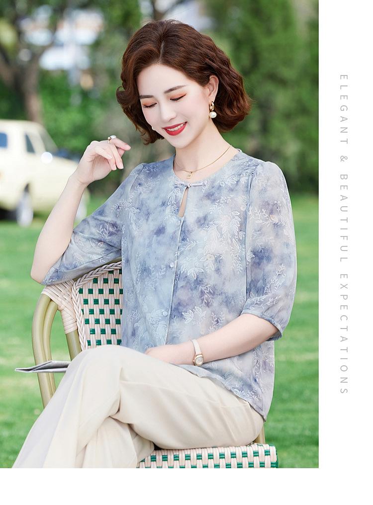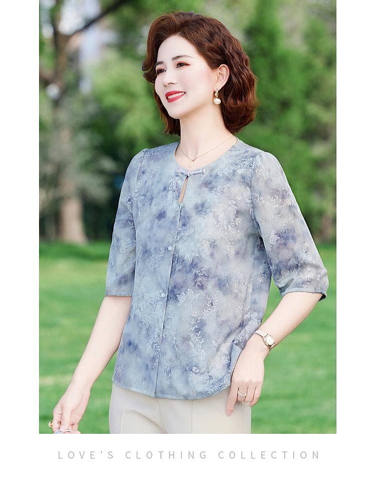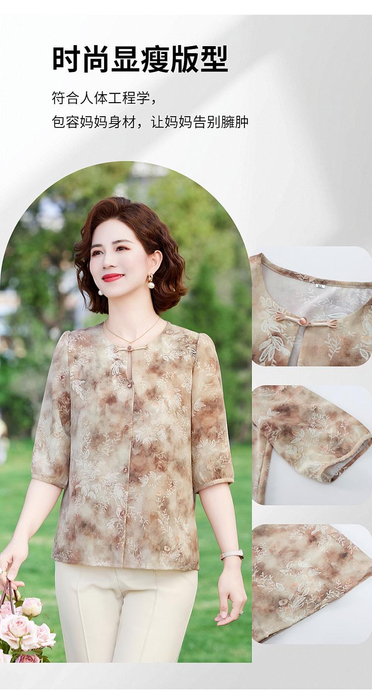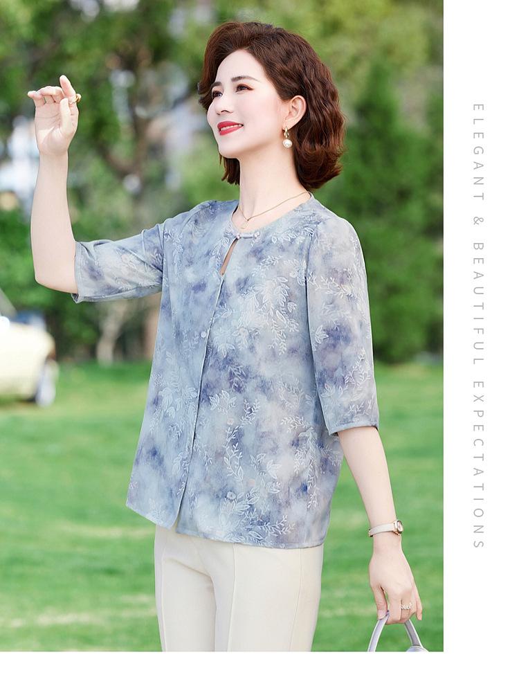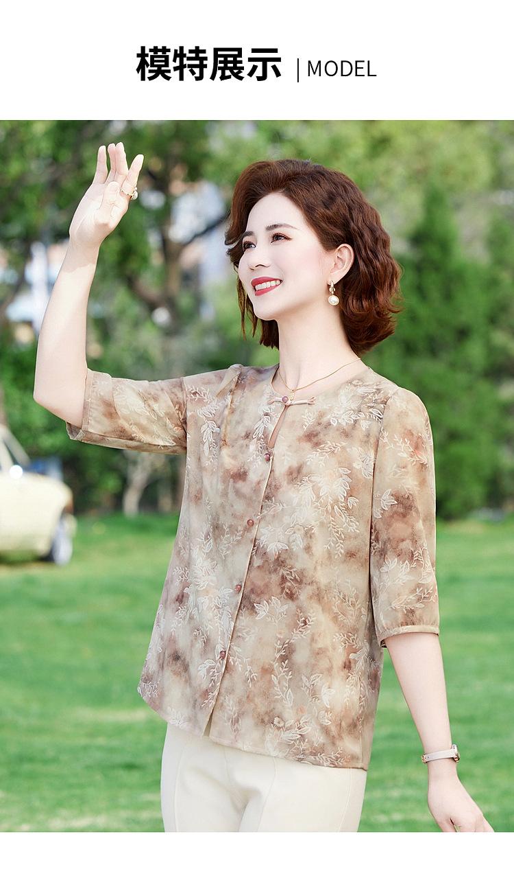 Camiseta de Verano de Manga Media para Madre 2025 Nueva Moda para Mujeres de Mediana Edad y Mayores Camisa de Chifón Estampada Holgada tipo Abuela