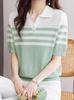 Camiseta de manga corta con cuello polo para mujer, novedad de verano 2025, camiseta de suéter con solapa y parte superior a rayas de color a juego para mujer