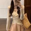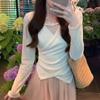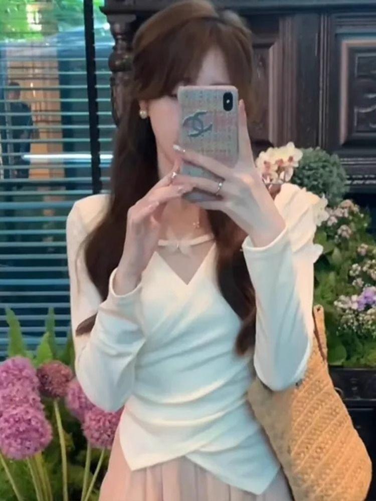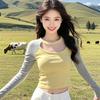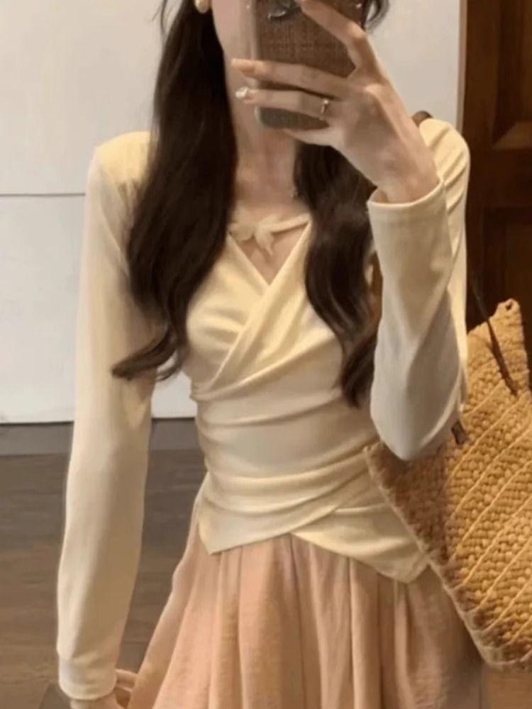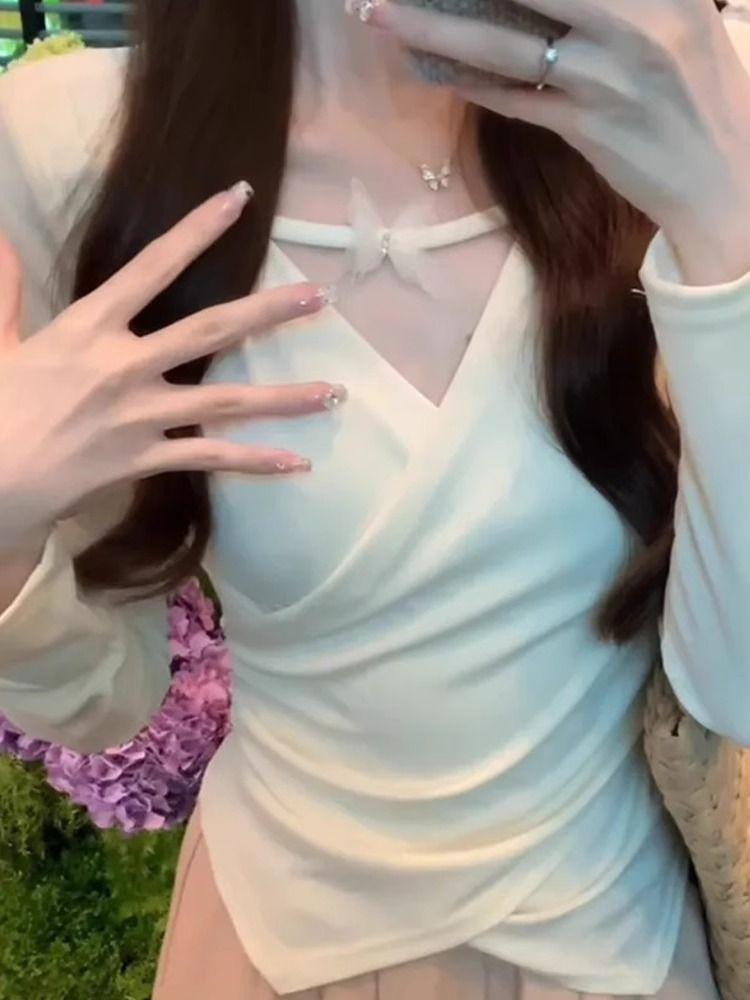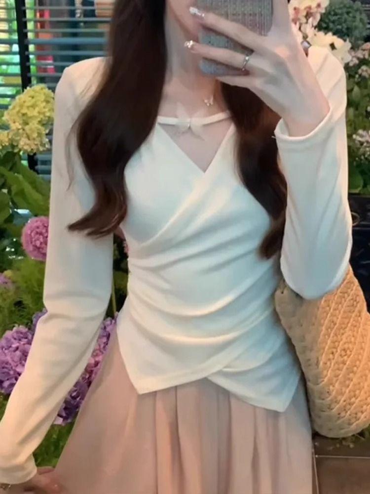 Diseño de Chica Especia de Otoño Nicho Cruz Camiseta de Manga Larga 2024 Nueva Pequeña Ajustada Adelgazante Chic Top