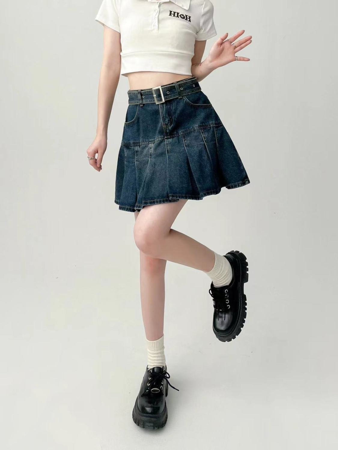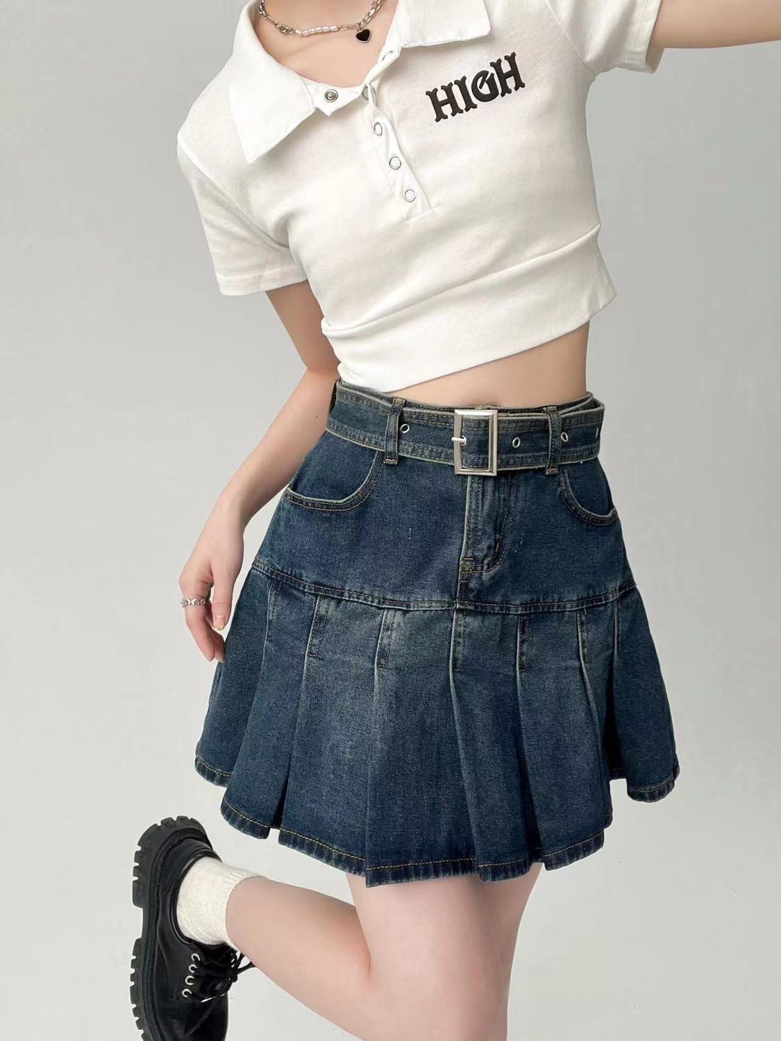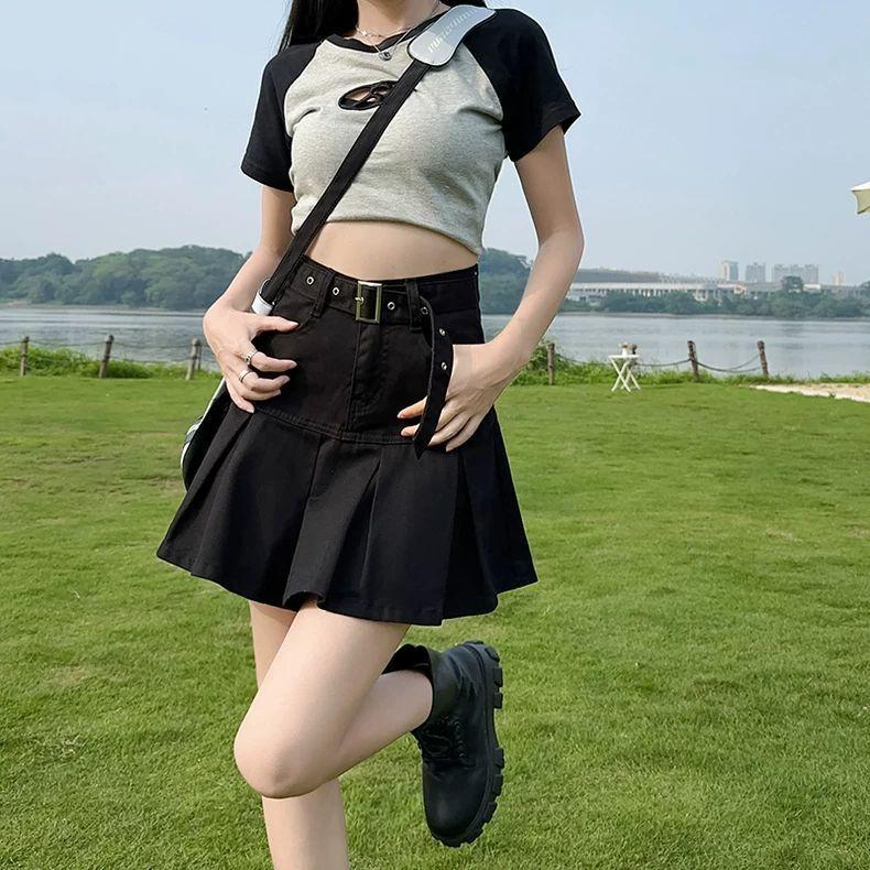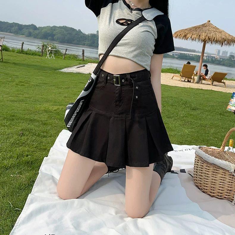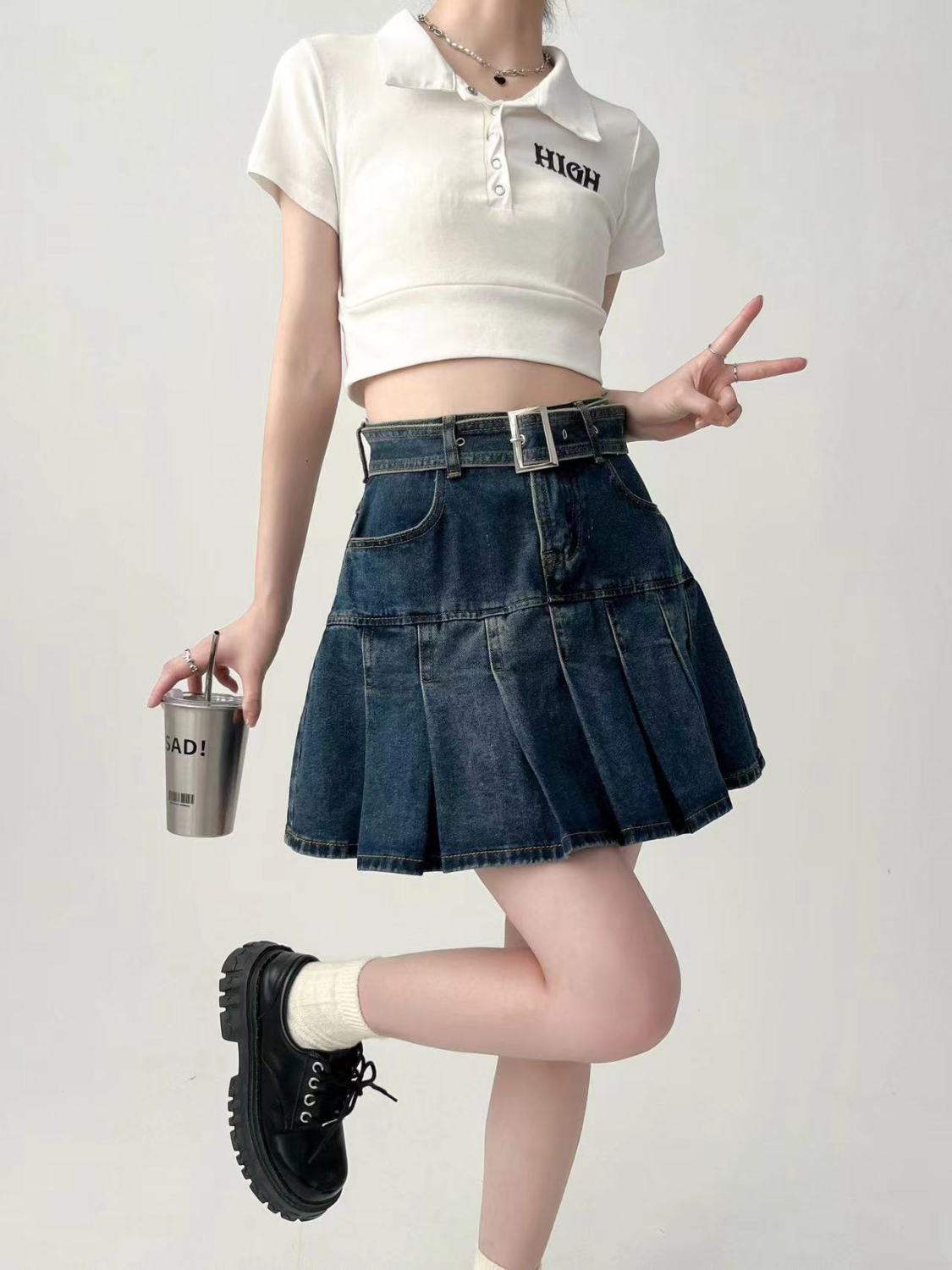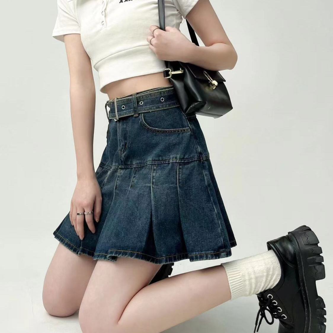Falda corta plisada de cintura alta para mujer, estilo retro americano, estilo sexy, para verano de 2025