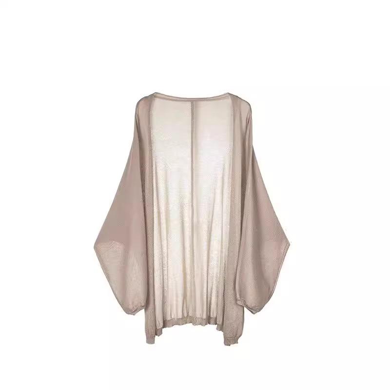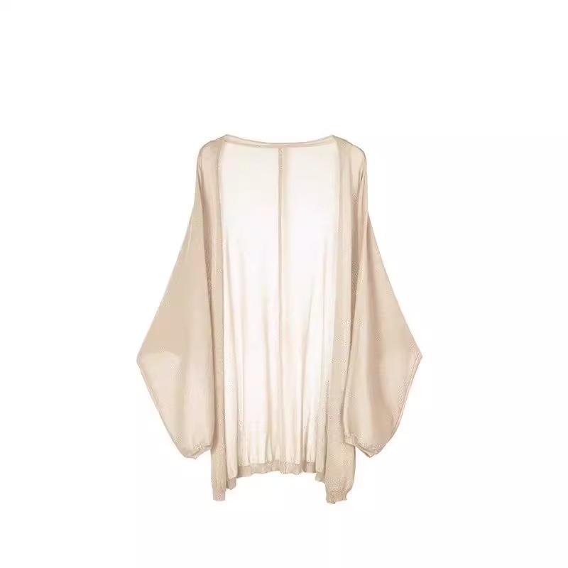Chaqueta Cárdigan Tejida de Seda Helada Suelta de Verano para Mujer Blusa para Aire Acondicionado