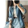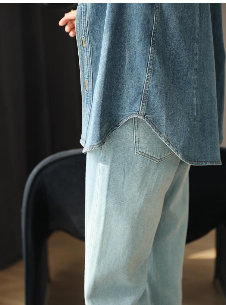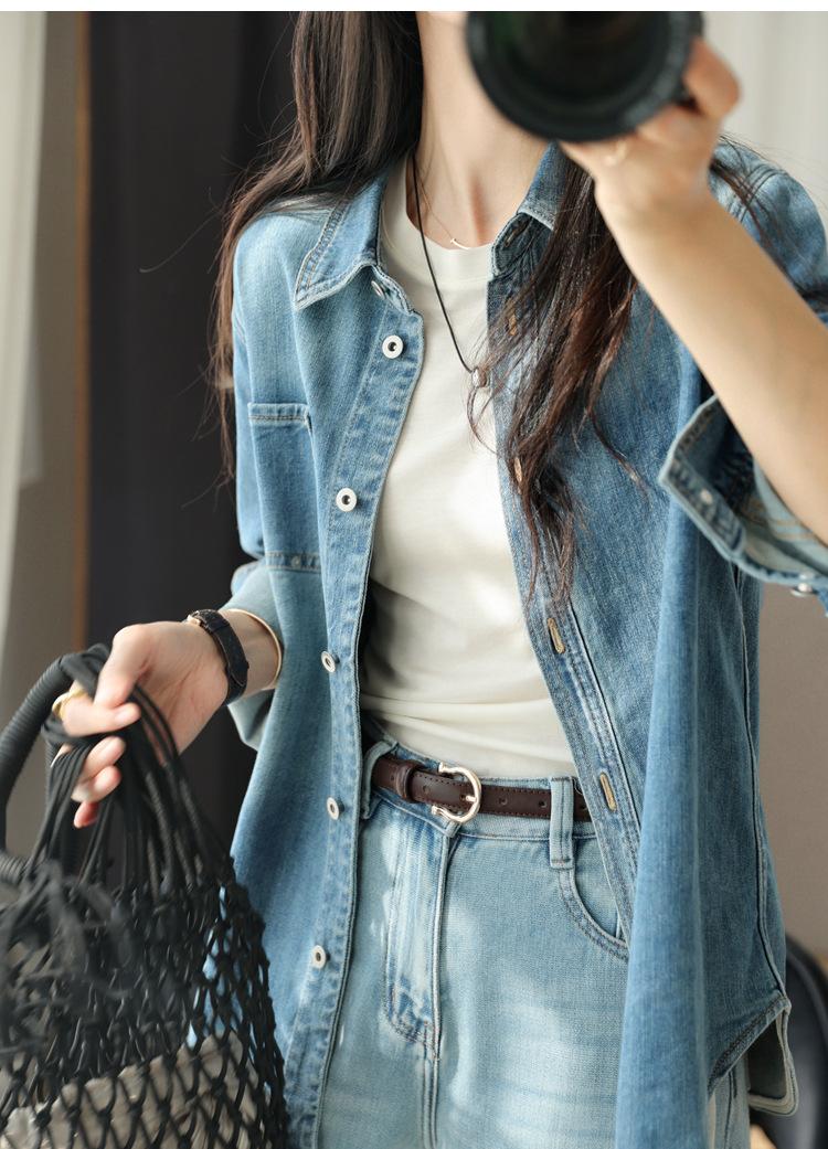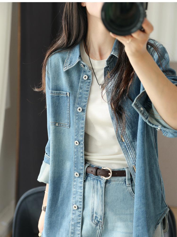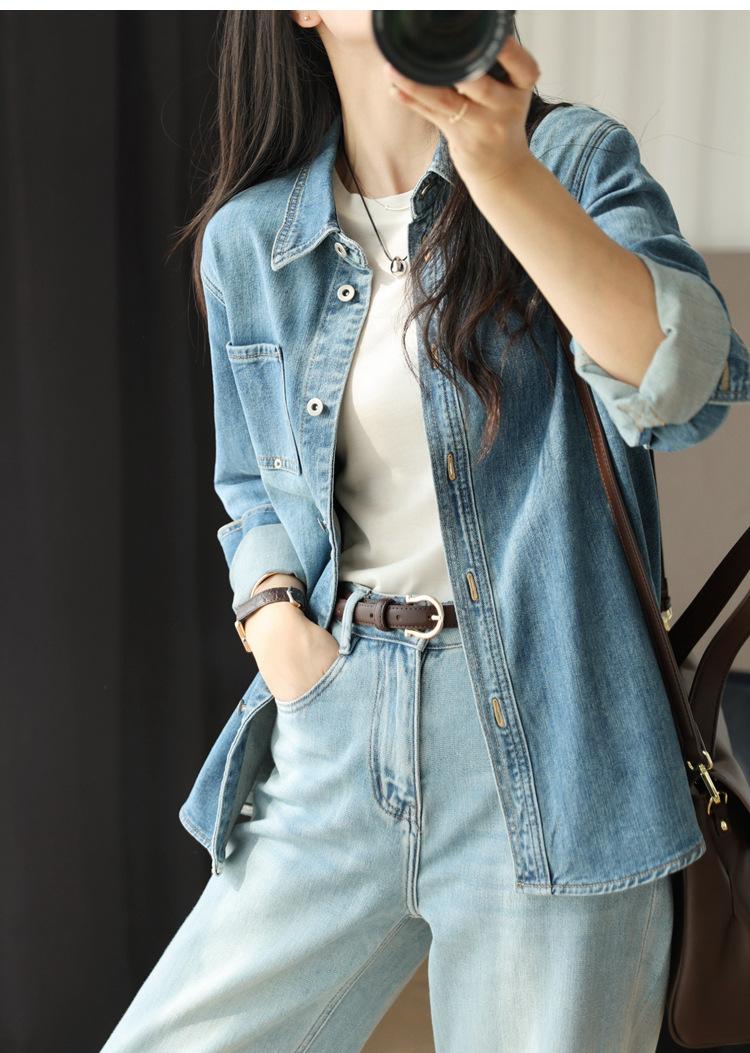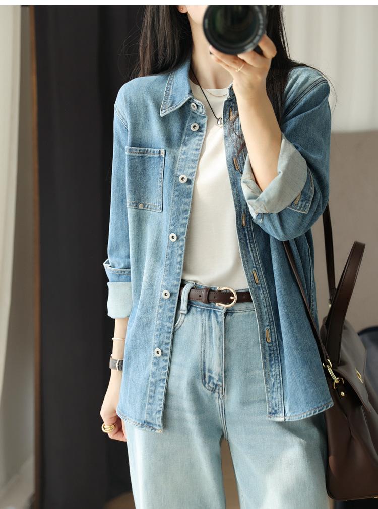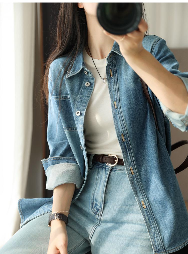Combinada con la tela vaquera ajustada, la prenda luce elegante