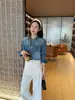 ¡Viento novio a la moda! Camisa de Solapa de Alta Textura Cómoda de Algodón Suave Chaqueta de Mezclilla Suelta Casual Top para Mujer