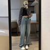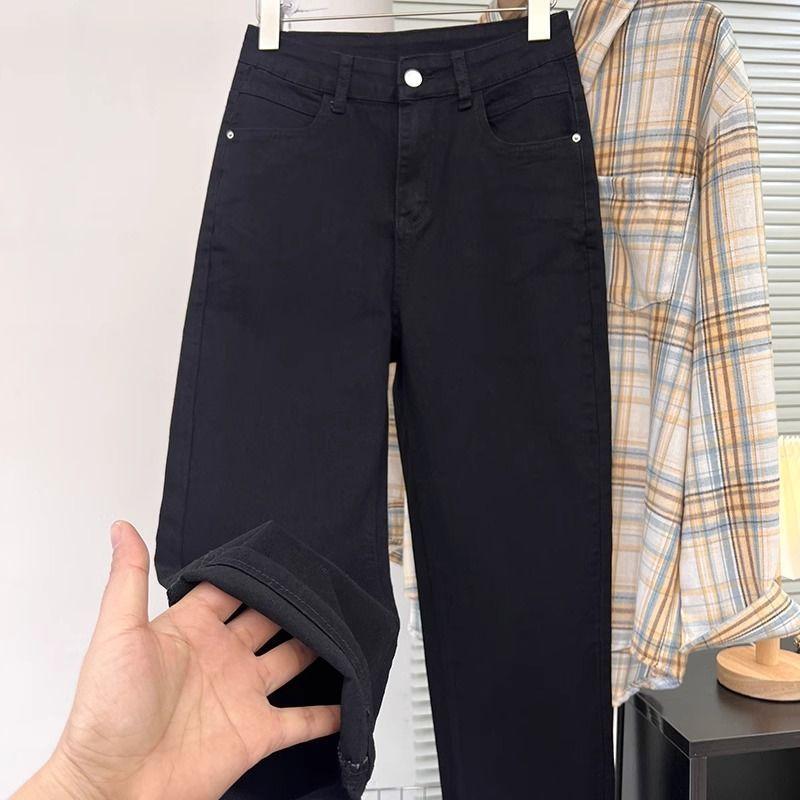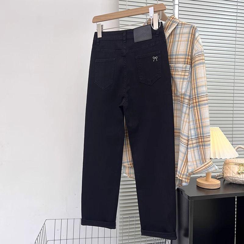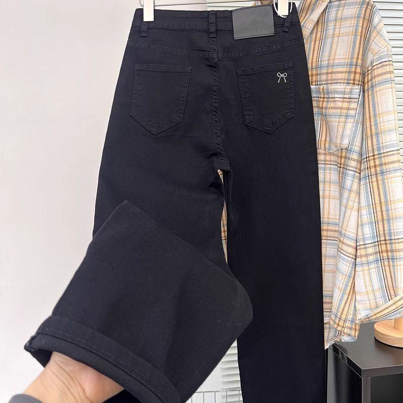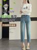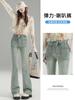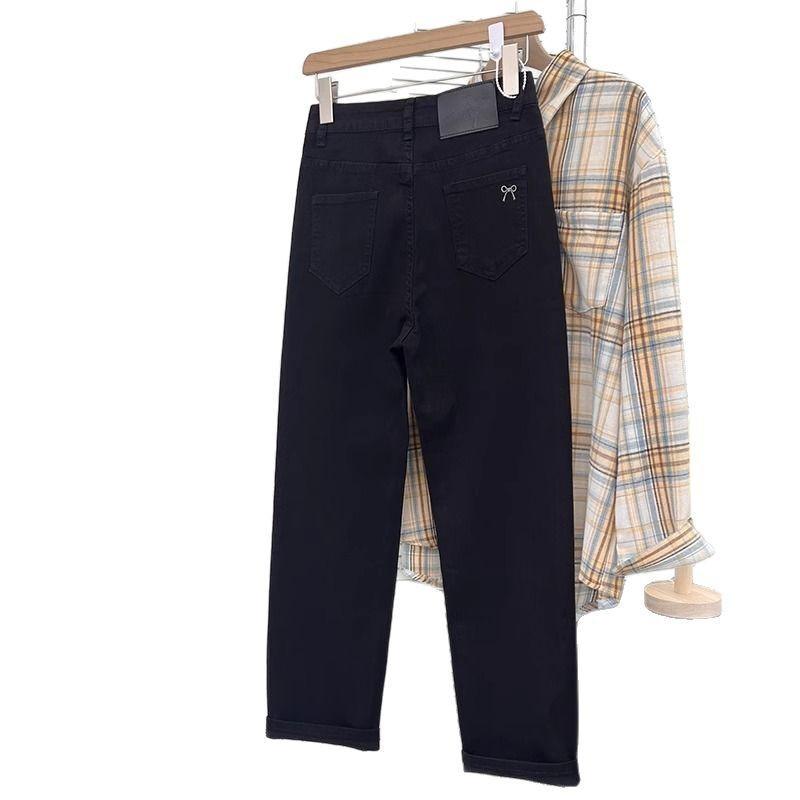 Pantalones vaqueros elásticos de cintura alta para mujer, de talla grande, para primavera y verano de 2025, nuevos pantalones rectos pequeños de nueve puntos adelgazantes.