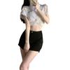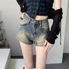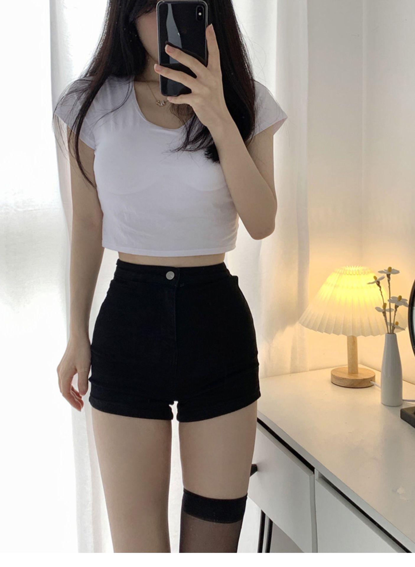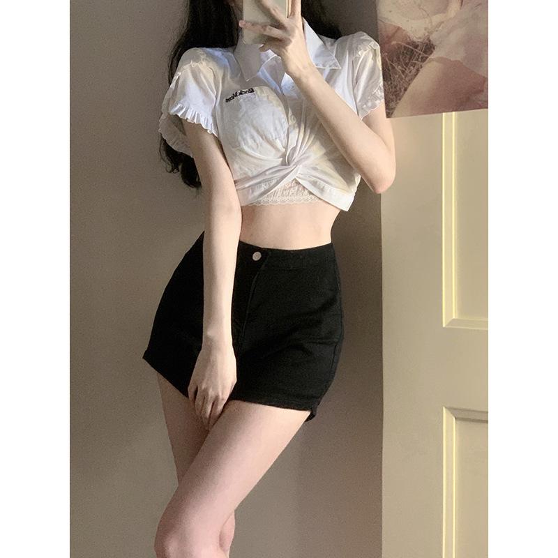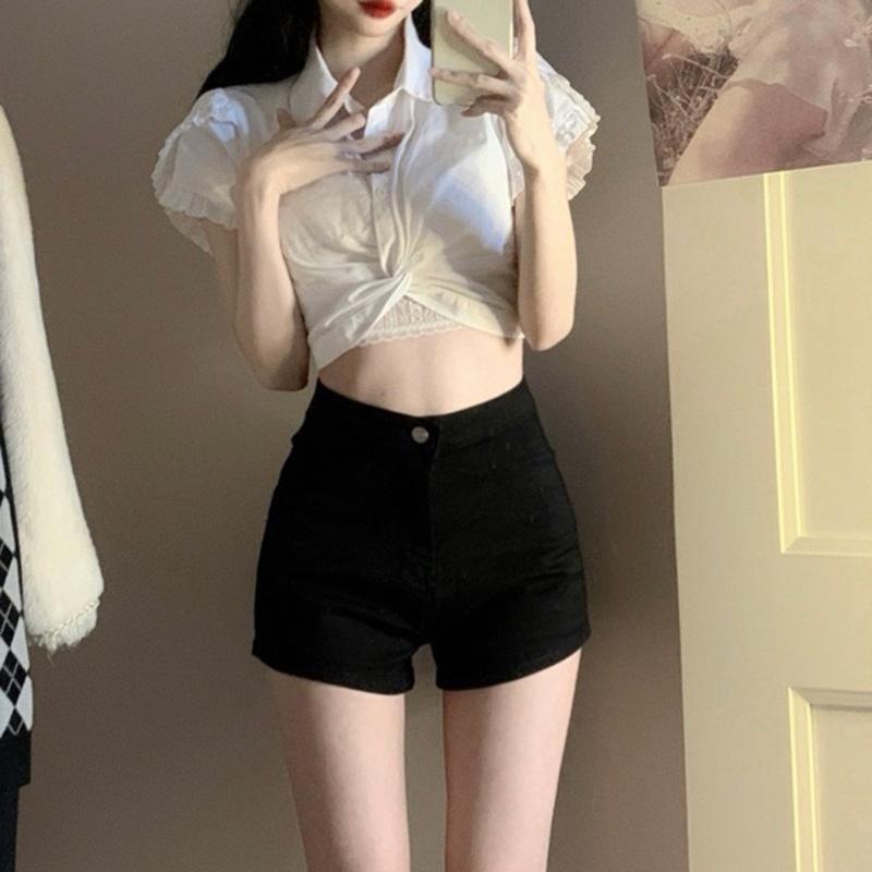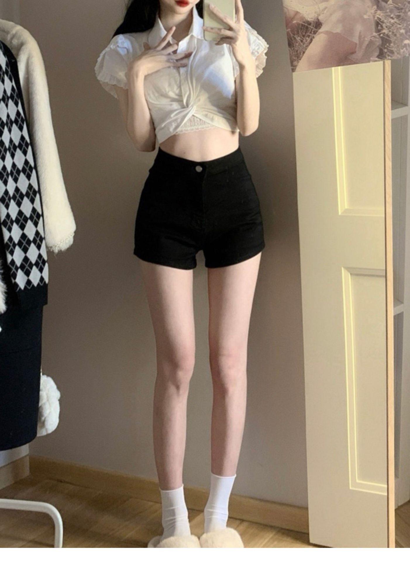 Pantalones cortos vaqueros negros en forma de A para mujer, de verano, con cintura alta elástica, adelgazantes, rectos y de pierna ancha.