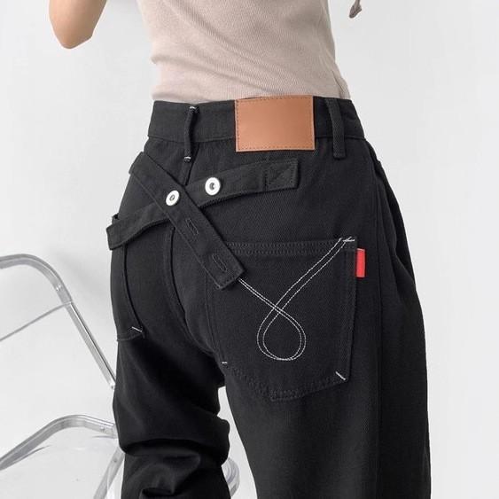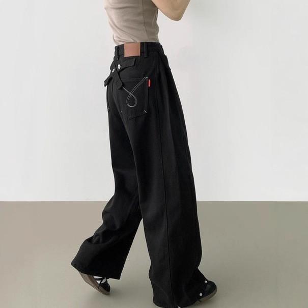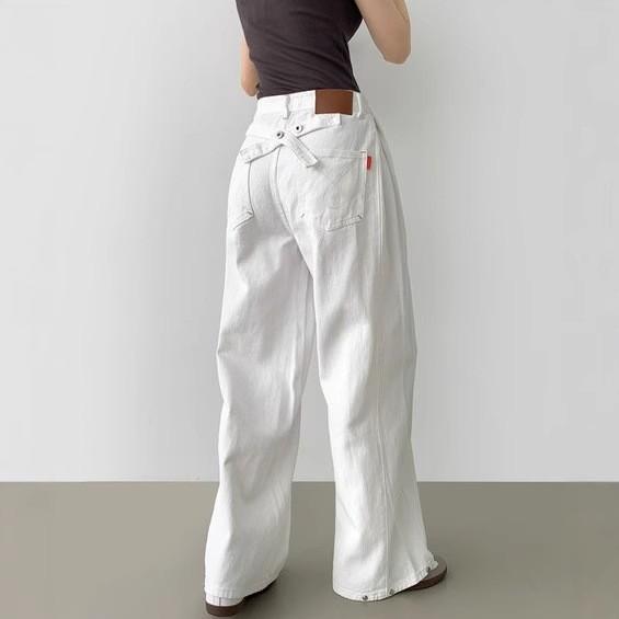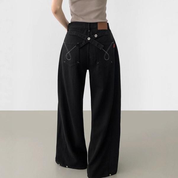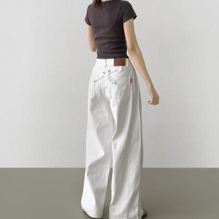 Jeans Rectos de Cintura Alta Holgados con Diseño de Empalme con Costuras Superiores de Alta Calidad de Dongdaemun de Corea del Sur para Mujer Primavera