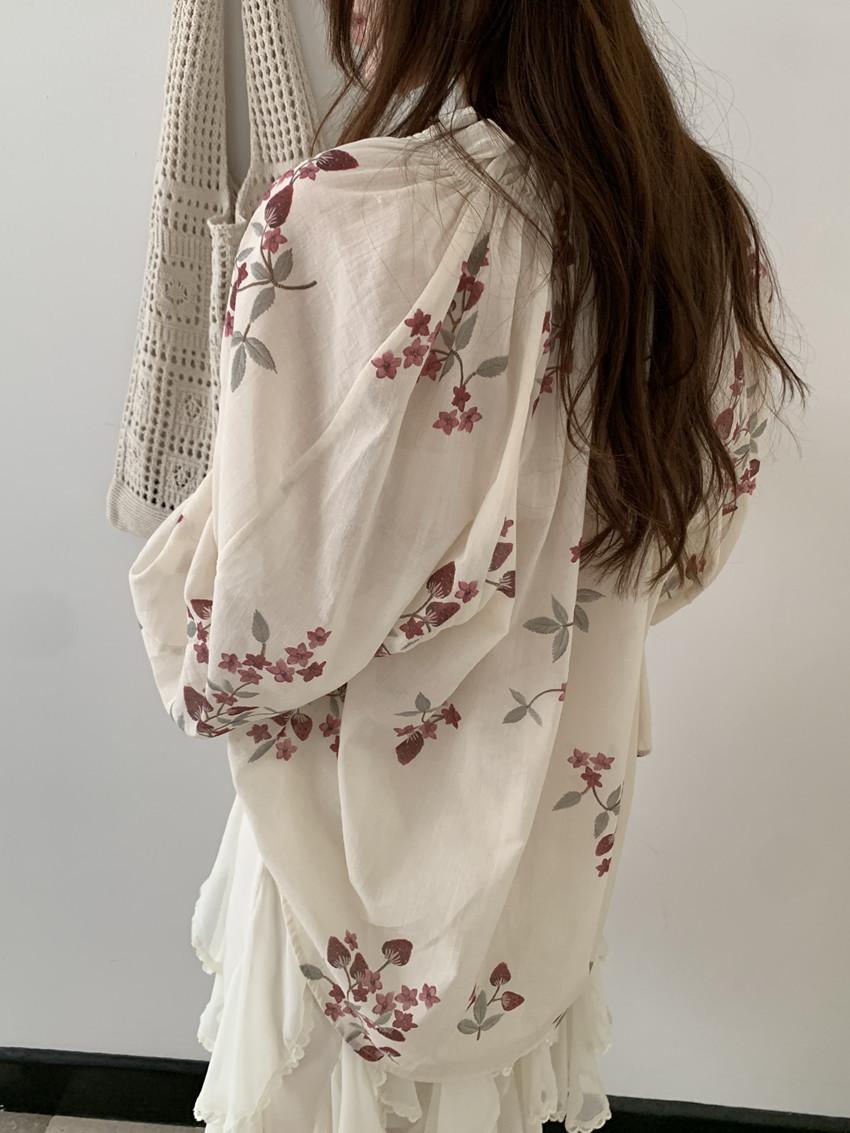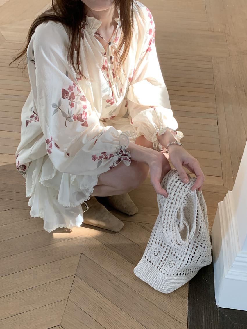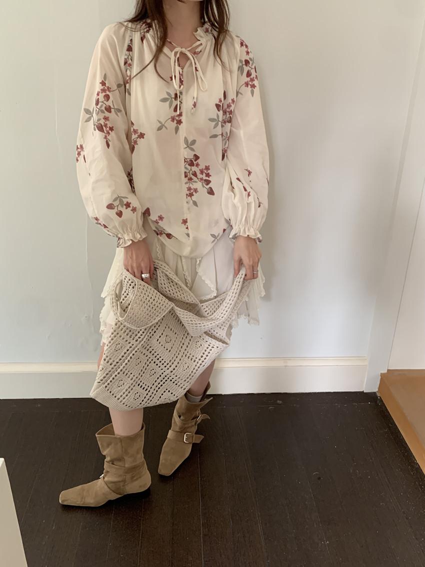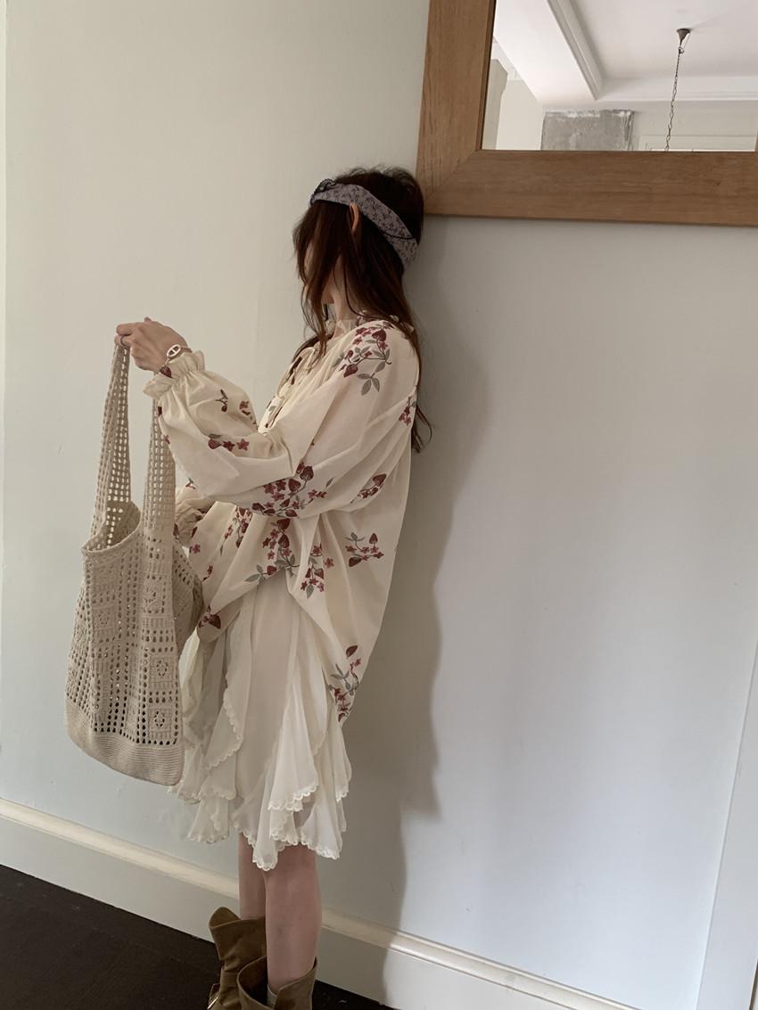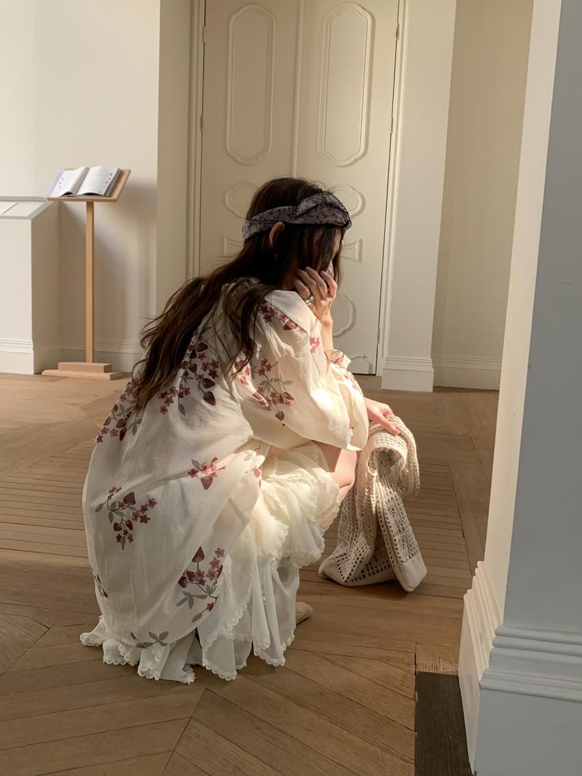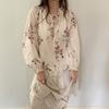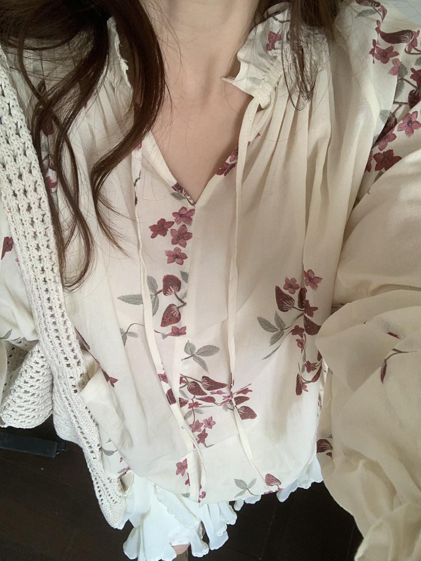 Foto Real de Traje de Dos Piezas de Estilo Retro, Camisa con Flores Estampadas + Falda de Encaje con Diseño Asimétrico
