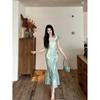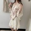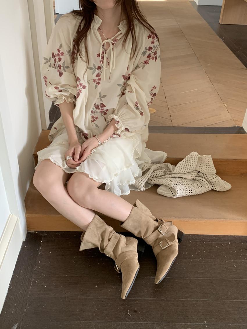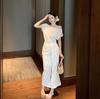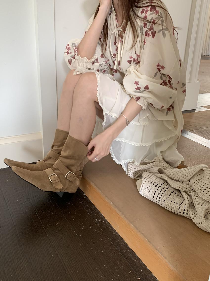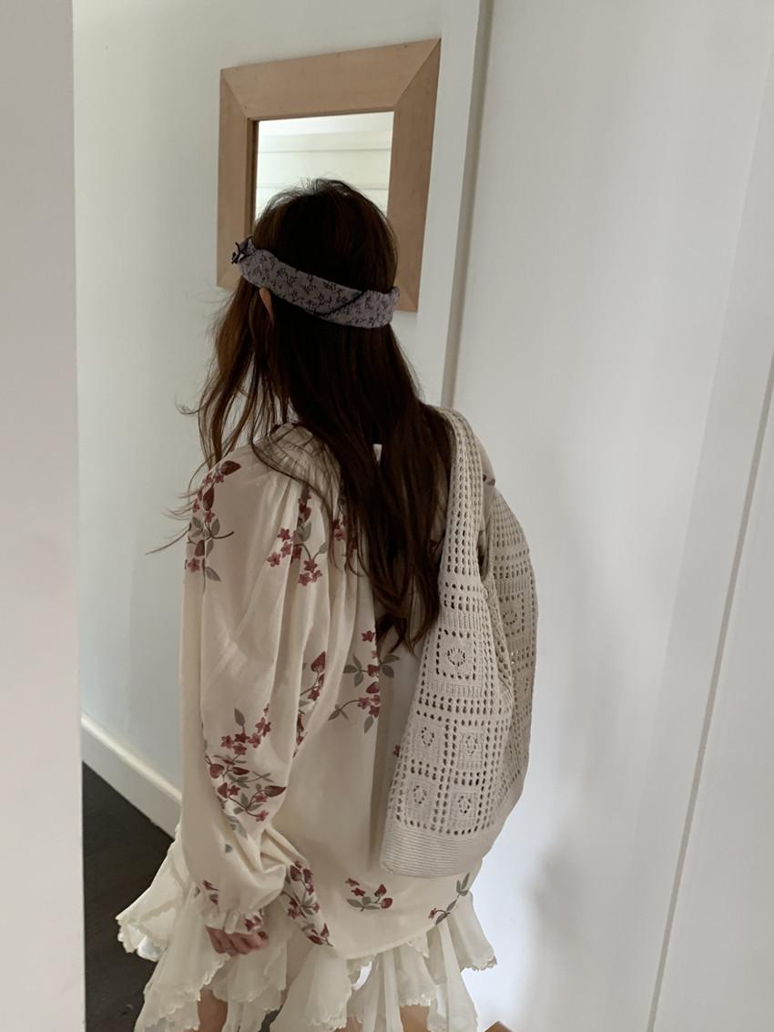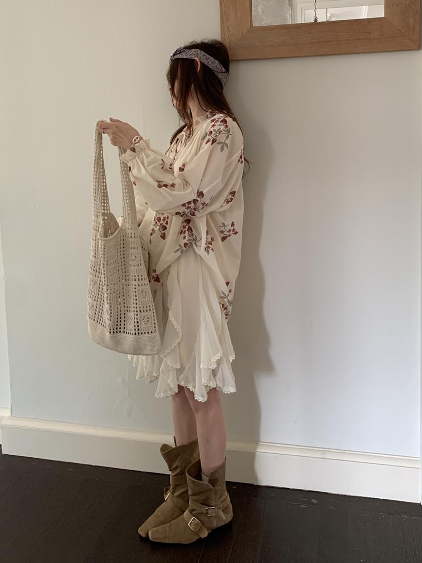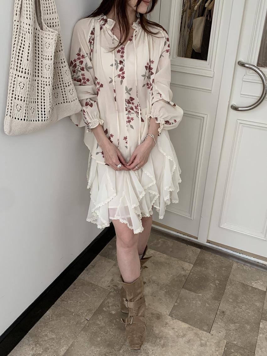 Foto Real de Traje de Dos Piezas de Estilo Retro, Camisa con Flores Estampadas + Falda de Encaje con Diseño Asimétrico