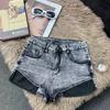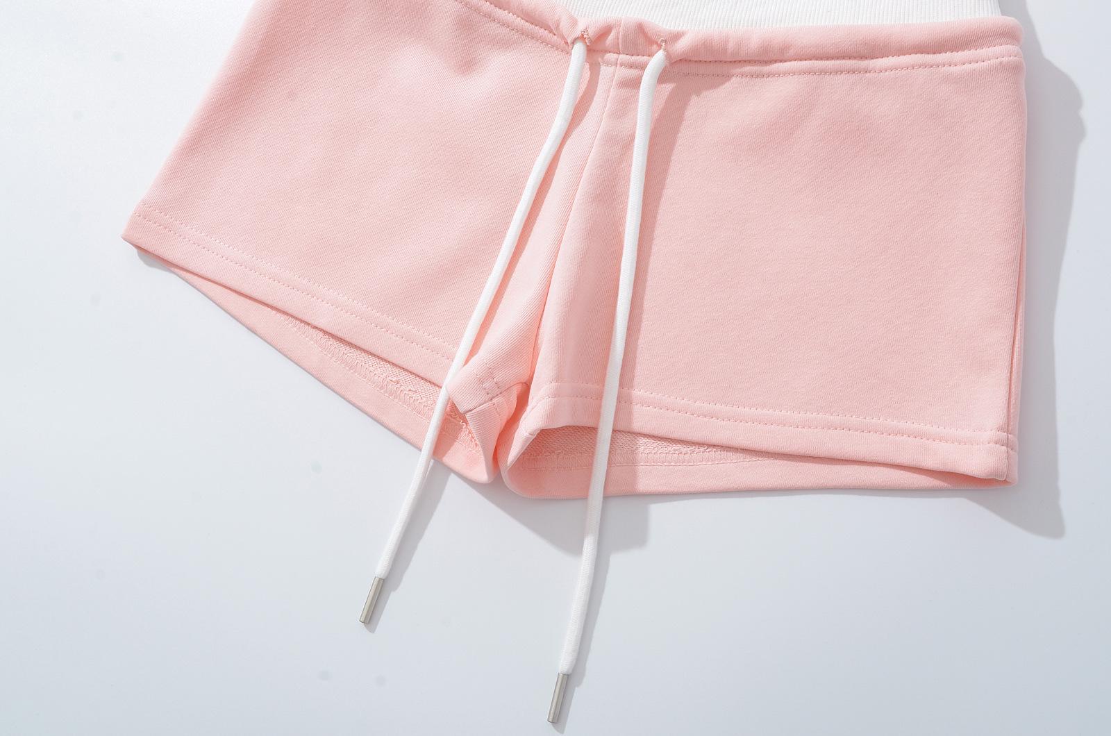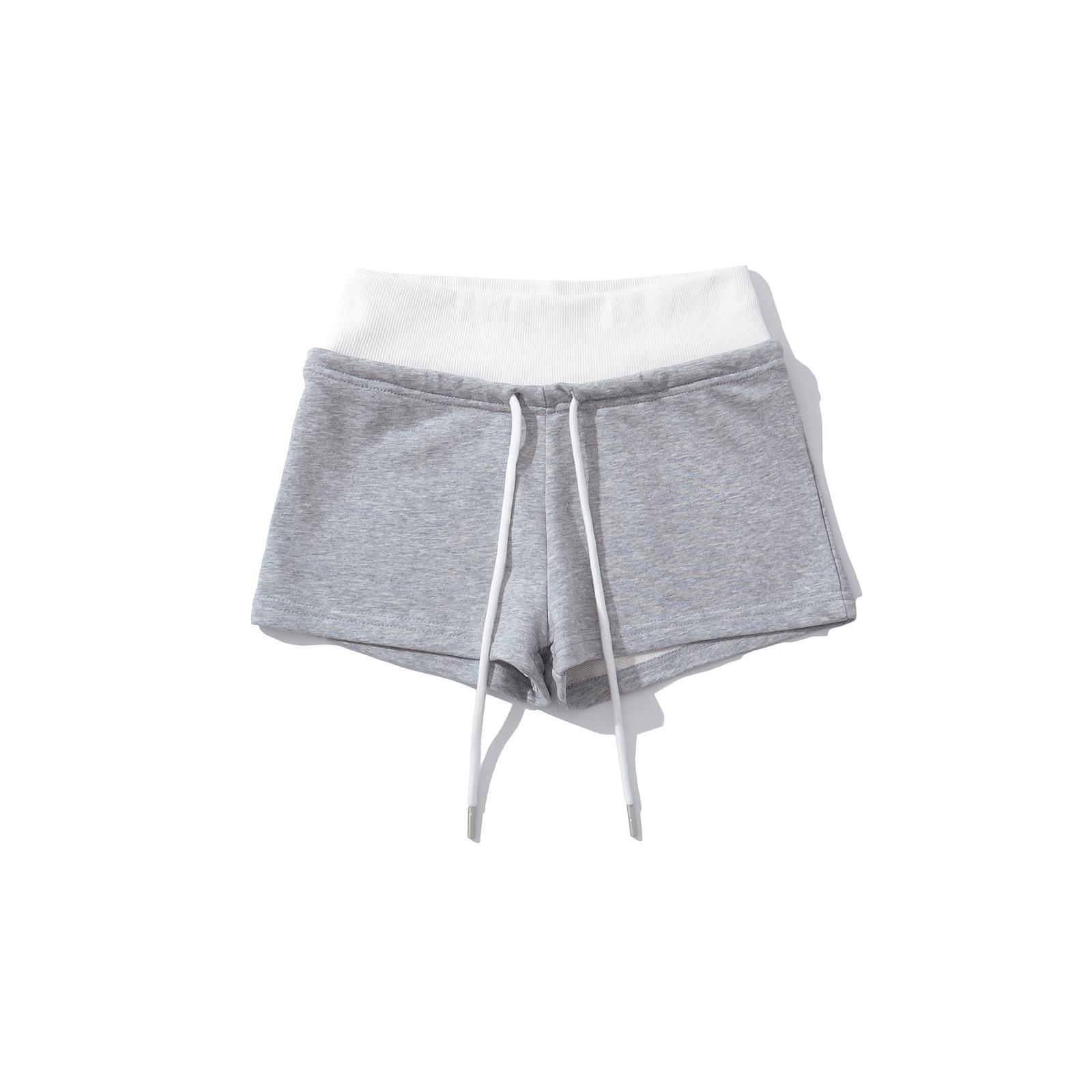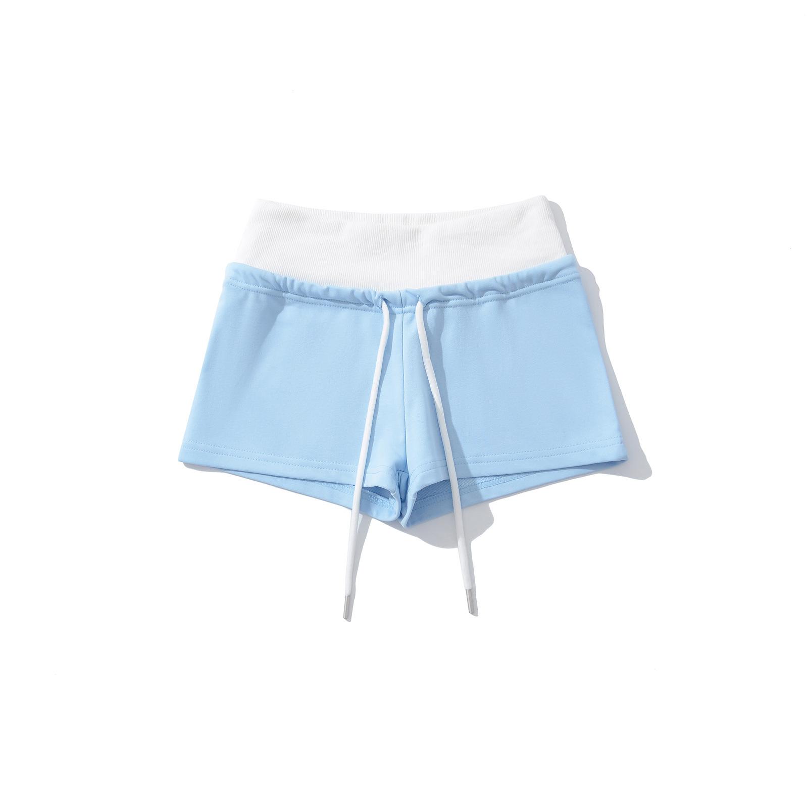 201-Estilo europeo y americano chicas guapas sexy combinación de colores shorts con cordón para mujer 2025 nuevo slim slim slim cintura alta pantalones casuales