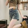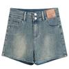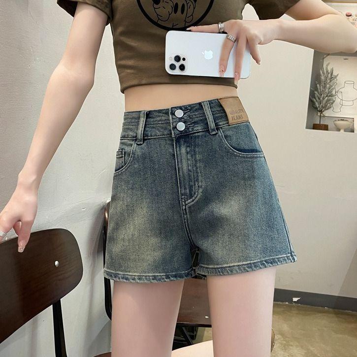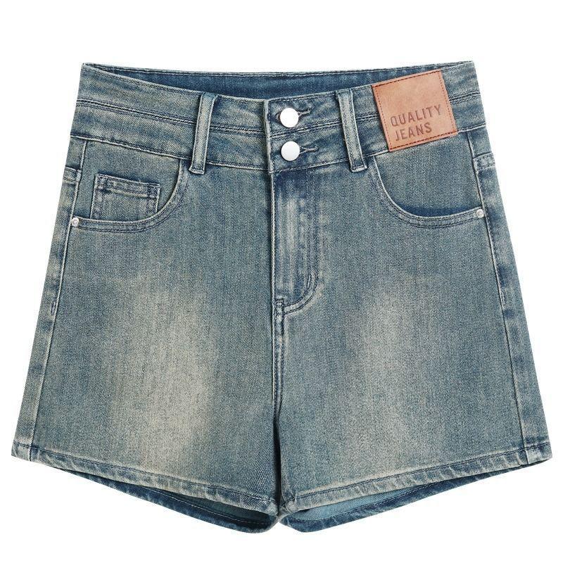 Pantalones cortos vaqueros de cintura alta para mujer, novedad de verano 2024, estilo americano, retro, finos, de corte A, ajustados y ajustados.