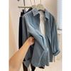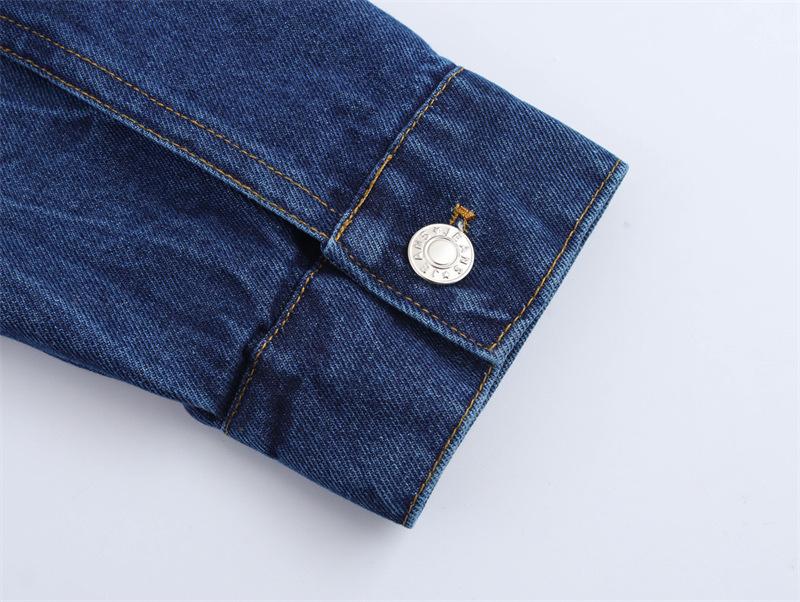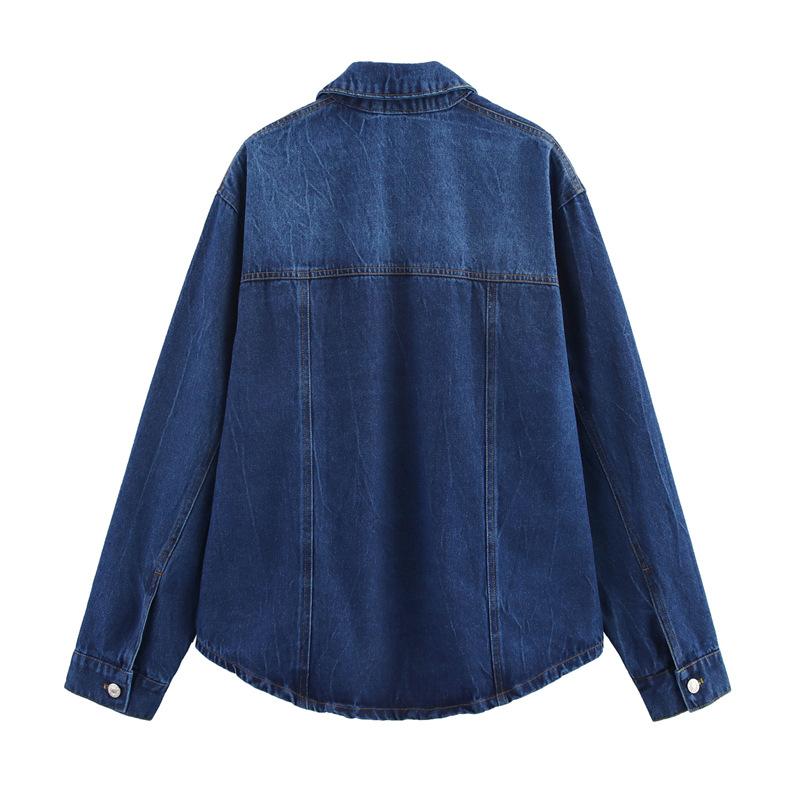Chaqueta de mezclilla de solapa estilo europeo y americano, abotonadura sencilla, bajo curvo, manga larga, primavera, nueva moda, versátil, holgada, top