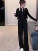 Traje de estilo chino para mujer, primavera 2025, estilo nacional, chaleco de cuello alto, top de manga larga, conjunto informal de tres piezas a la moda