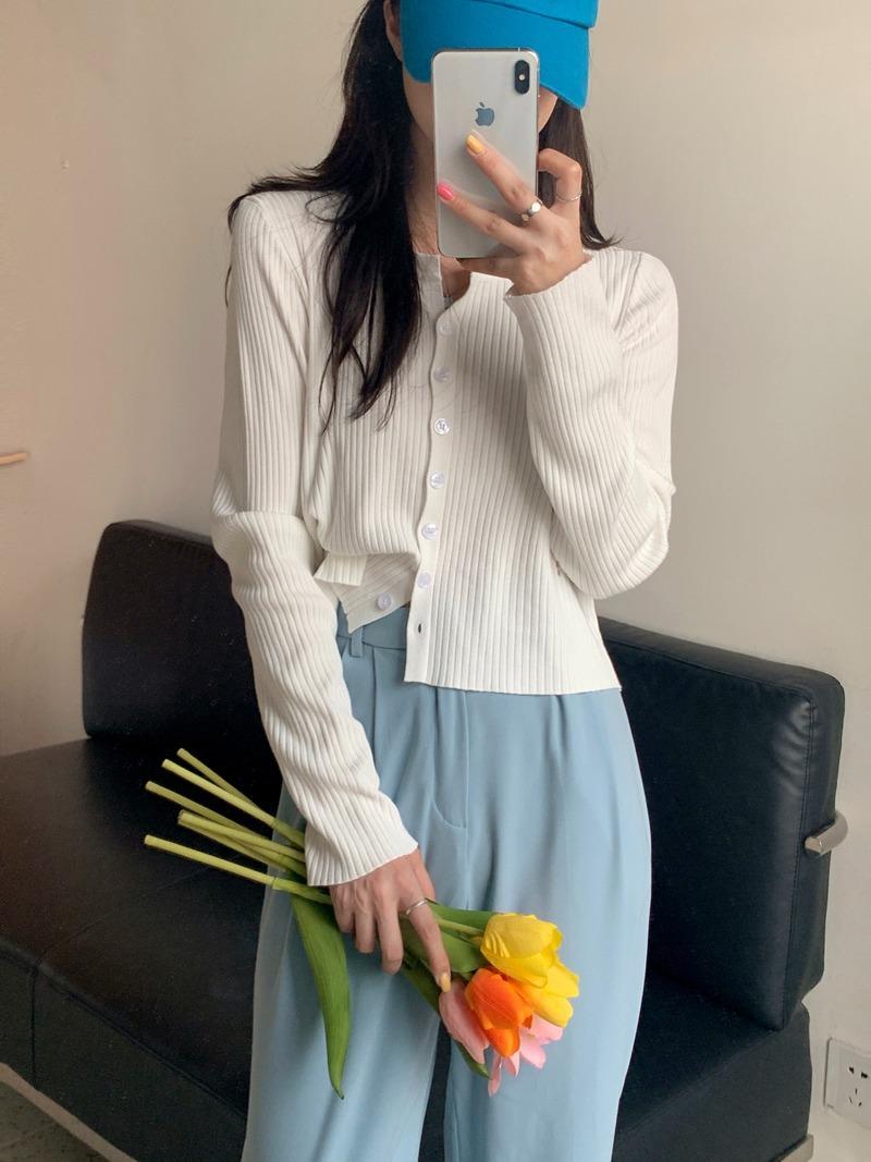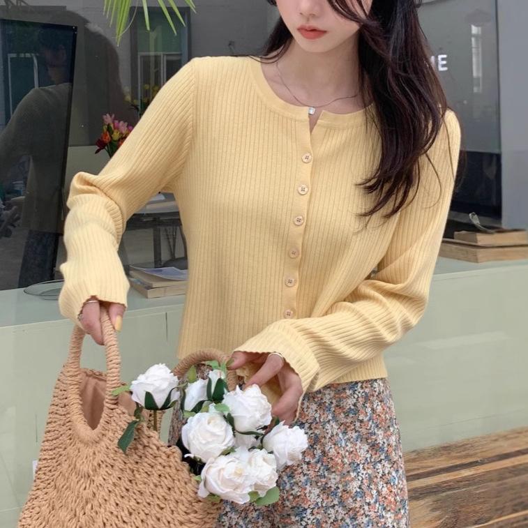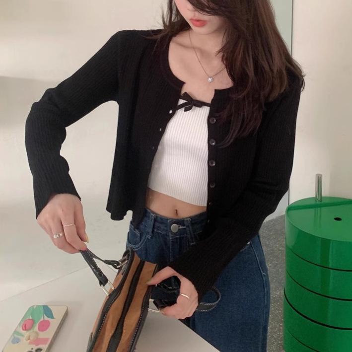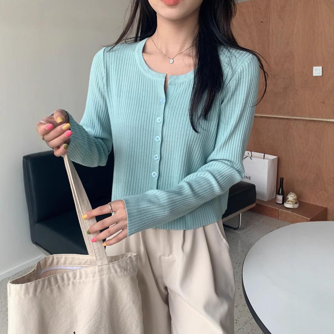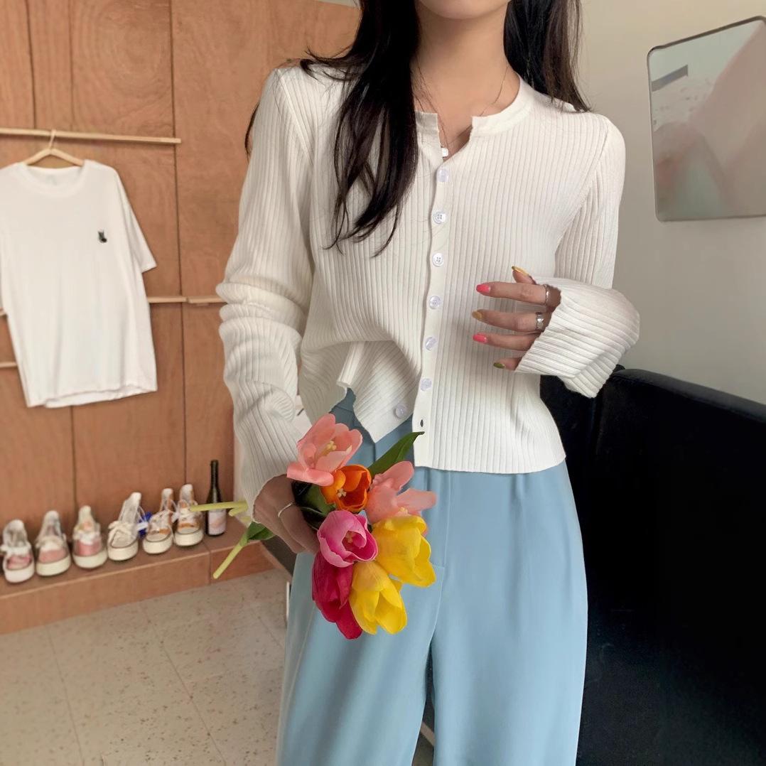 Suéter Corto Delgado para Mujer Estilo Chanel Estilo Coreano Blanco Base Cárdigan Abrigo Top Protector Solar Primavera y Verano