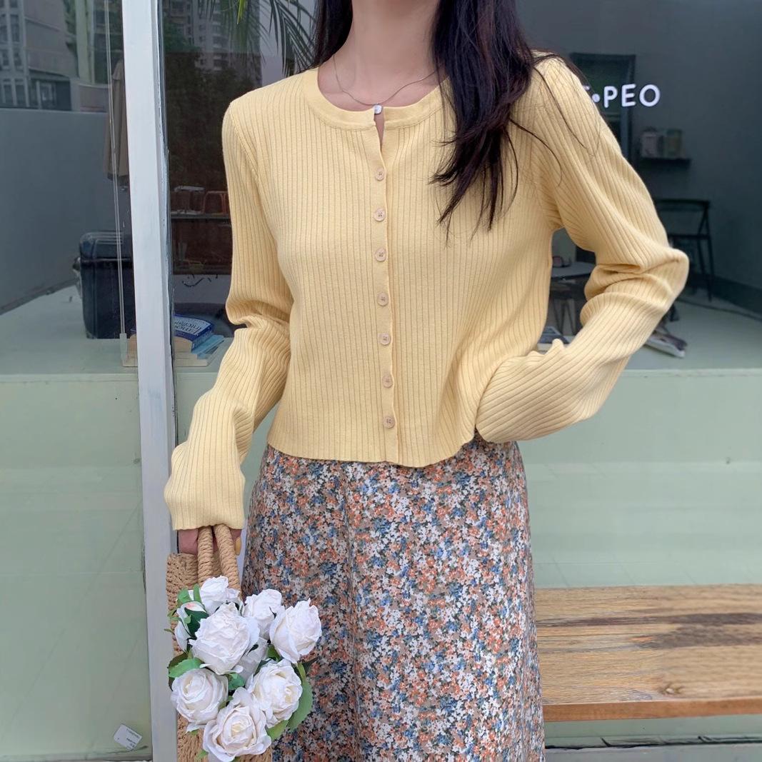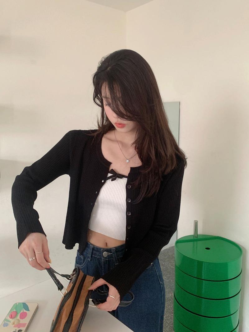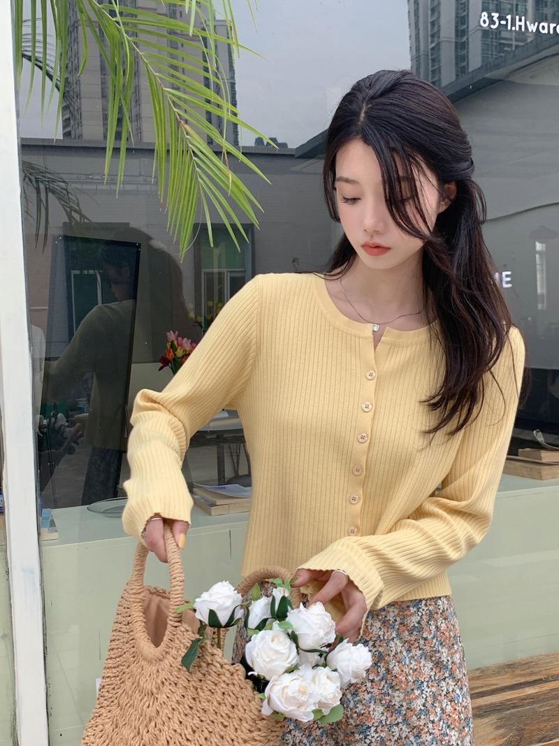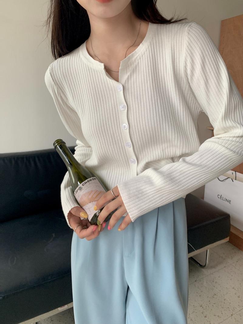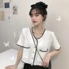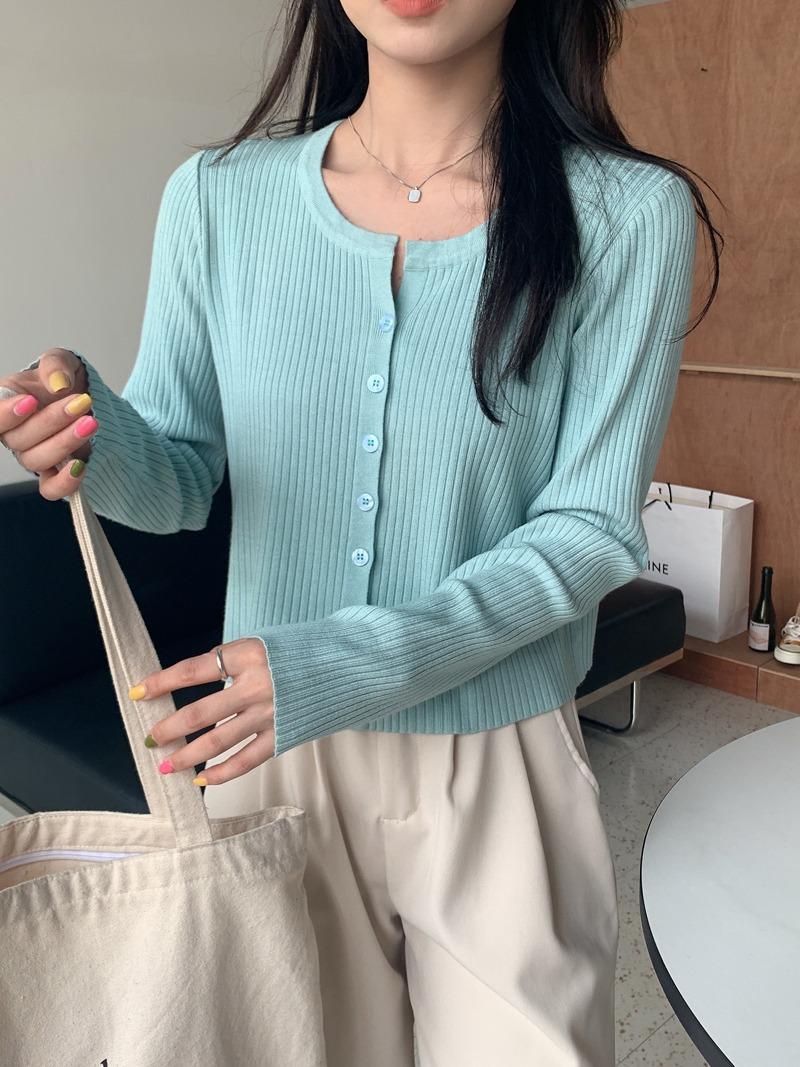 Suéter Corto Delgado para Mujer Estilo Chanel Estilo Coreano Blanco Base Cárdigan Abrigo Top Protector Solar Primavera y Verano