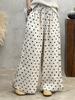 Compra Pantalones Casuales de Lino con Lunares Ondulados para Mujer Verano Artístico Retro Holgados Pierna Ancha Adelgazantes Combinan con Todo Elegantes con Cordones Rectos al por mayor en Joom.pro