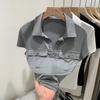 100 Algodón Puro POLO Cuello Tejido Manga Corta Moda Femenina Reductor de Edad Rayado Contraste Top Holgado Adelgazante Hombro Camiseta
