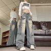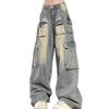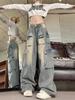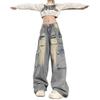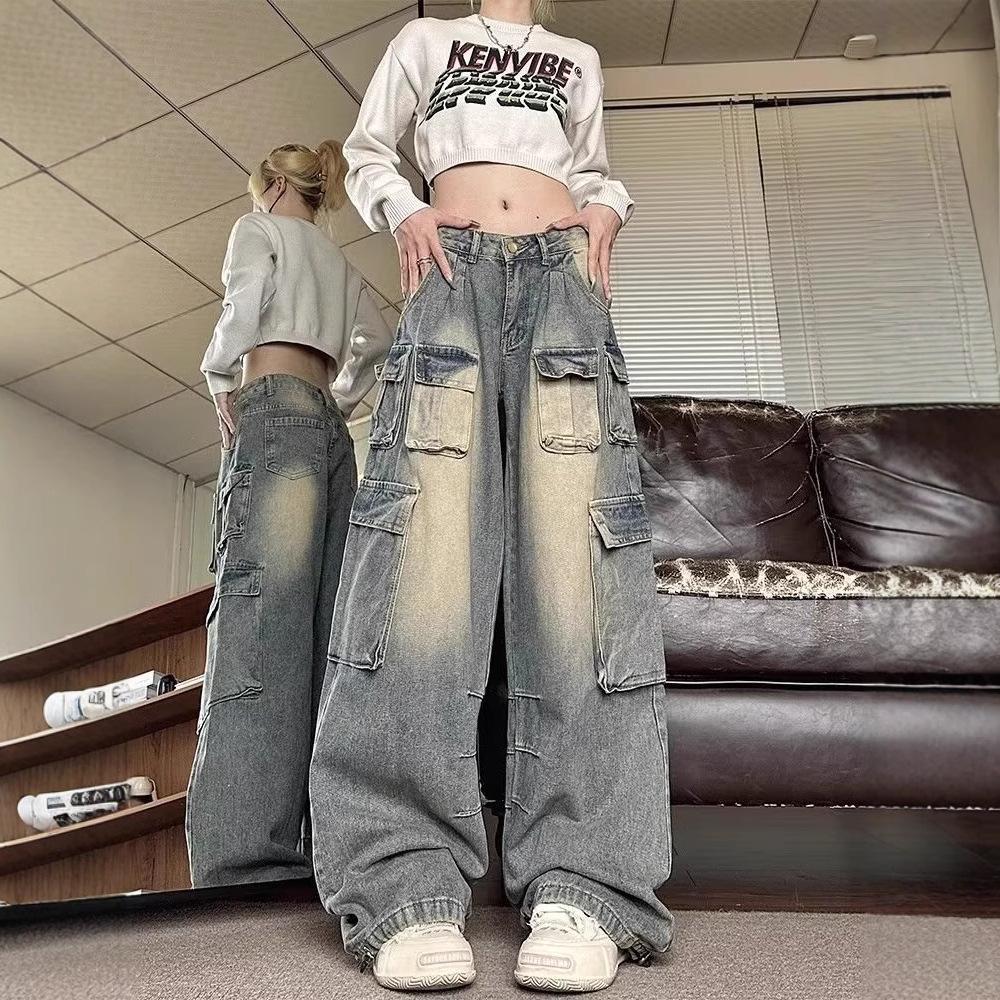 Pantalones de Trabajo Americanos Retro de Calle para Mujer, Jeans de Pierna Ancha Otoño Nuevo, Pantalones Sueltos con Vibras de Marca Moderna