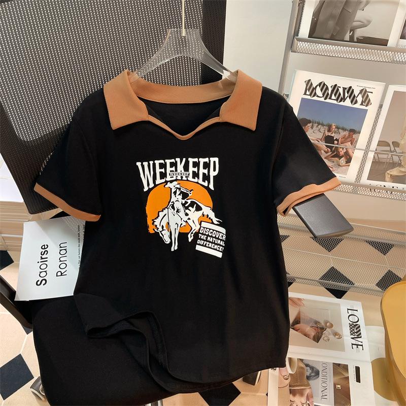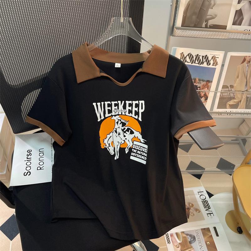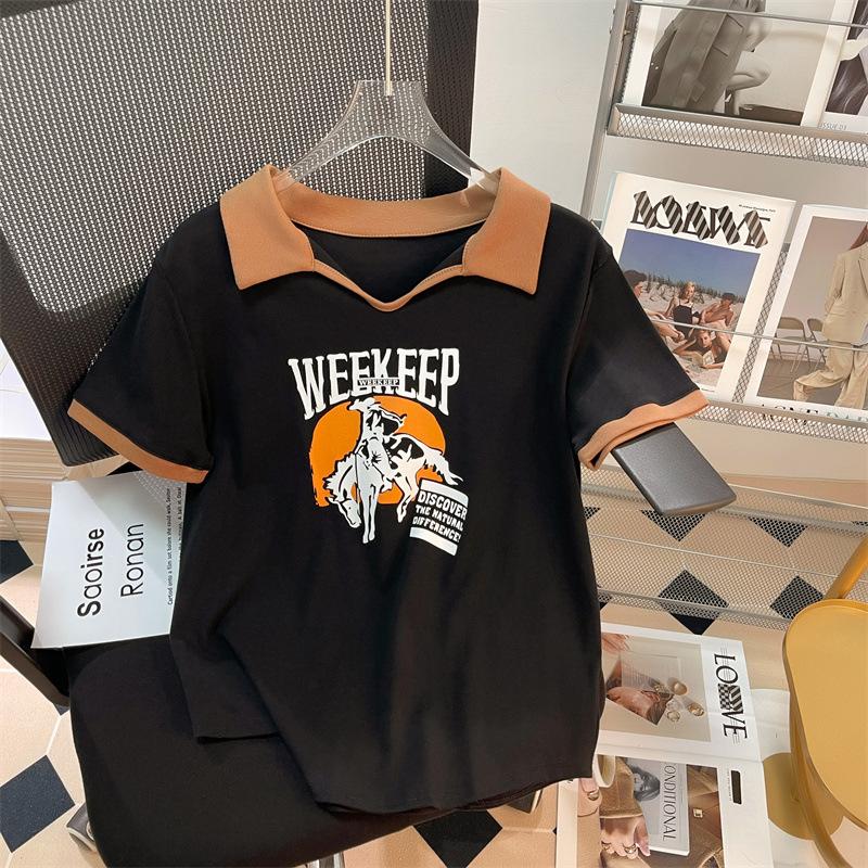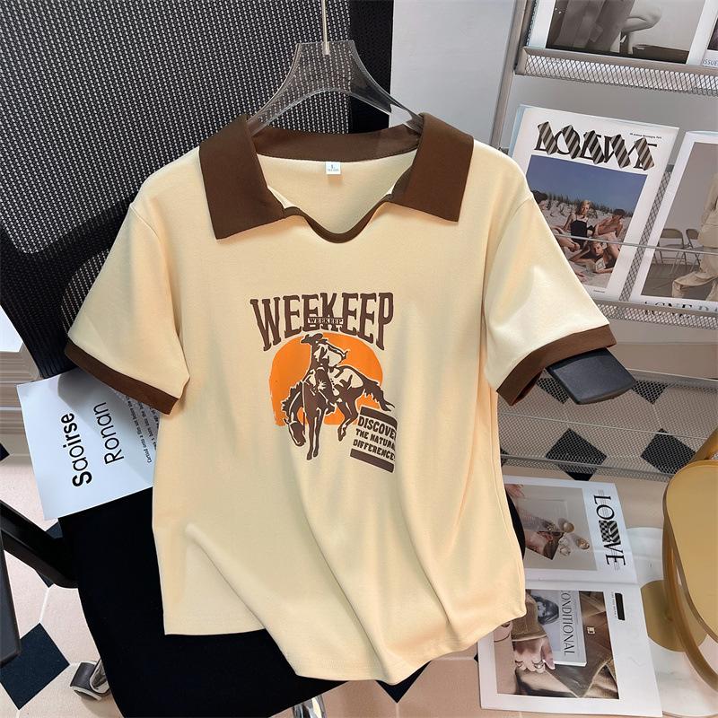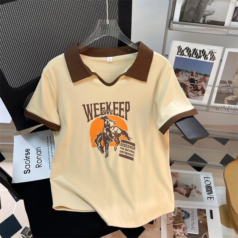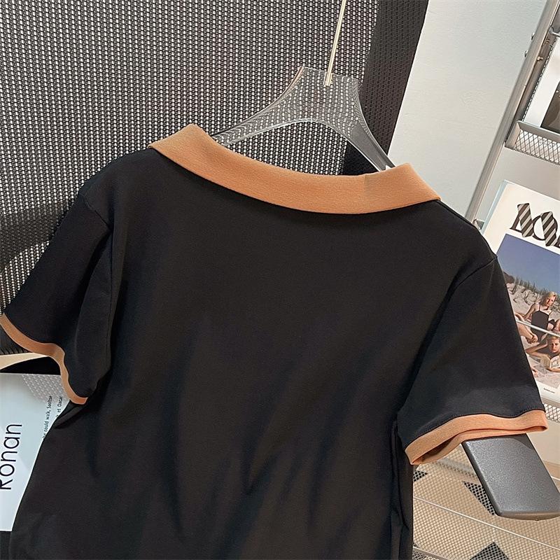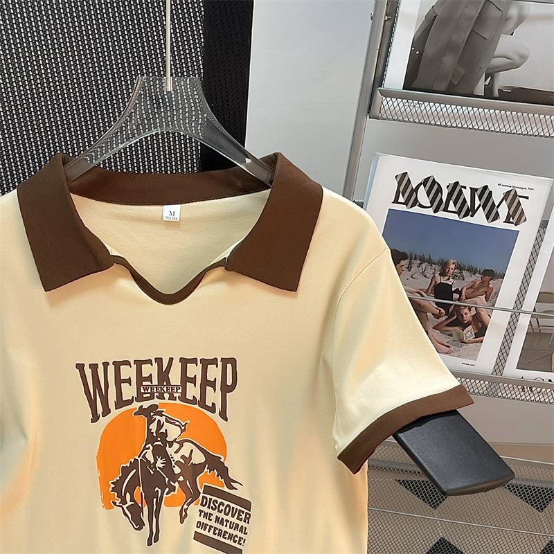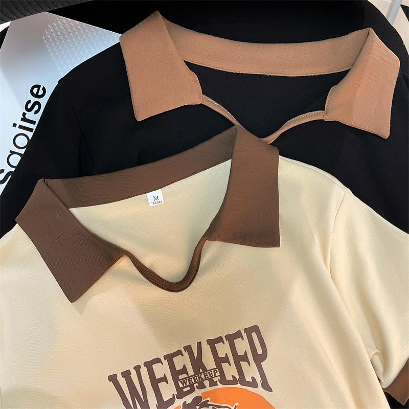 Playera de Algodón Puro con Cuello Polo para Mujer de Manga Corta Verano Holgada con Hombro Caído Top Holgado Estilo Americano Pequeño Nuevo Estilo 2025