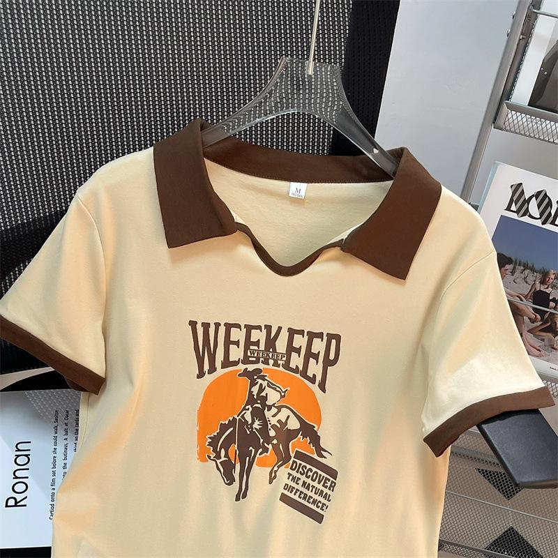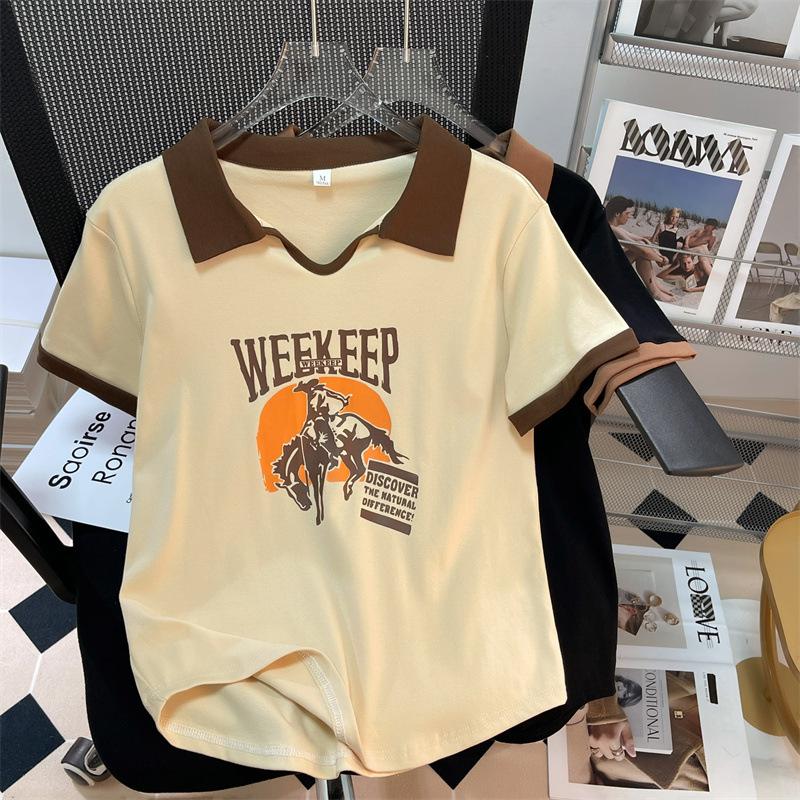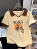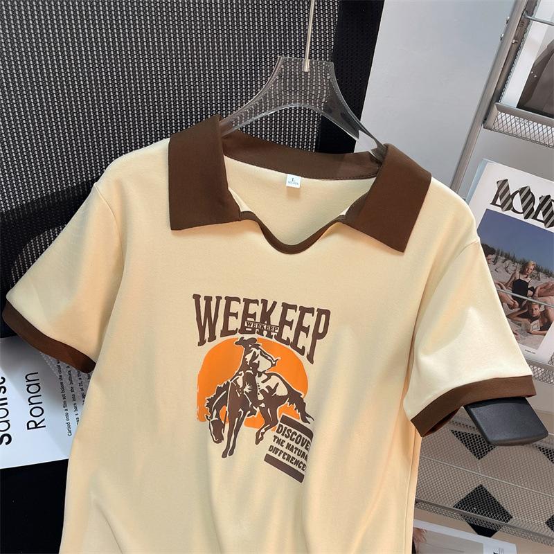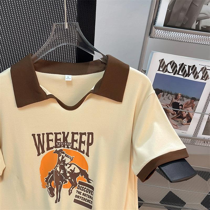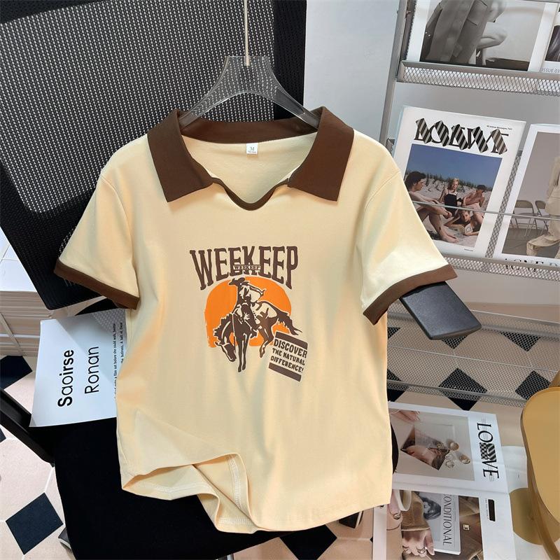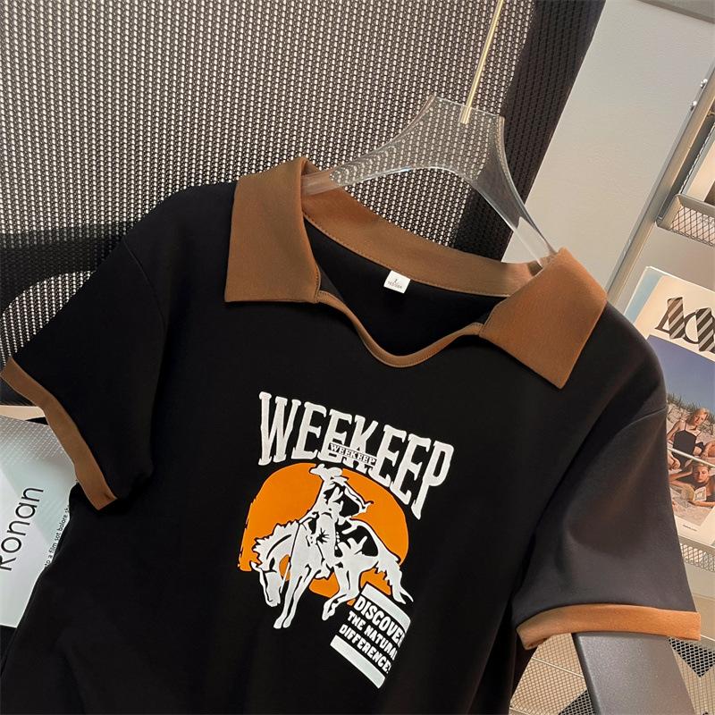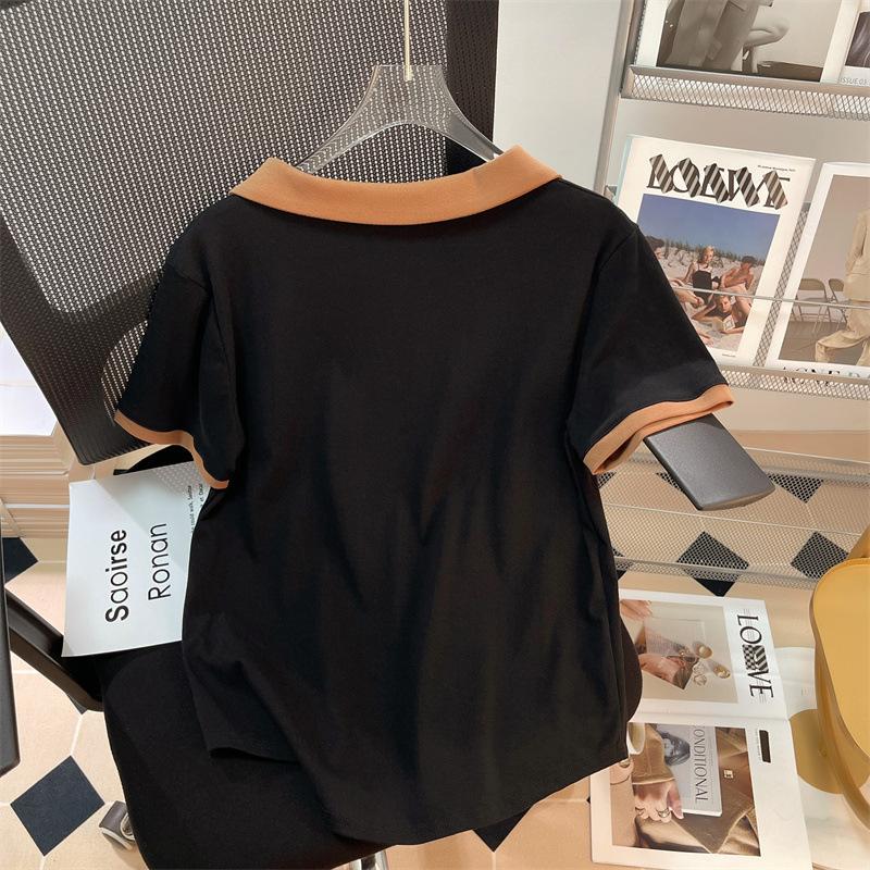 Playera de Algodón Puro con Cuello Polo para Mujer de Manga Corta Verano Holgada con Hombro Caído Top Holgado Estilo Americano Pequeño Nuevo Estilo 2025