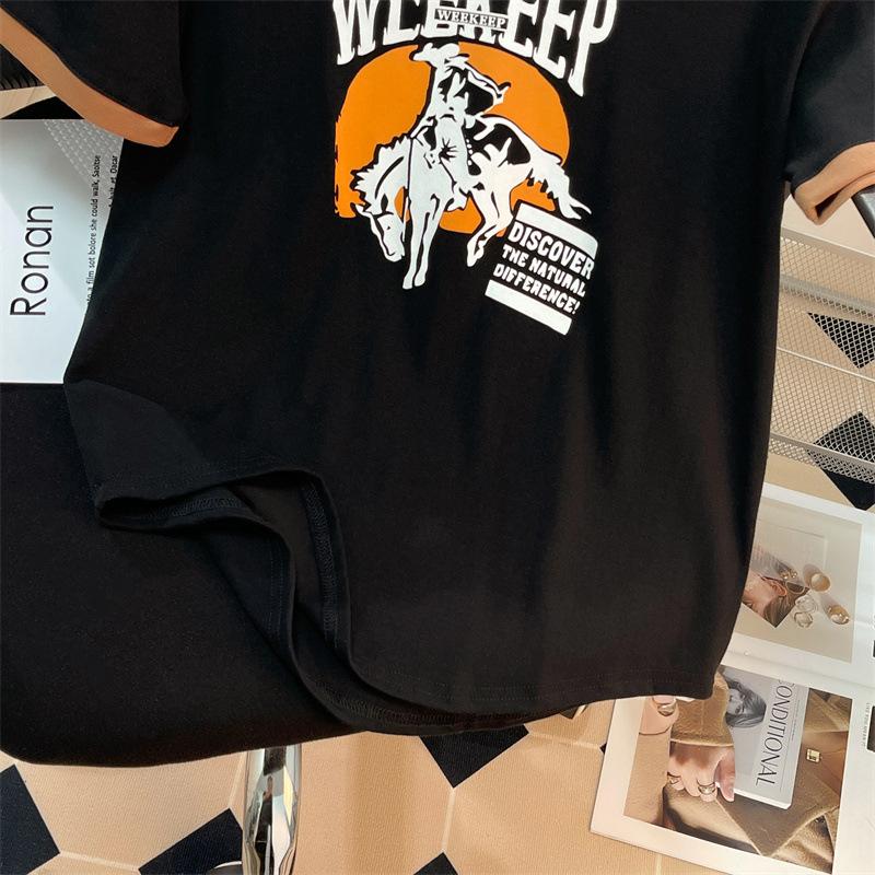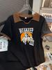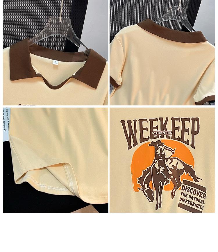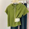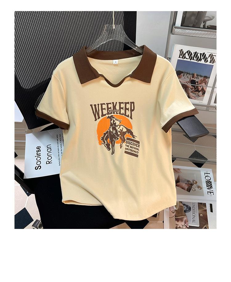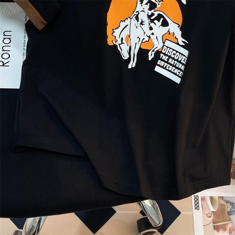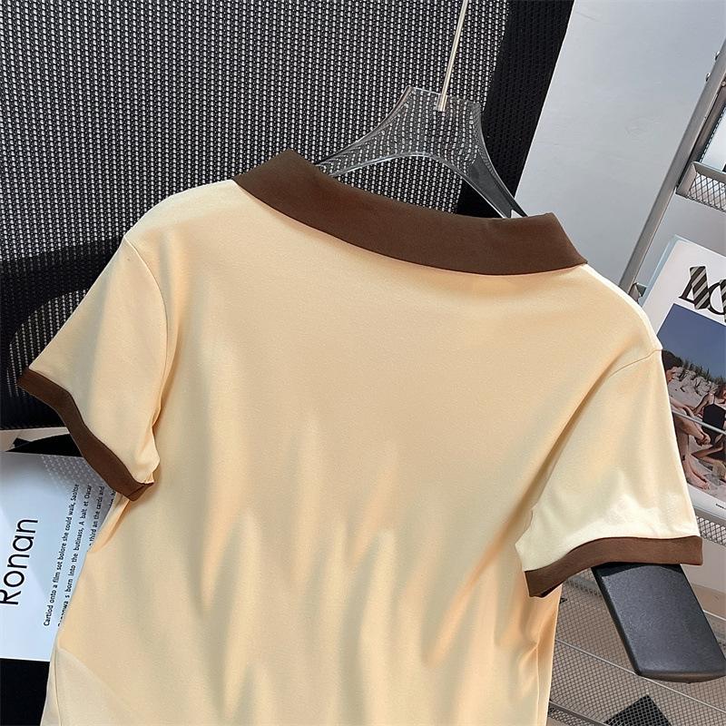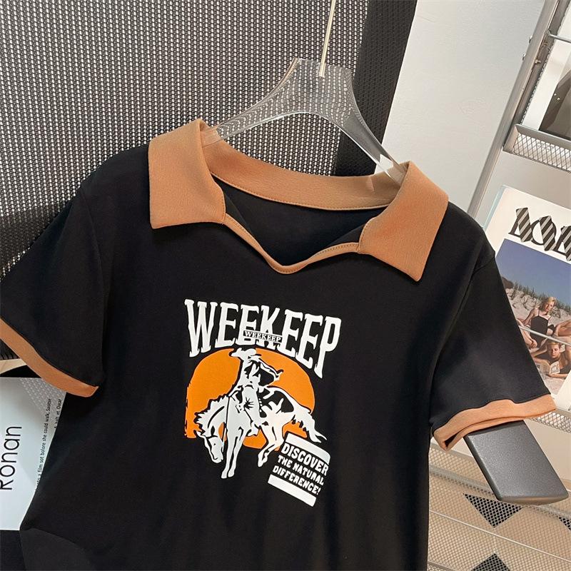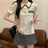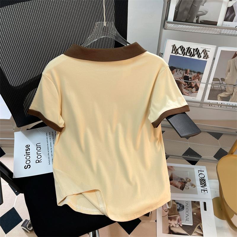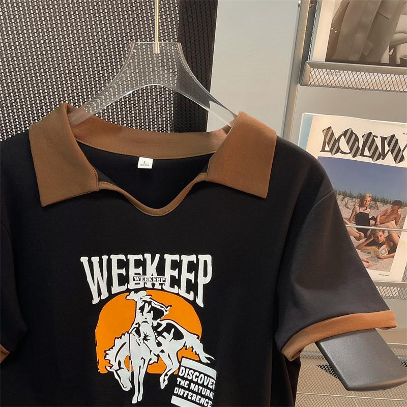 Playera de Algodón Puro con Cuello Polo para Mujer de Manga Corta Verano Holgada con Hombro Caído Top Holgado Estilo Americano Pequeño Nuevo Estilo 2025