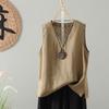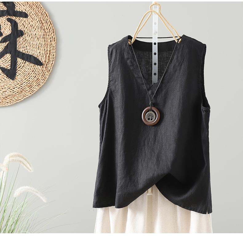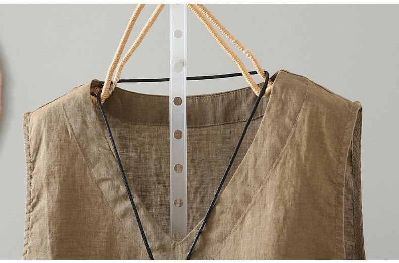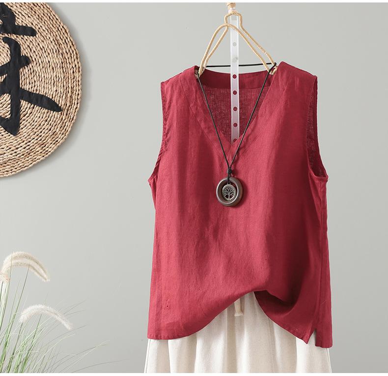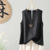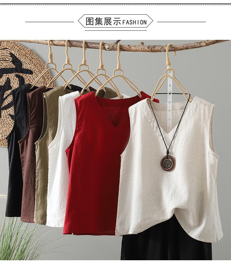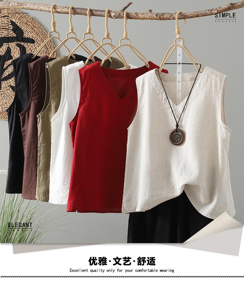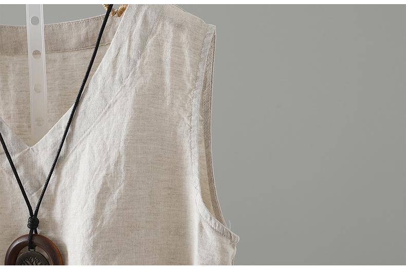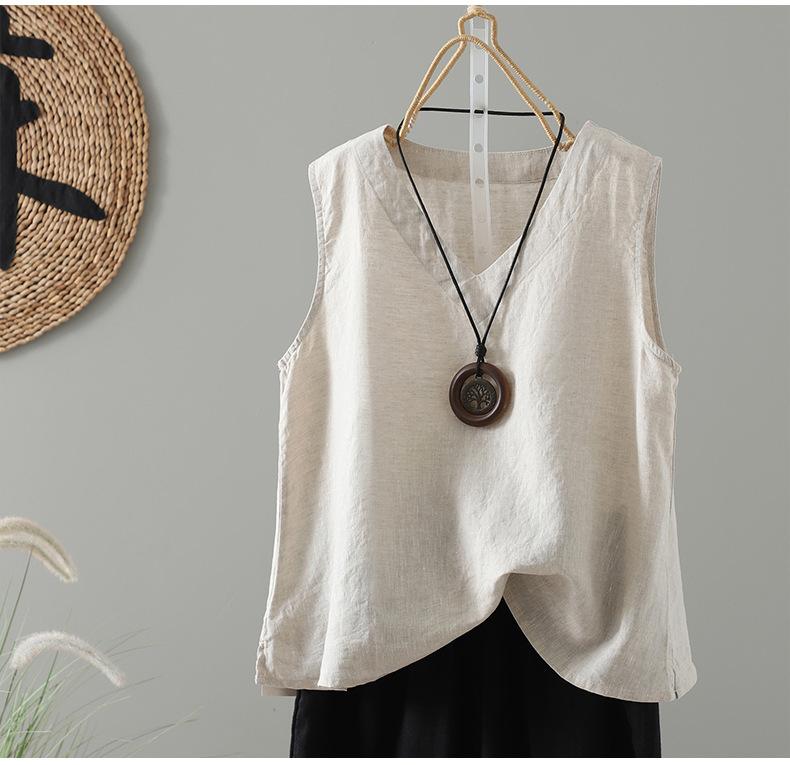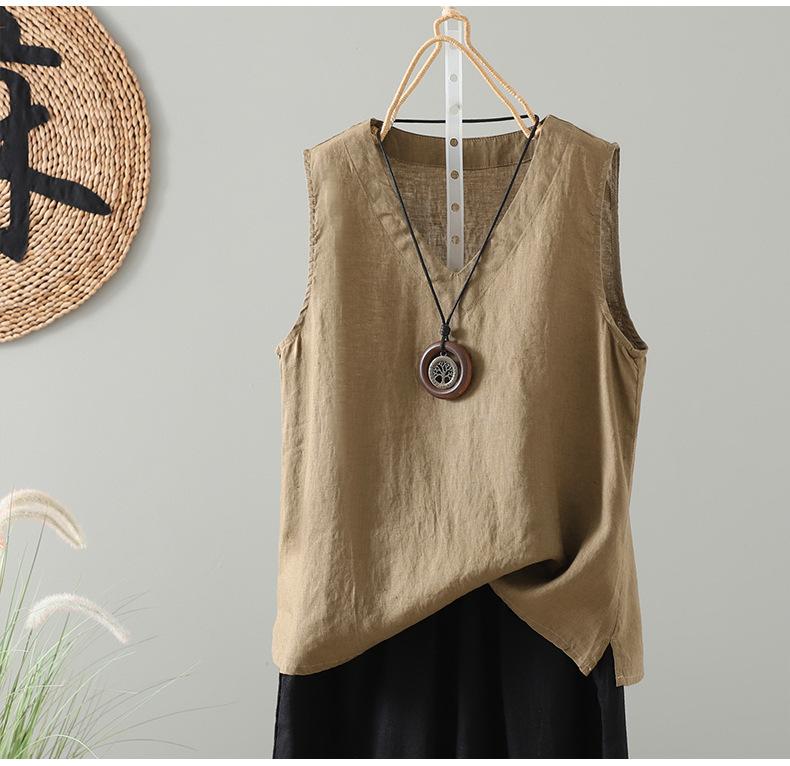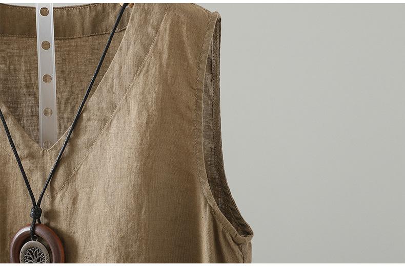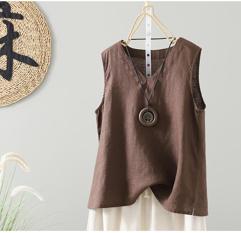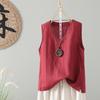 Chaleco Retro de Cáñamo Lavado con Arena para Mujer Primavera y Verano sin Mangas Jersey Camiseta Básica de Color Sólido Top Versátil Ropa Interior