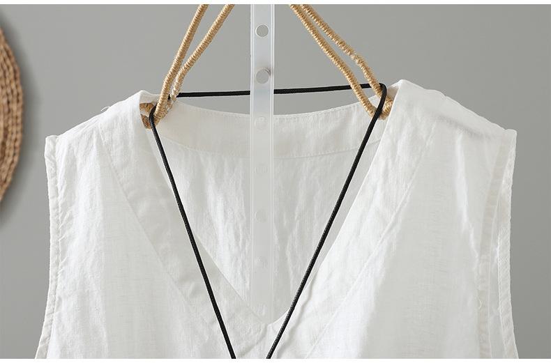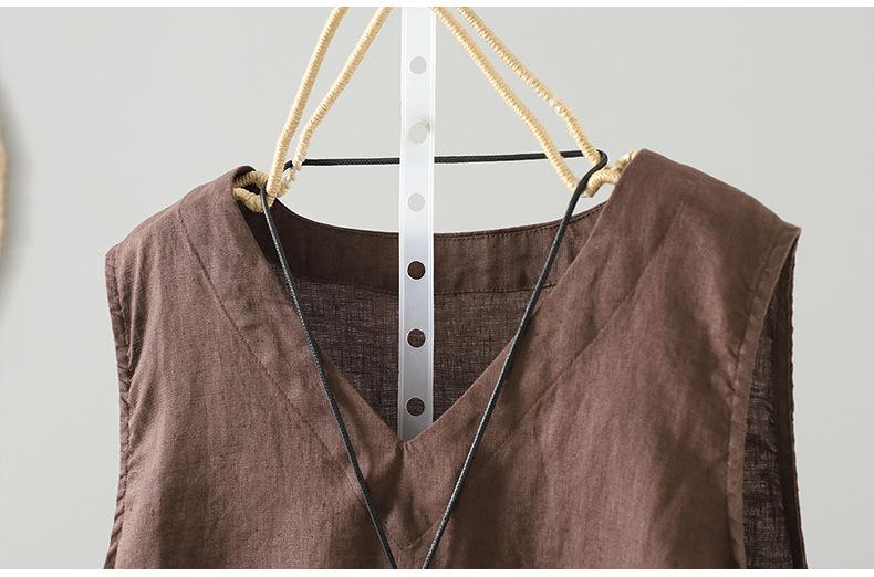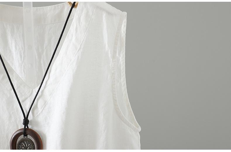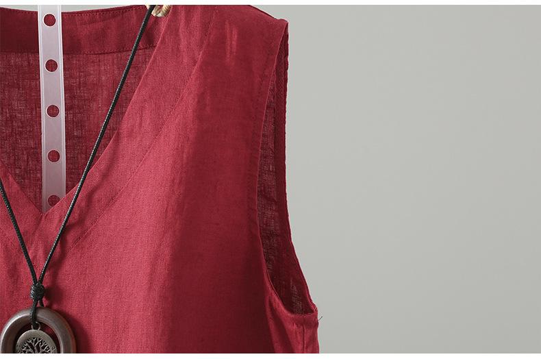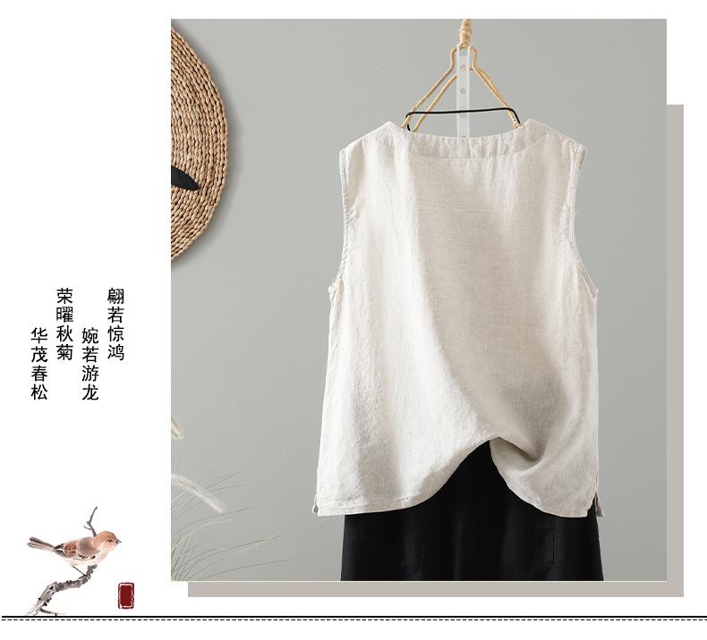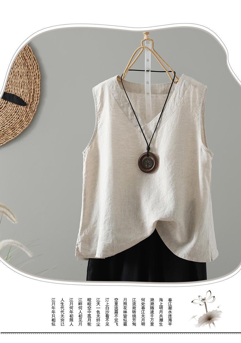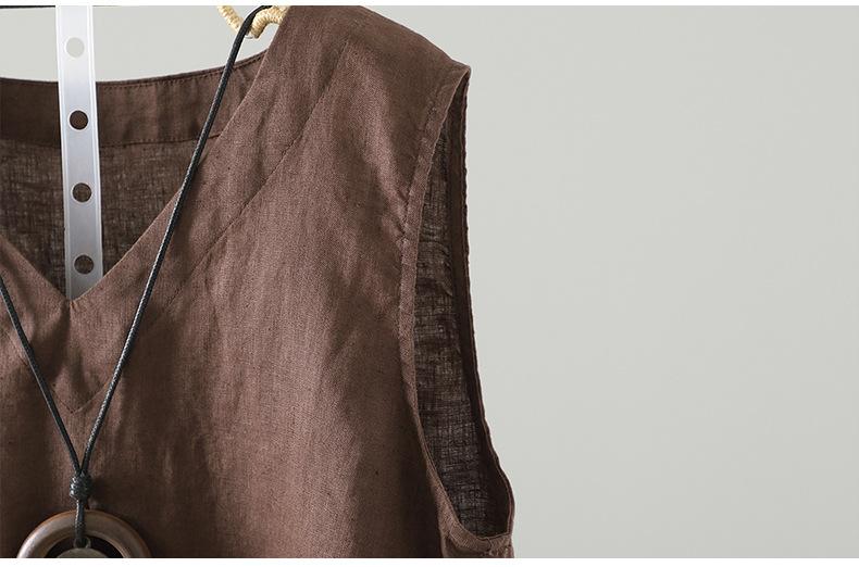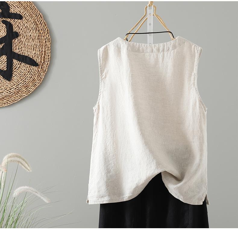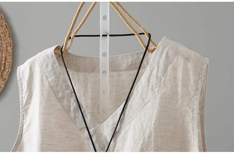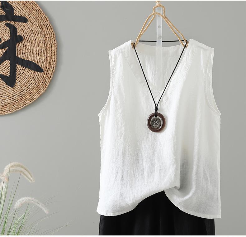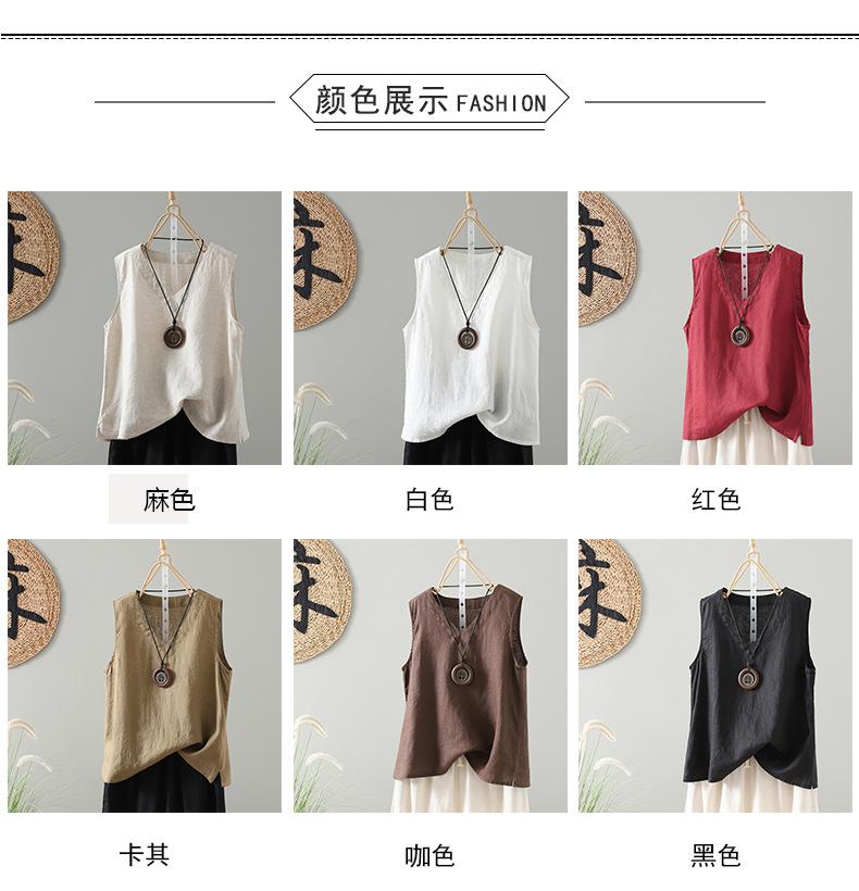 Chaleco Retro de Cáñamo Lavado con Arena para Mujer Primavera y Verano sin Mangas Jersey Camiseta Básica de Color Sólido Top Versátil Ropa Interior