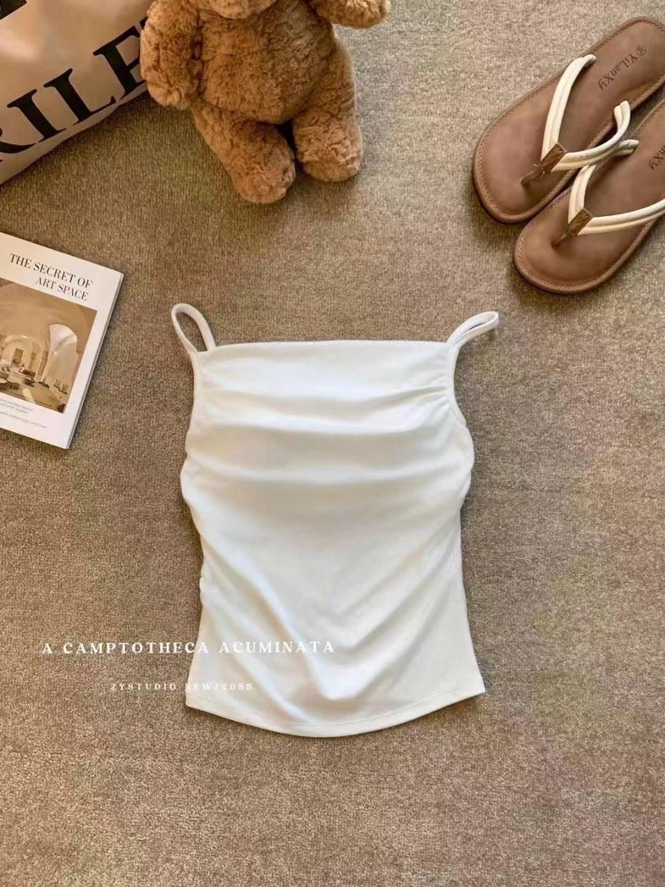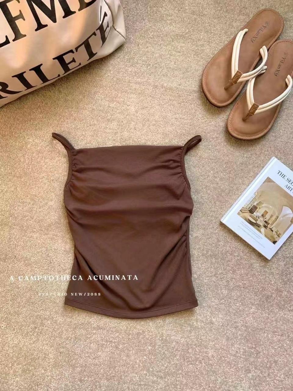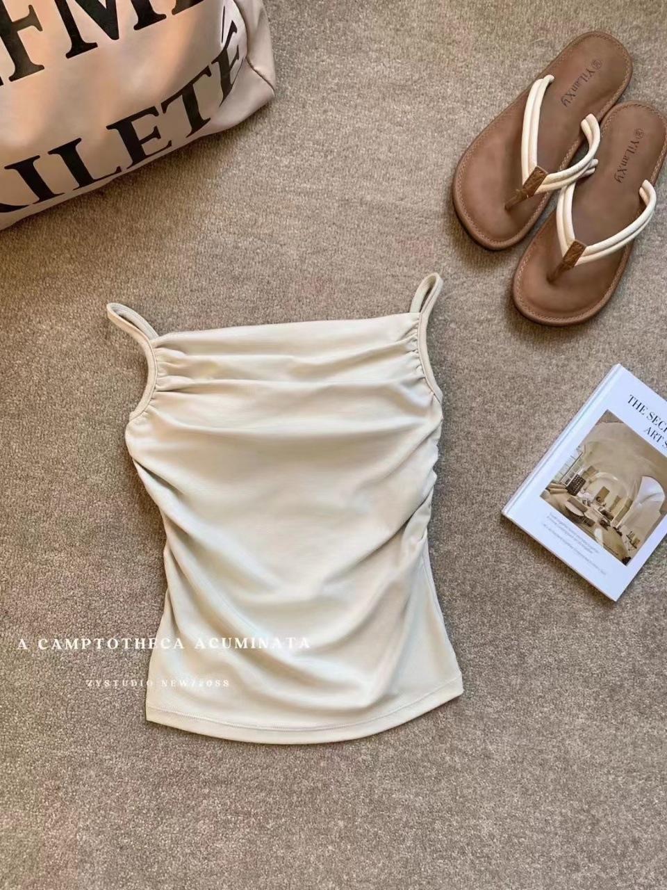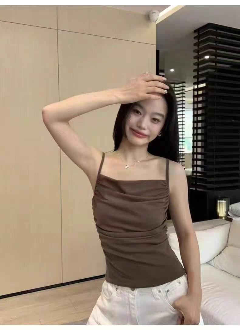 Camisola pequeña plisada de doble capa de las Spice Girls europeas y americanas para mujer, nuevo estilo de verano 2025, prenda exterior con parte superior plana entallada interior