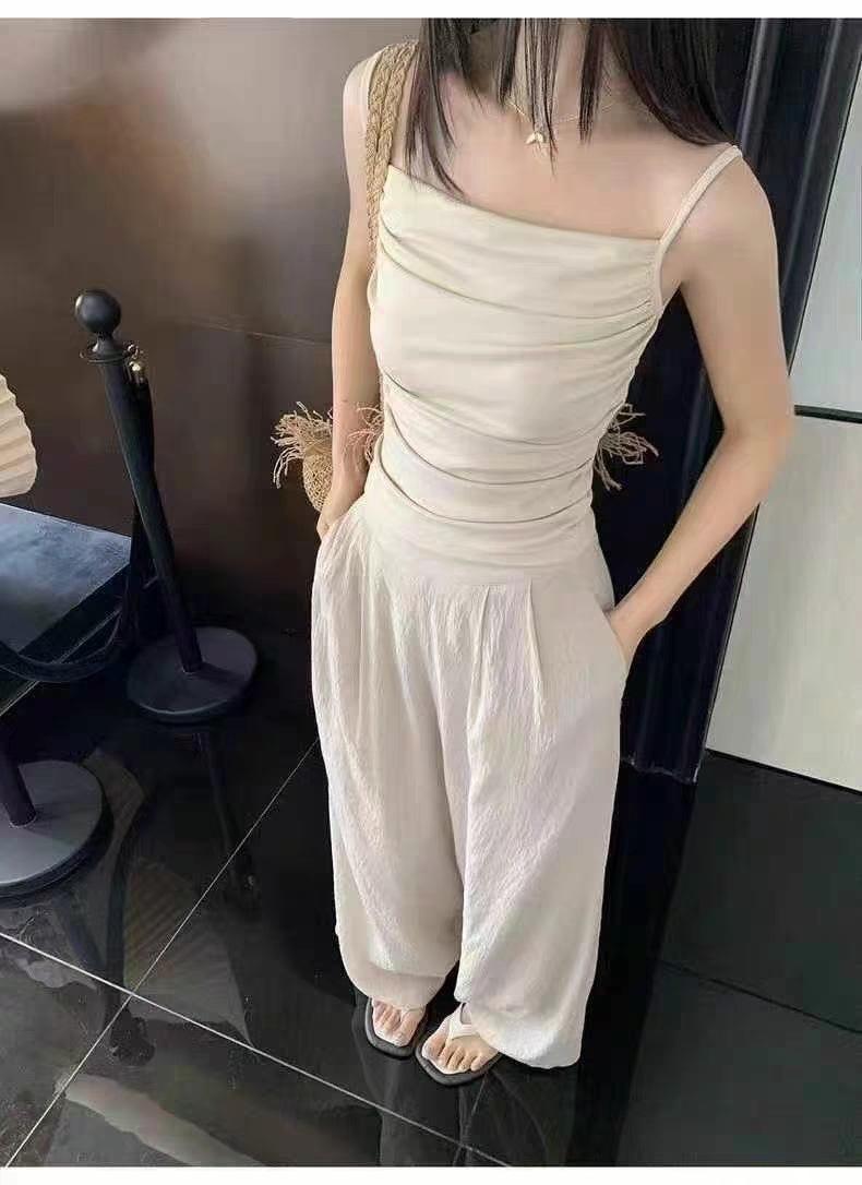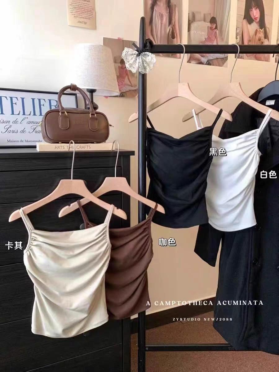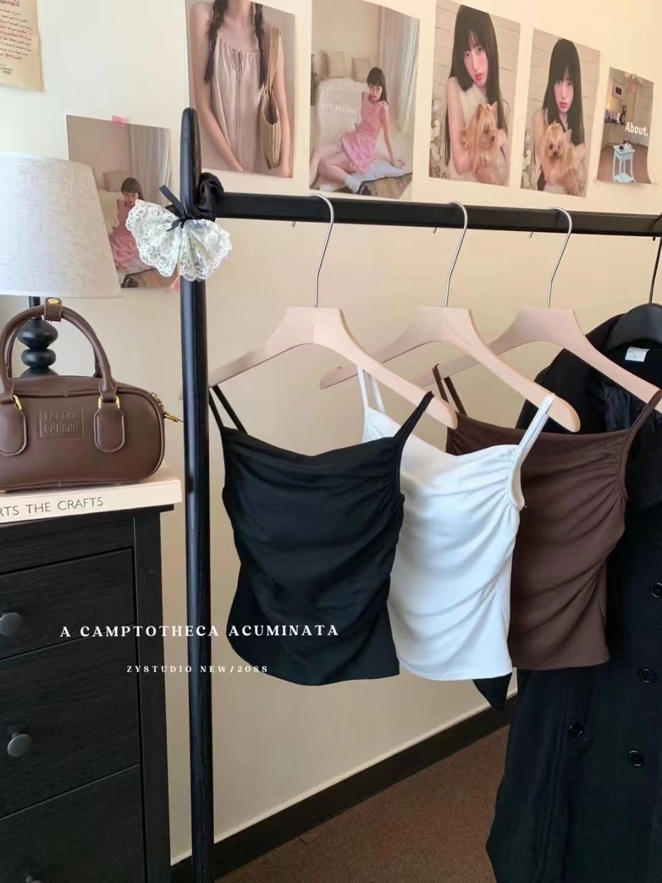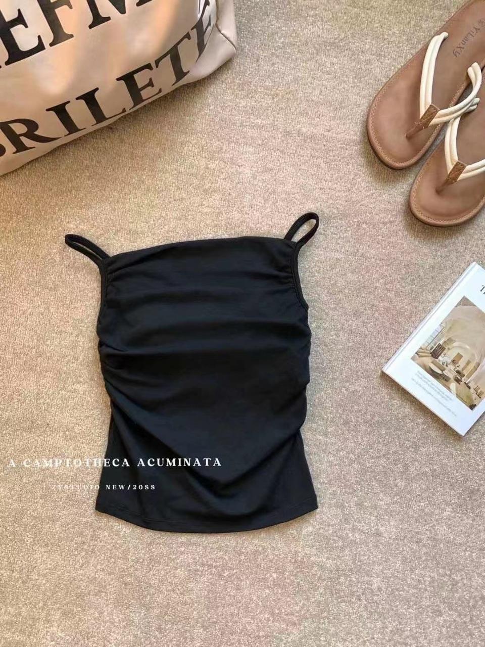 Camisola pequeña plisada de doble capa de las Spice Girls europeas y americanas para mujer, nuevo estilo de verano 2025, prenda exterior con parte superior plana entallada interior