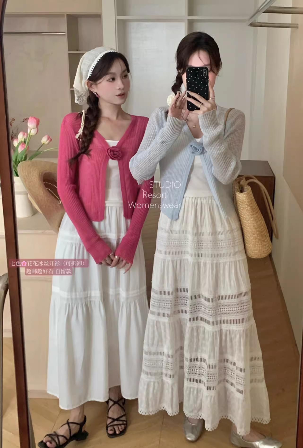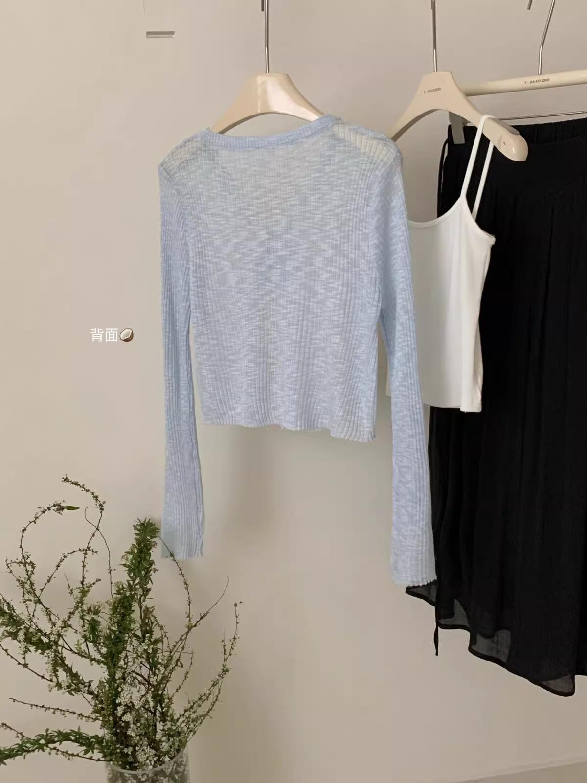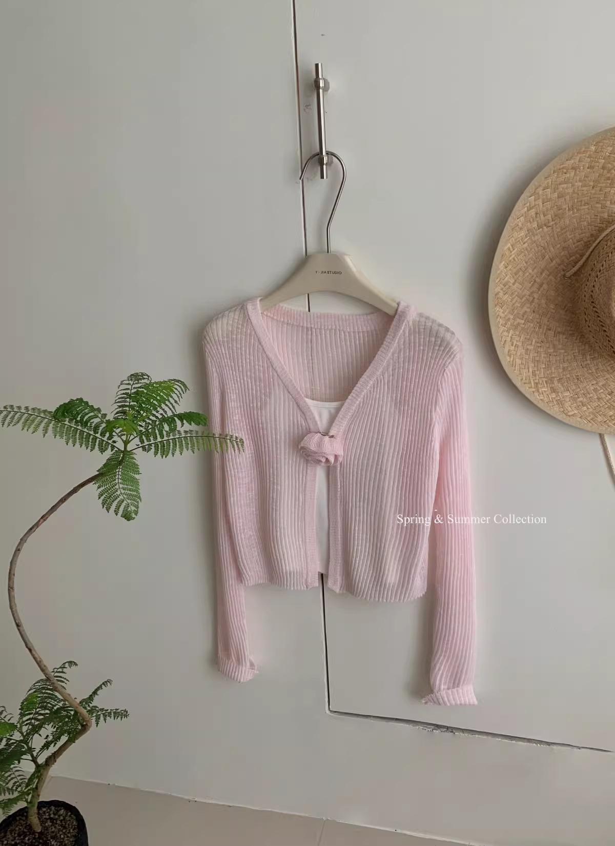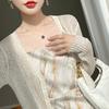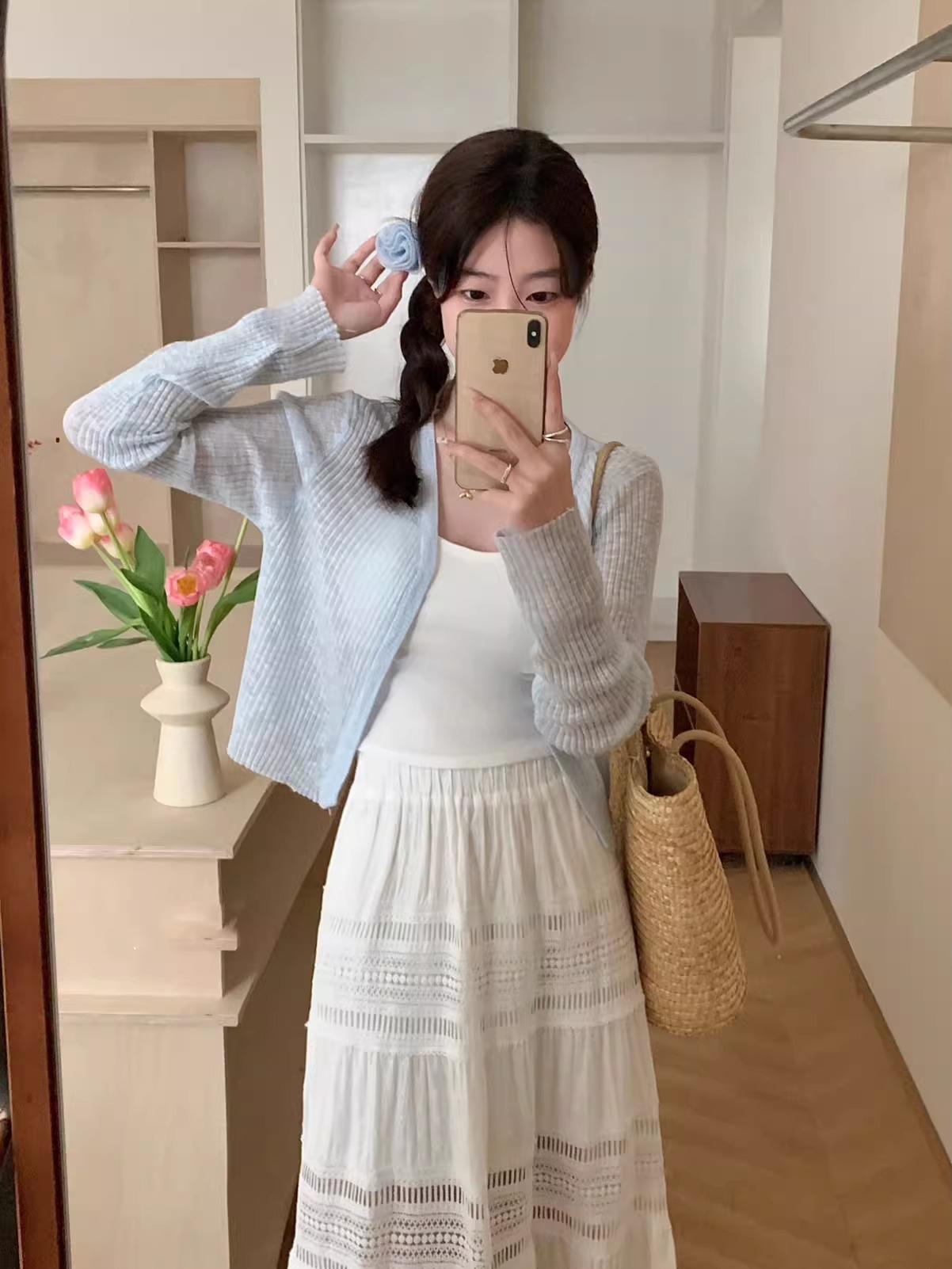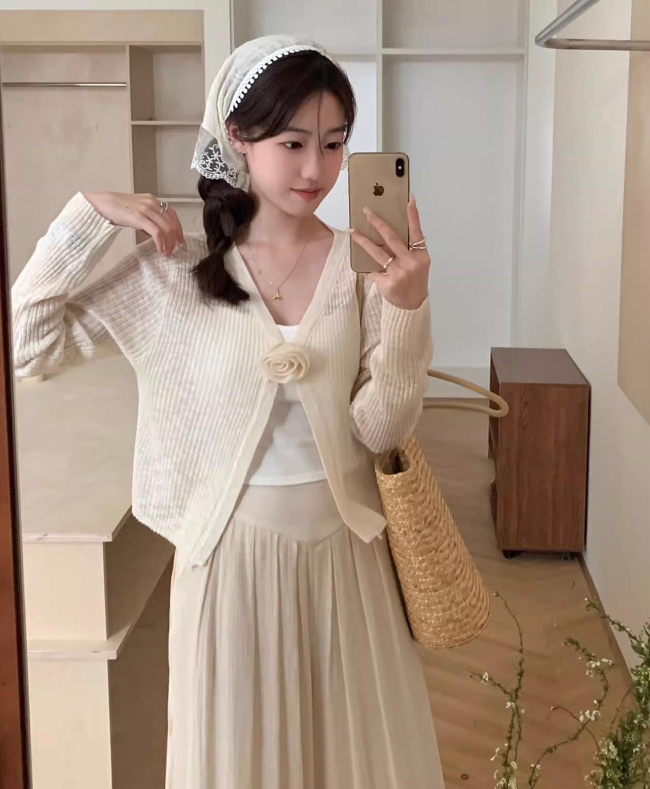 Camisa de manga larga de seda de hielo transpirable y fina, con aire acondicionado, sencilla, holgada, combinable con todo, de punto con flores, con protector solar, chaqueta dulce