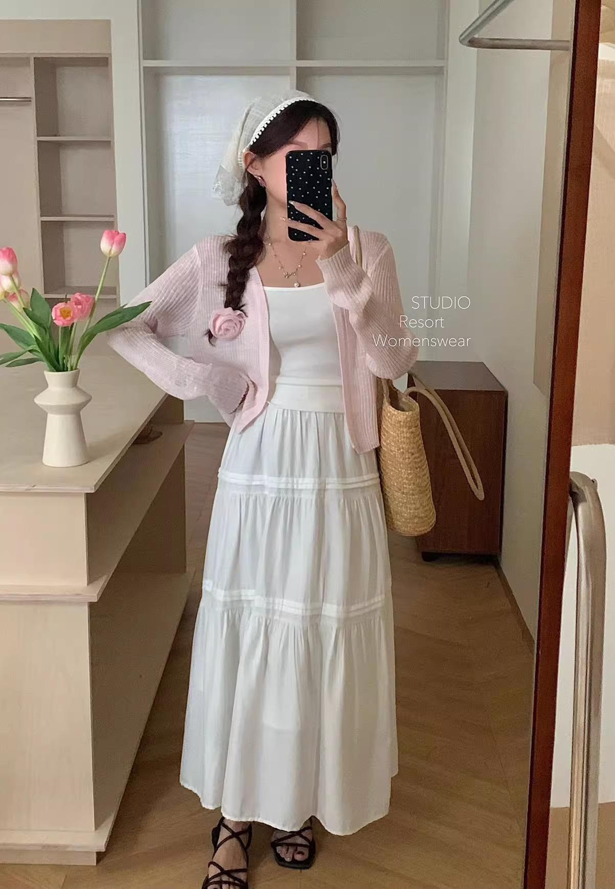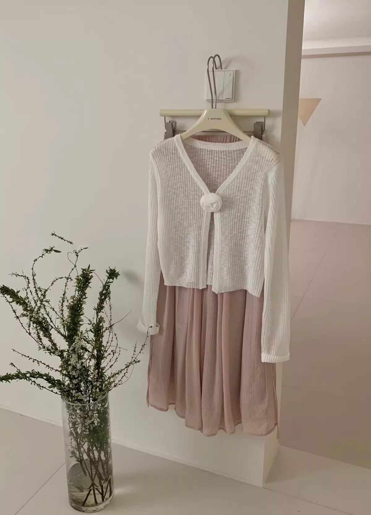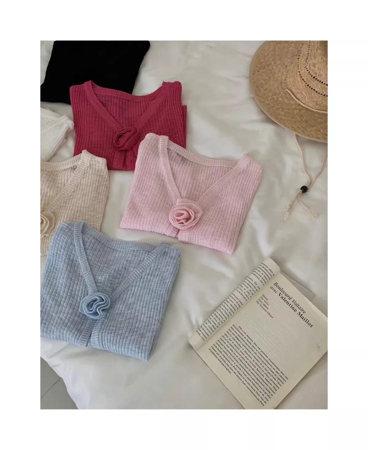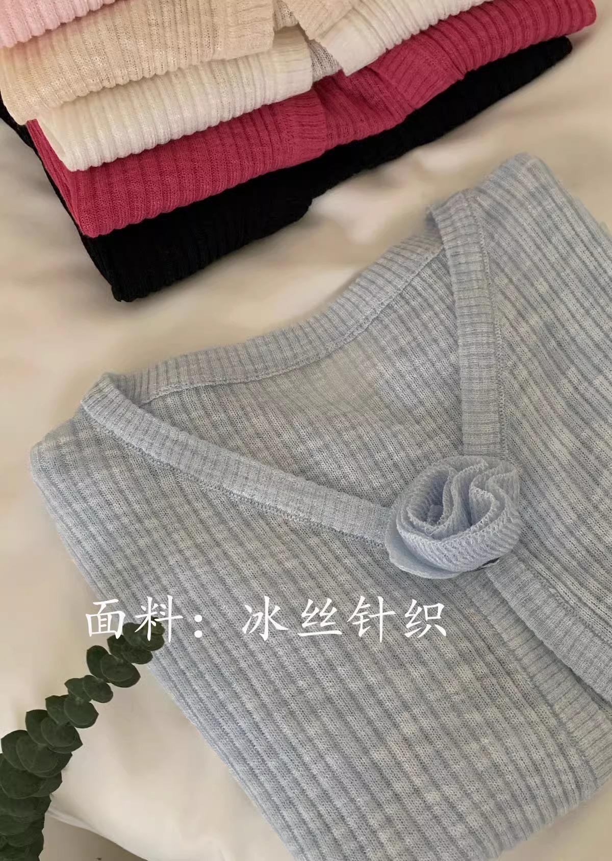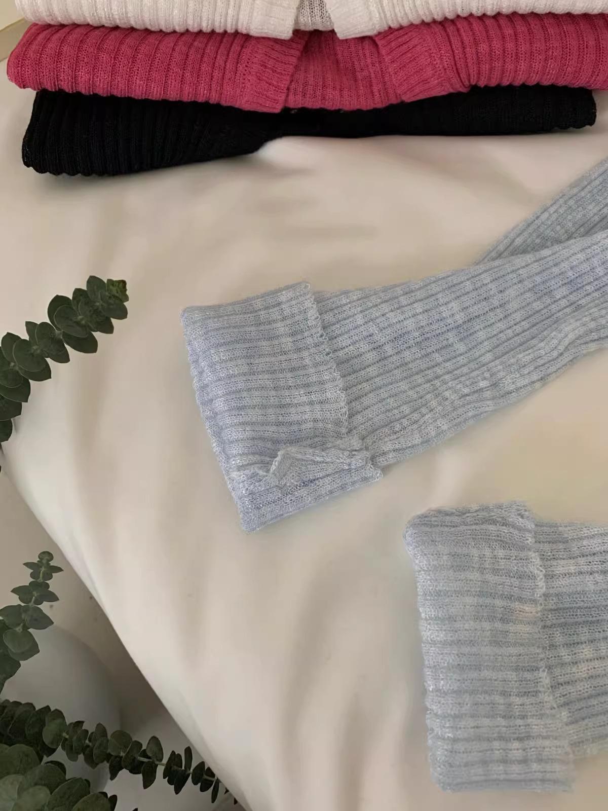 Camisa de manga larga de seda de hielo transpirable y fina, con aire acondicionado, sencilla, holgada, combinable con todo, de punto con flores, con protector solar, chaqueta dulce