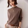 Suéter de Punto Sin Costuras Camiseta Básica Suéter de Cachemira y Seda para Mujer Otoño e Invierno Cuello Medio Alto Ajustado Top Interior para Mujer