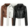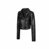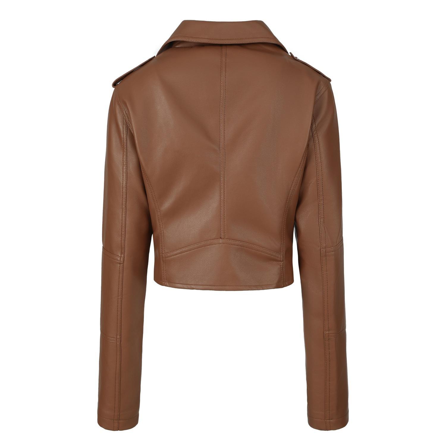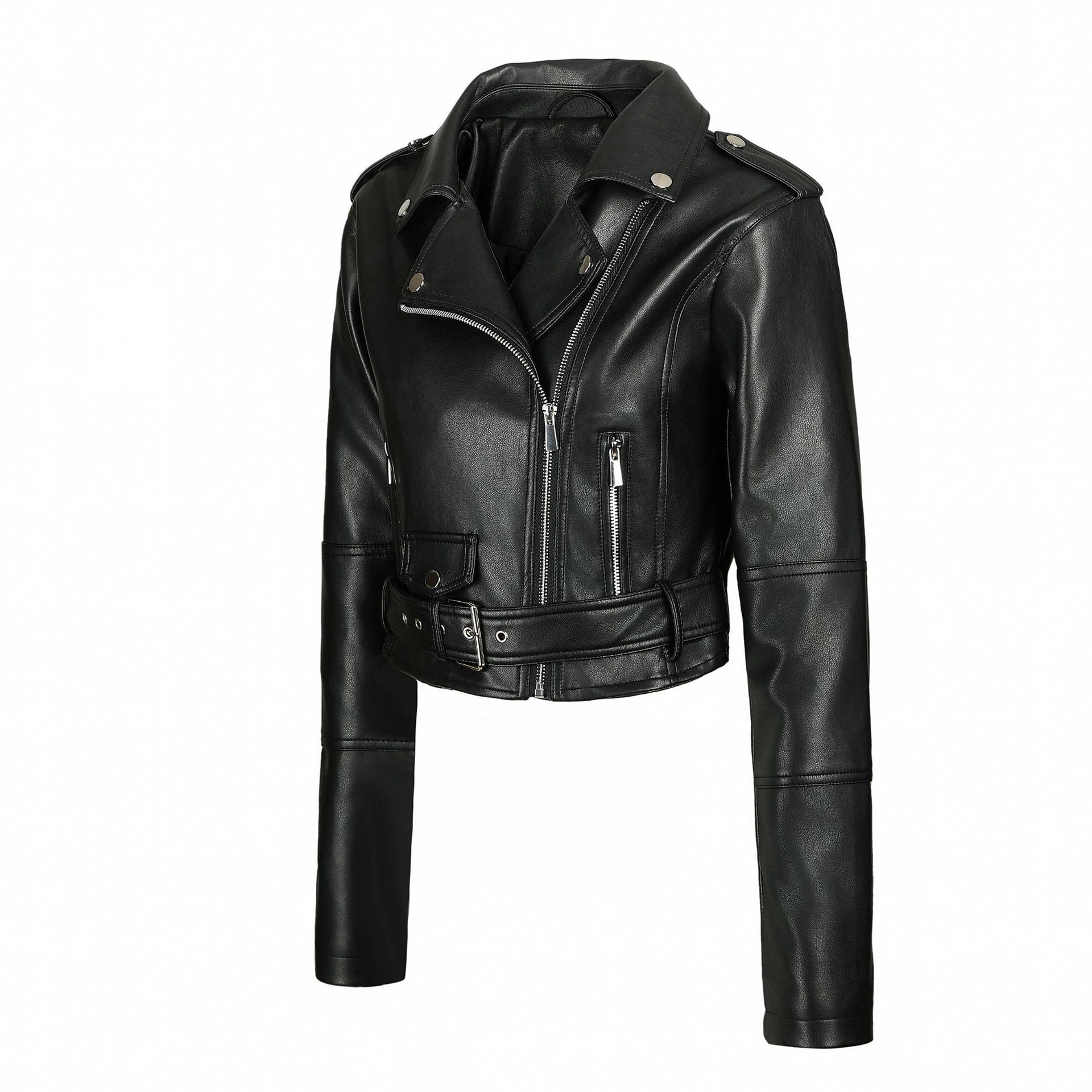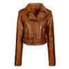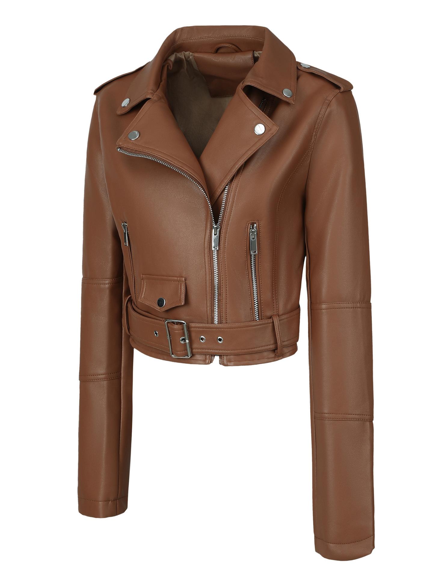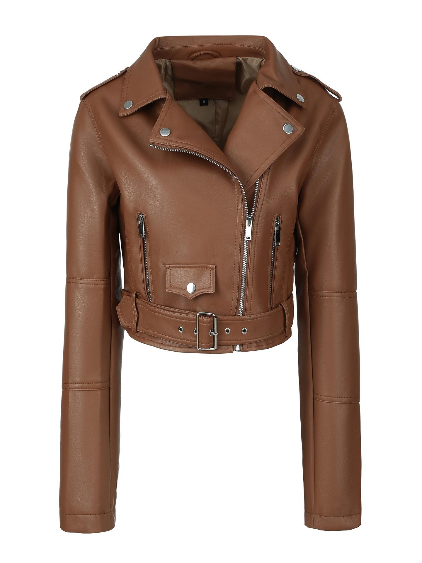 Chaqueta de Cuero PU para Mujer Estilo Motociclista Europeo y Americano con Solapa, Cierre, Cinturón, Corte Entallado, Abrigo de Manga Larga, Chaqueta para Mujer