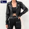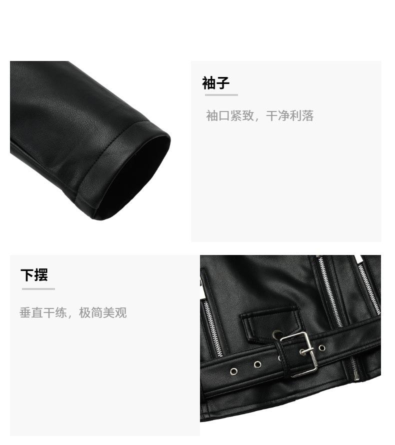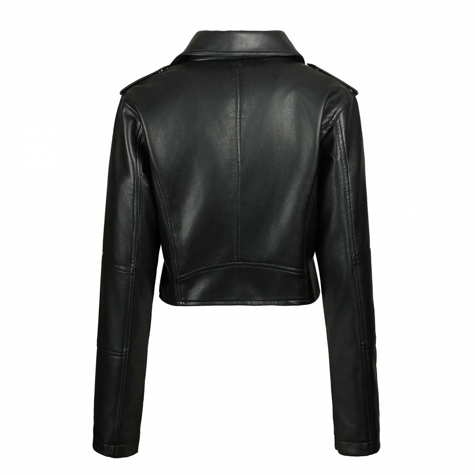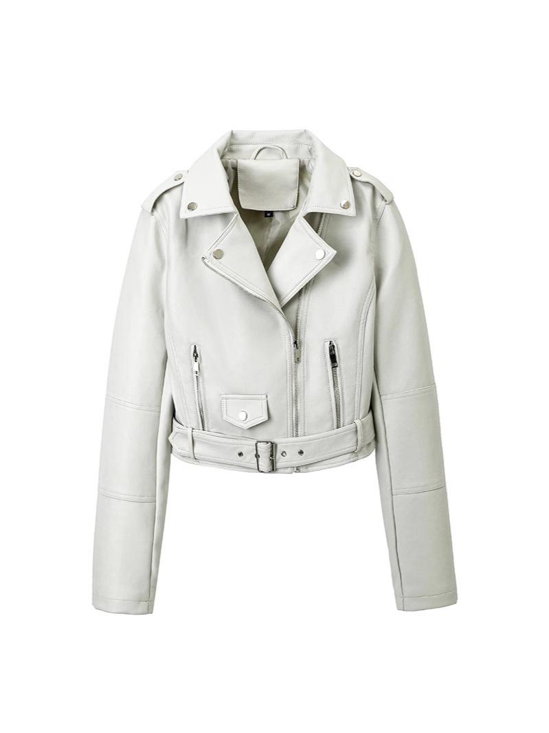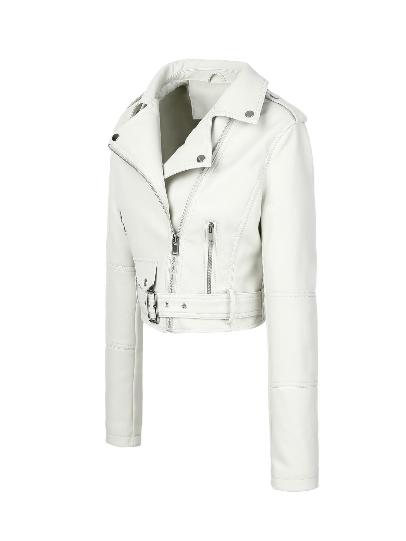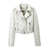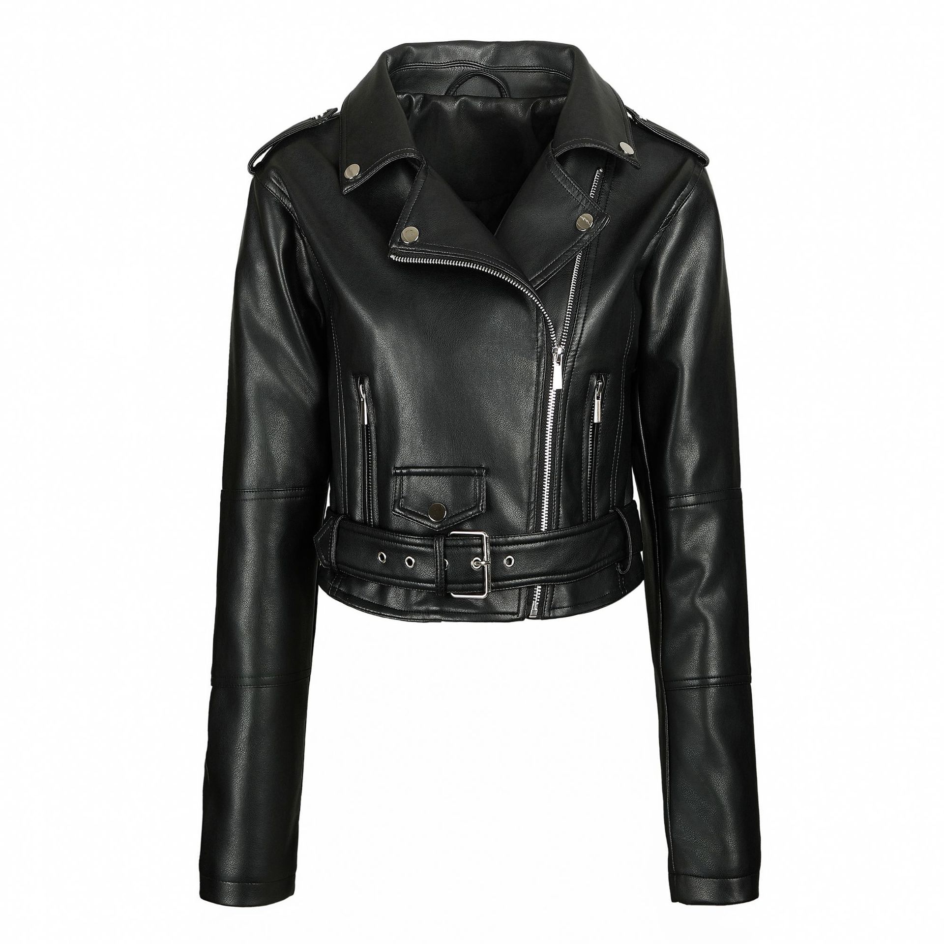Chaqueta de Cuero PU para Mujer Estilo Motociclista Europeo y Americano con Solapa, Cierre, Cinturón, Corte Entallado, Abrigo de Manga Larga, Chaqueta para Mujer