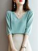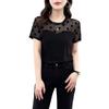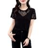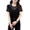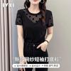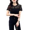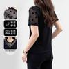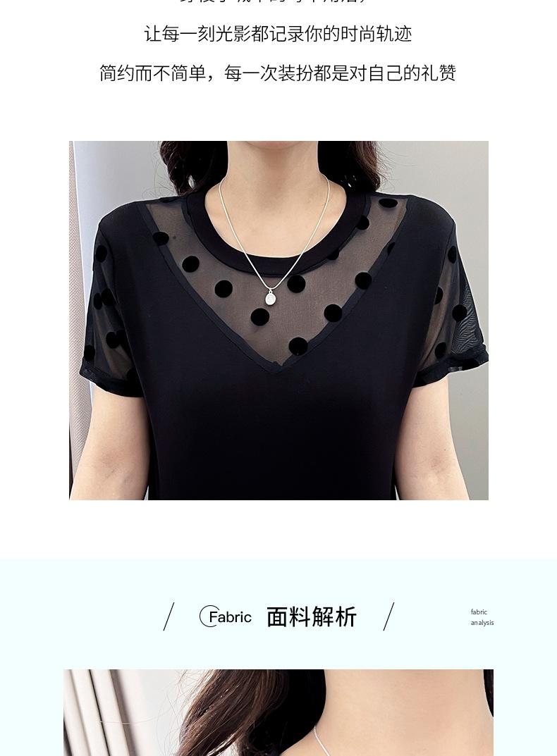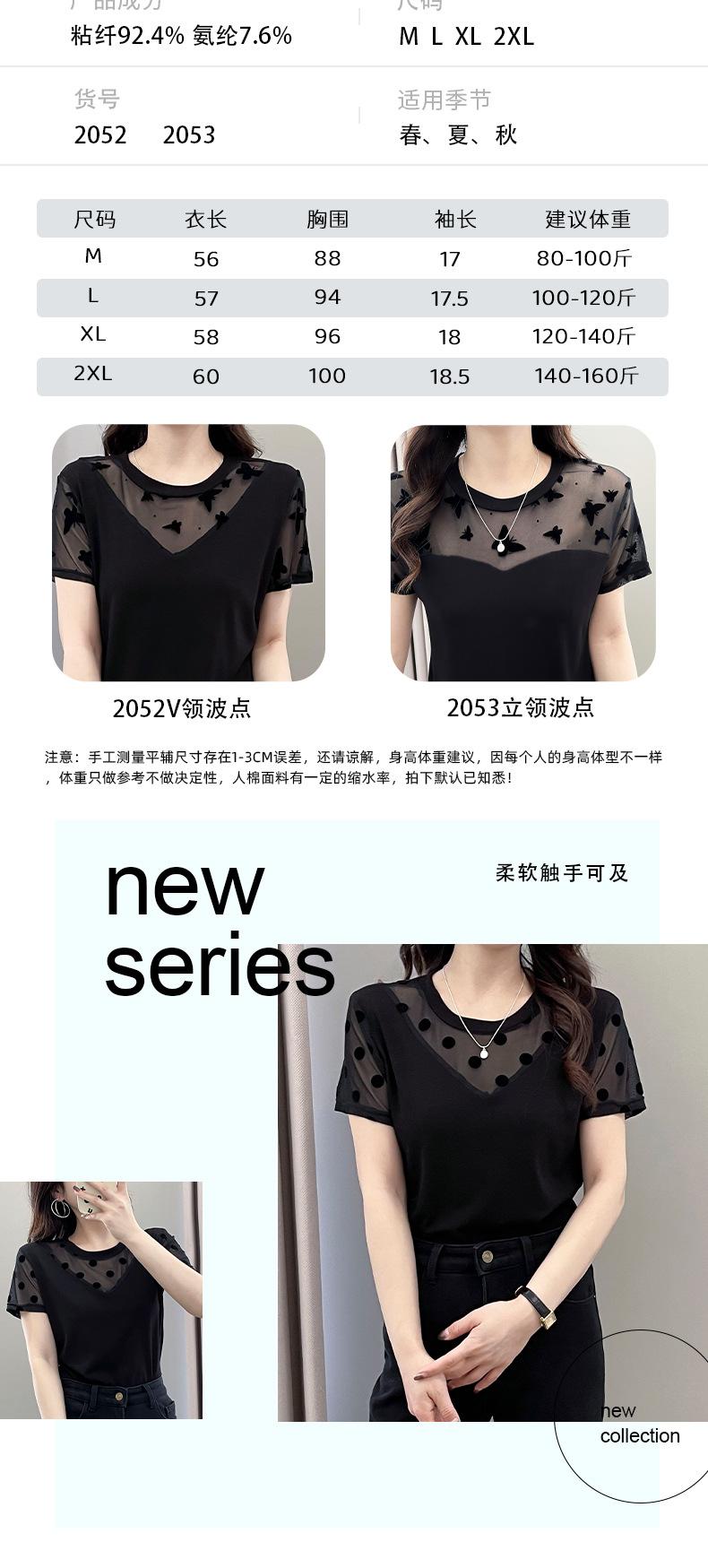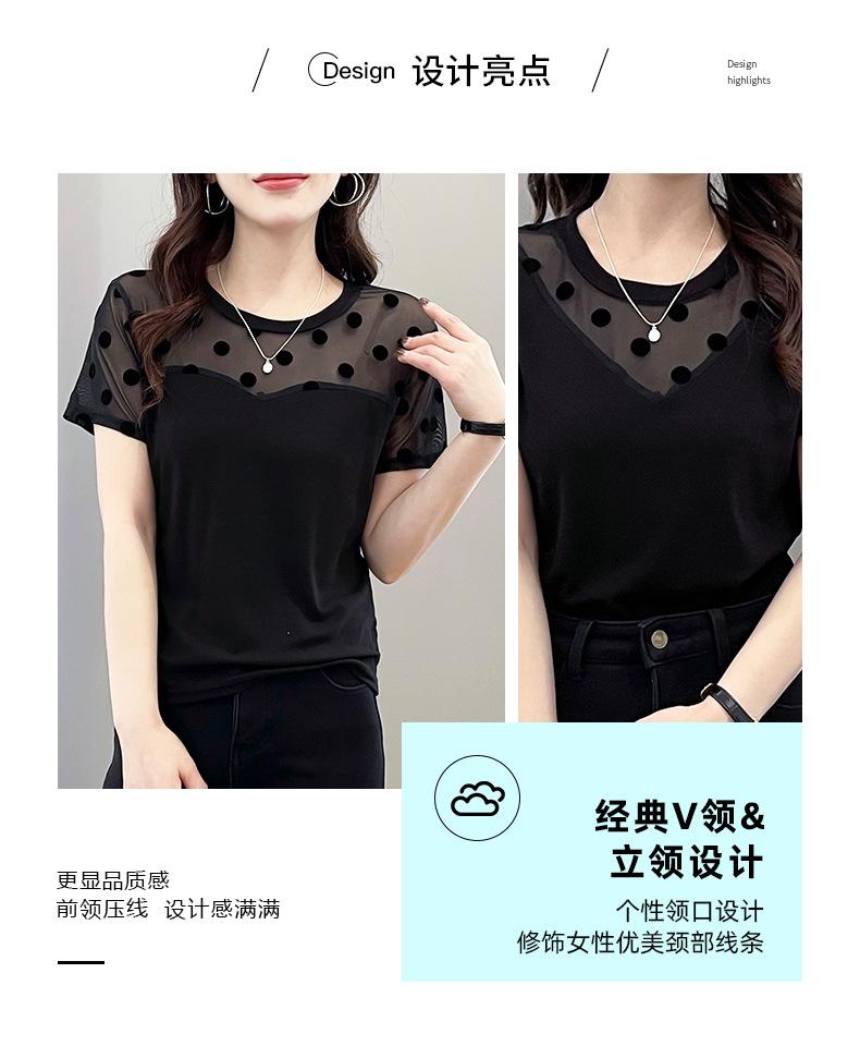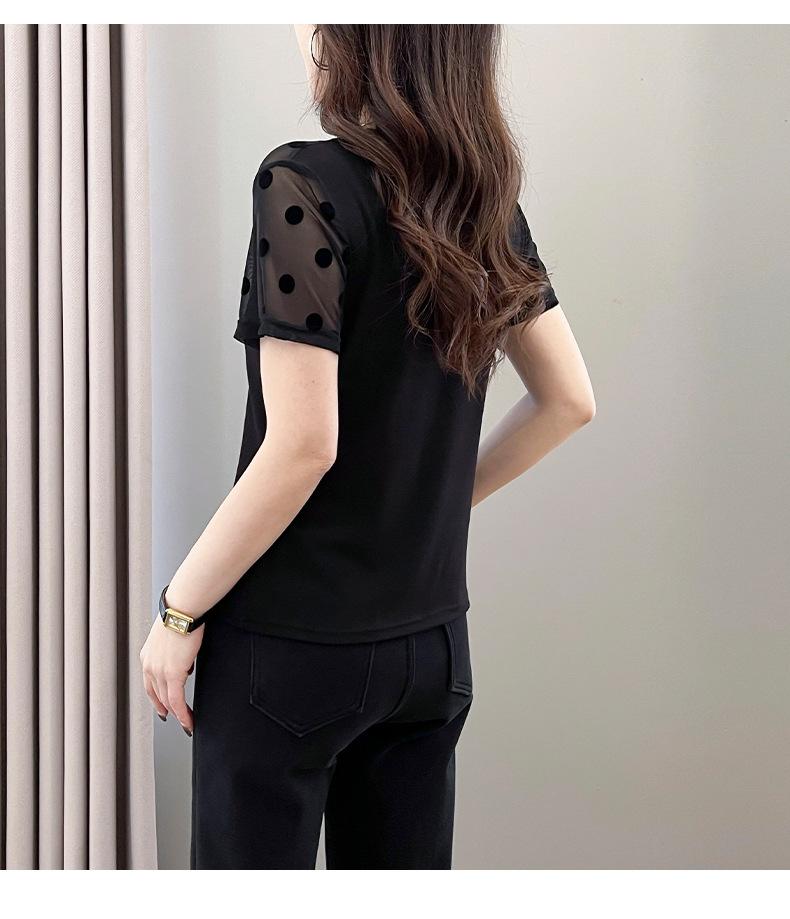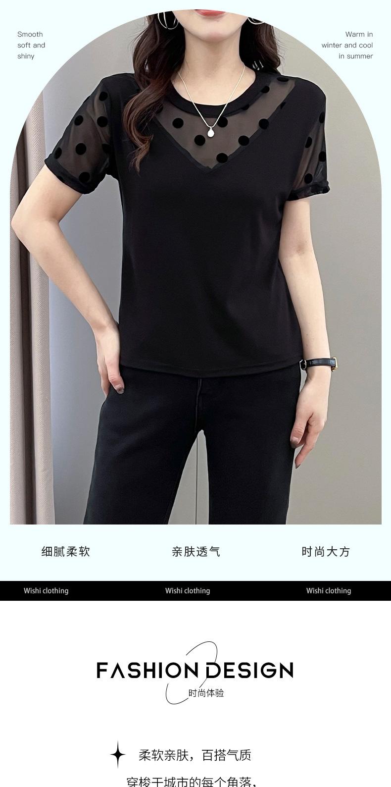 Camiseta de manga corta con lunares y costuras de malla, novedad de verano 2025, camiseta ajustada adelgazante, top de cuello redondo para mujer.