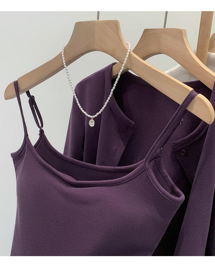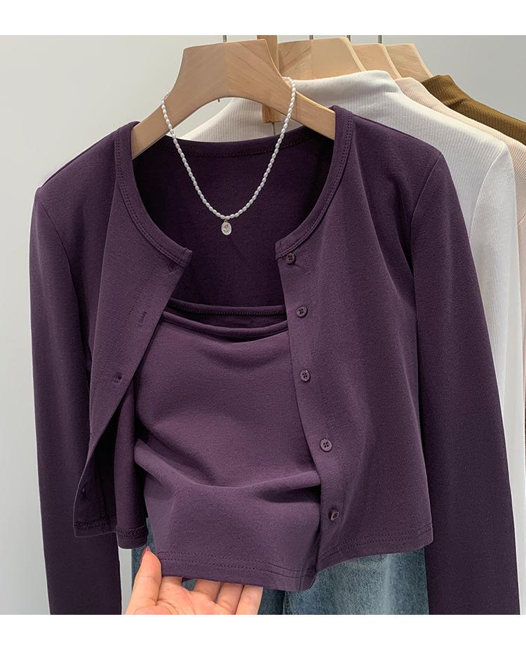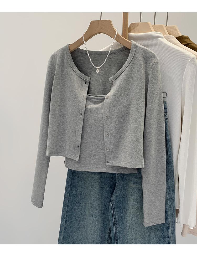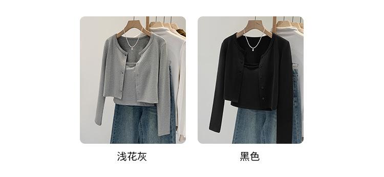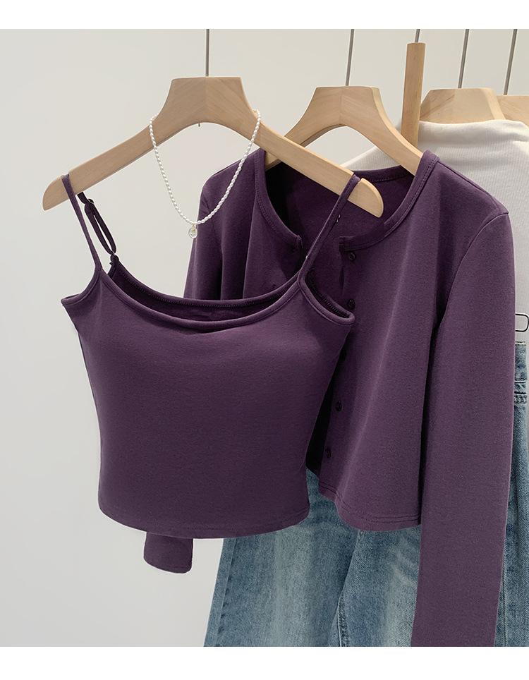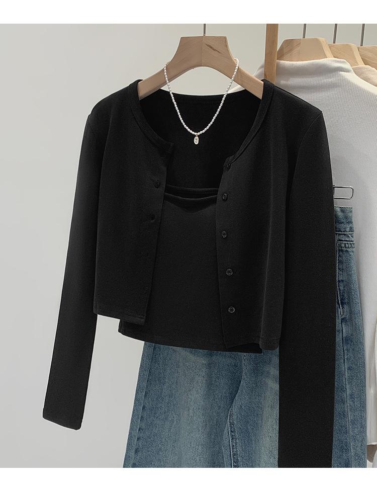 Conjunto de Dos Piezas Cárdigan con Tirantes Estilo Europeo y Americano para Mujer en Otoño, Manga Larga Slim, Conjunto de Top Sexy Slim y Versátil para Personas Pequeñas
