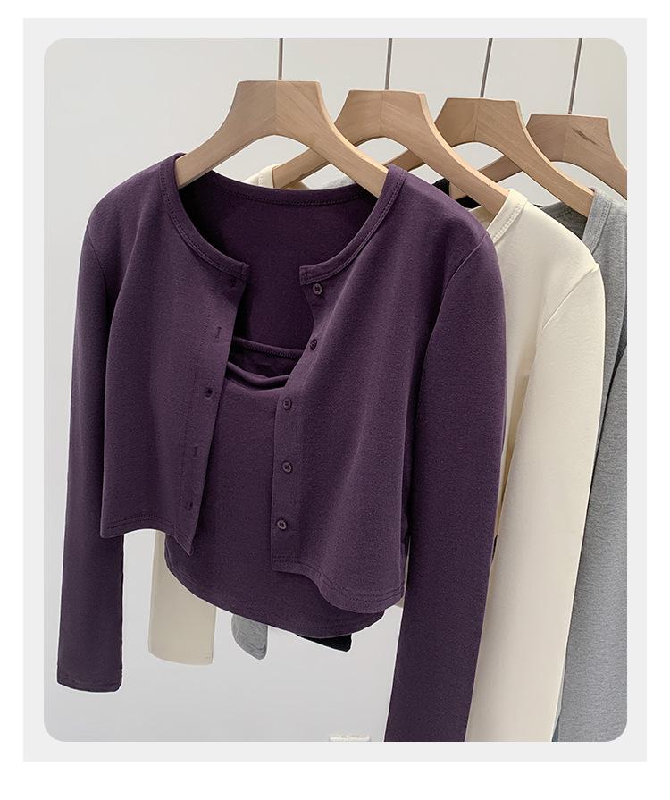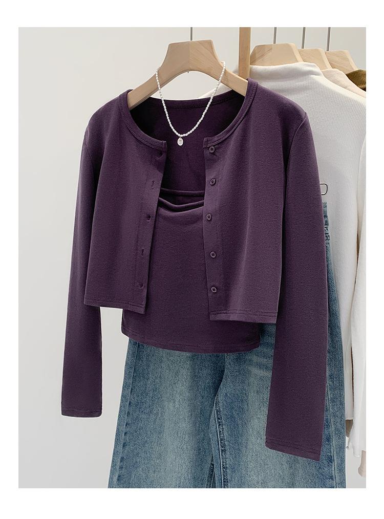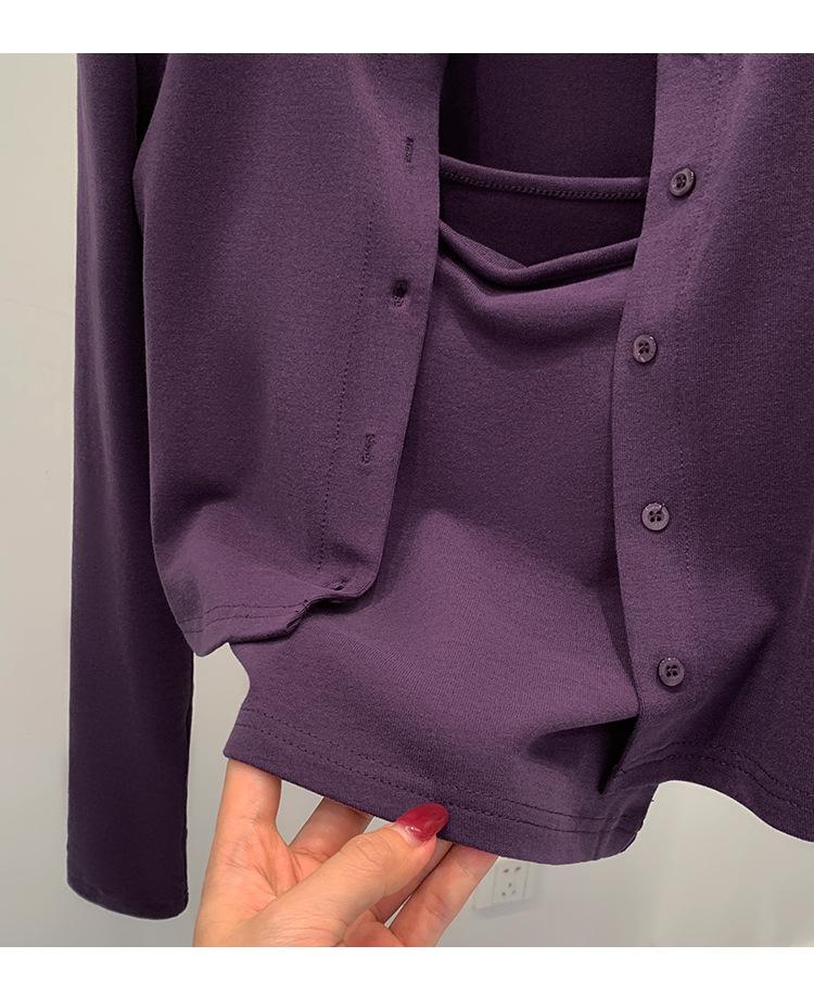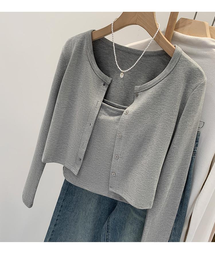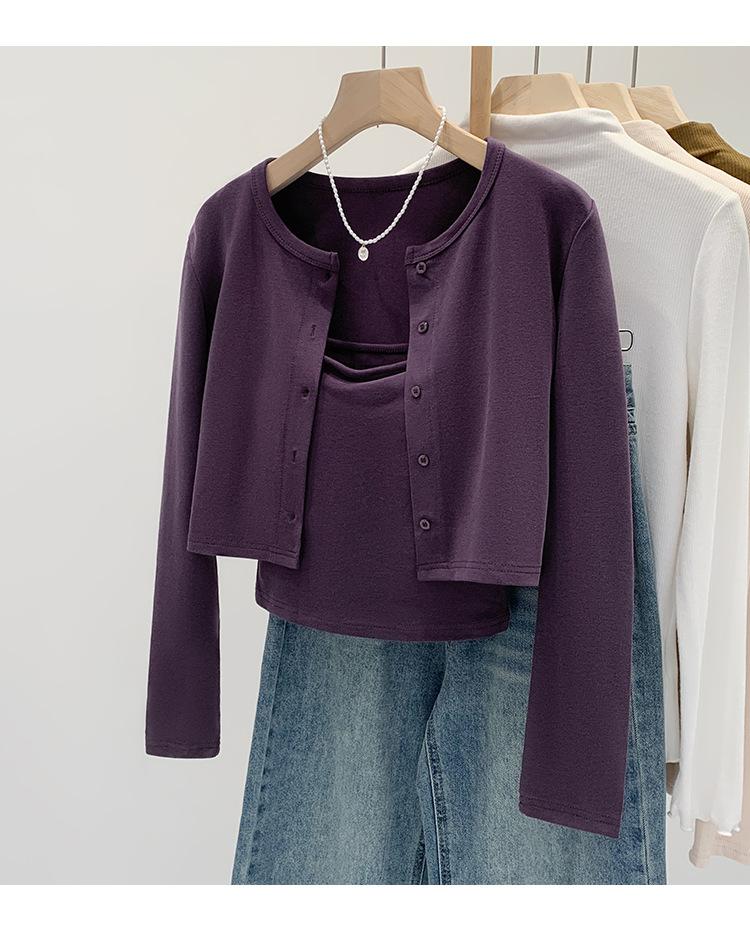 Conjunto de Dos Piezas Cárdigan con Tirantes Estilo Europeo y Americano para Mujer en Otoño, Manga Larga Slim, Conjunto de Top Sexy Slim y Versátil para Personas Pequeñas