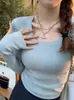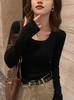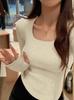 2025 Nuevo Tejido de Manga Larga para Mujer, Corte Ajustado, Camisa Básica de Cuello Cuadrado, Top de Escote Bajo, Moderno y Adelgazante, No Exigente