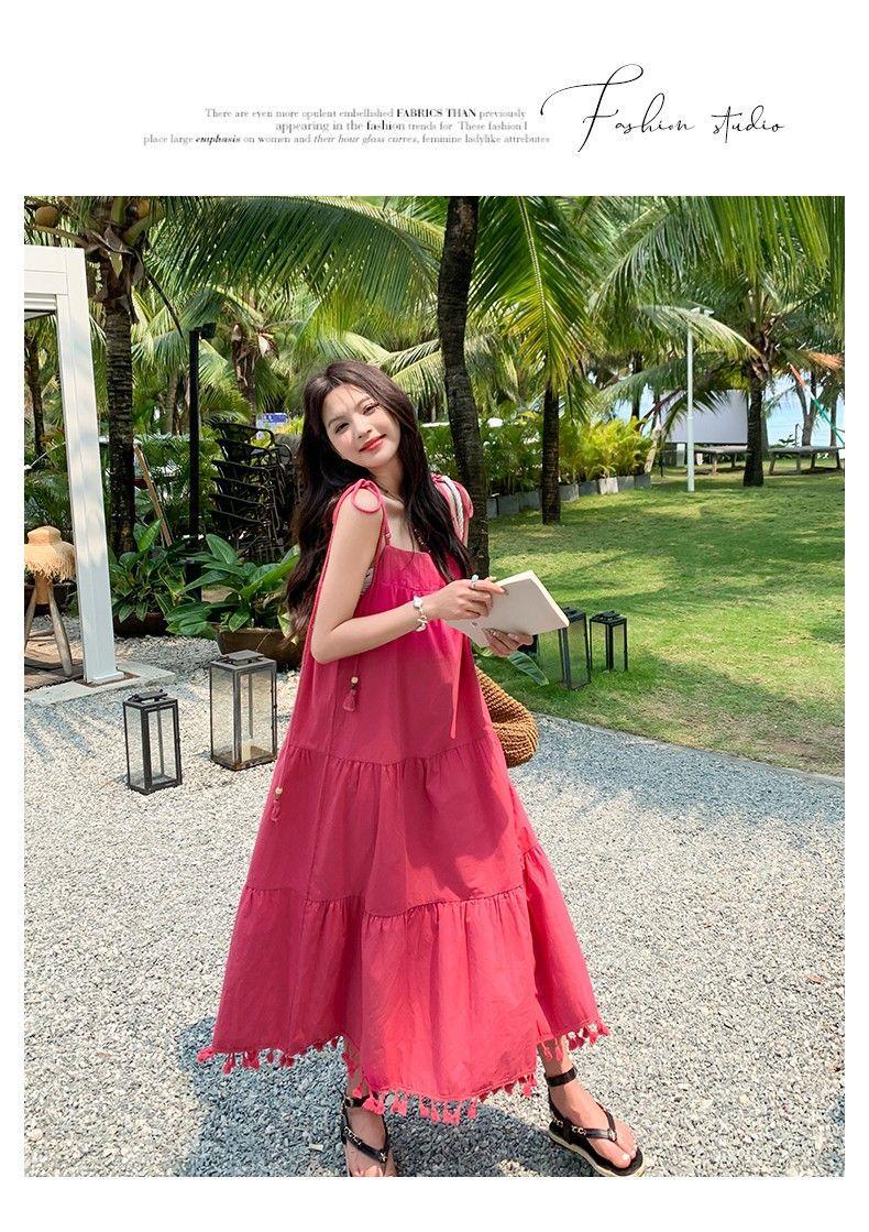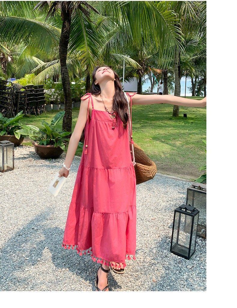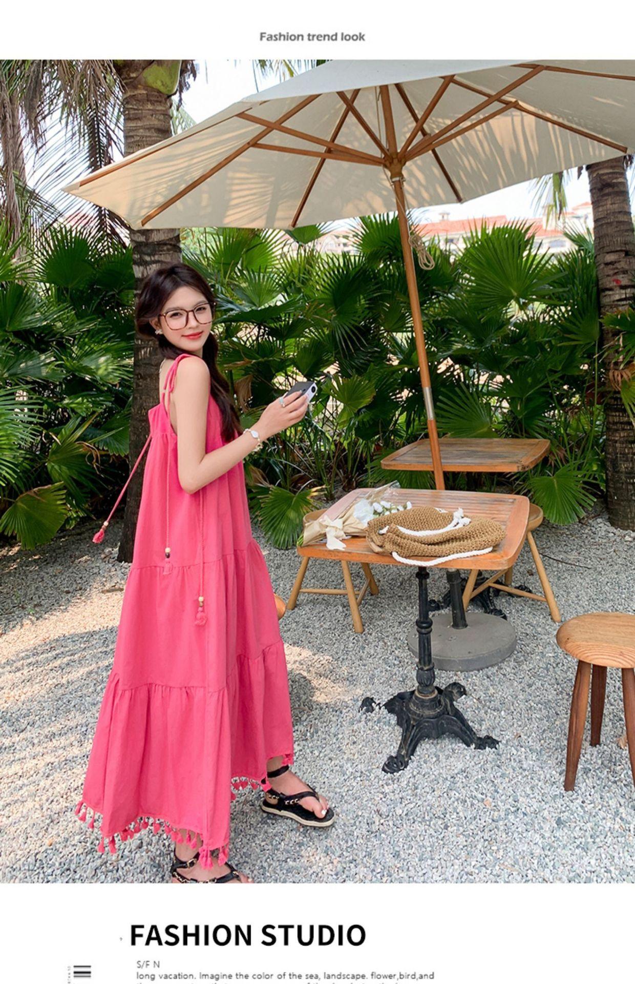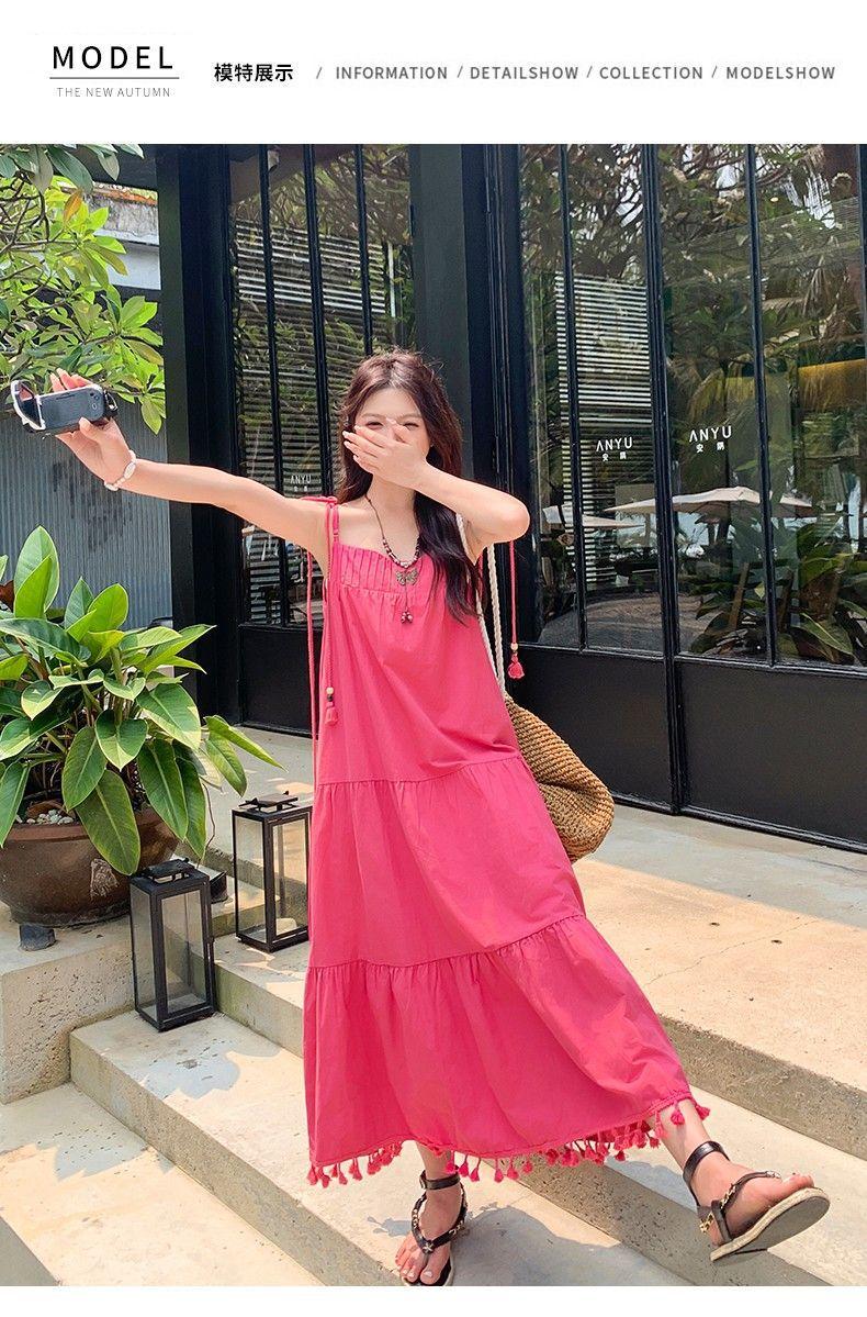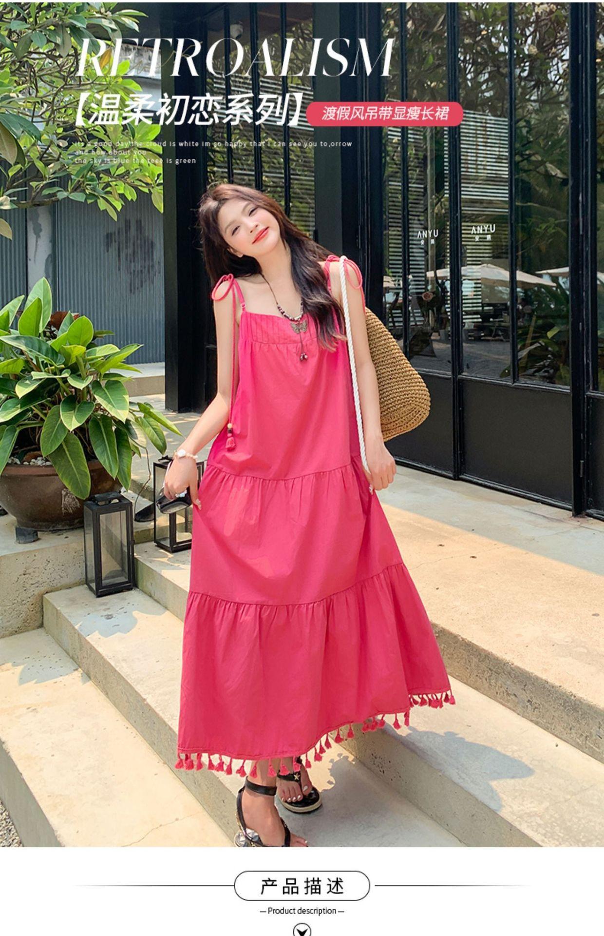 Vestido con borlas y tirantes de diseño de nicho para mujer, para vacaciones en la playa, de verano, suave, suelto, adelgazante, elegante, falda larga