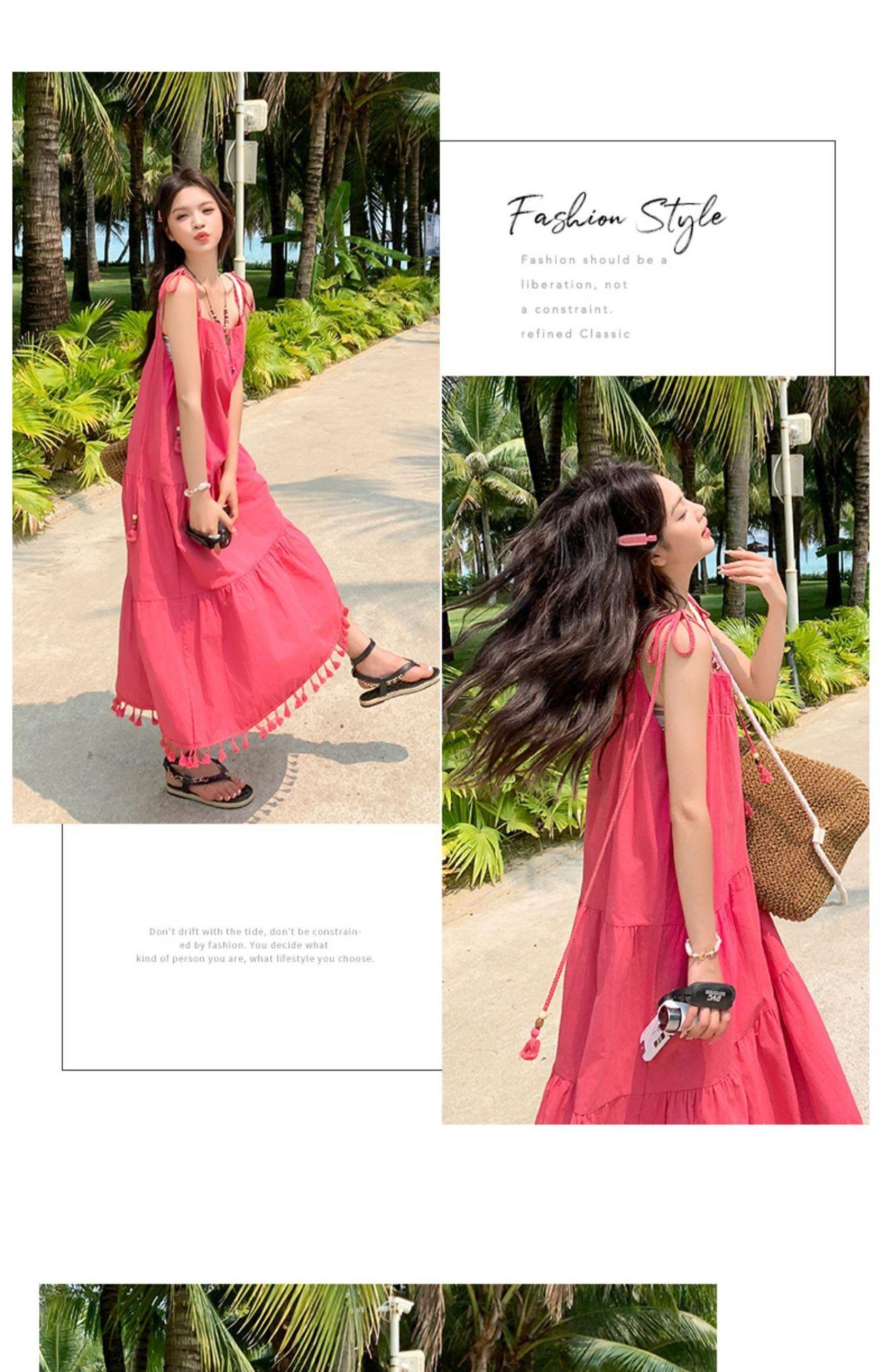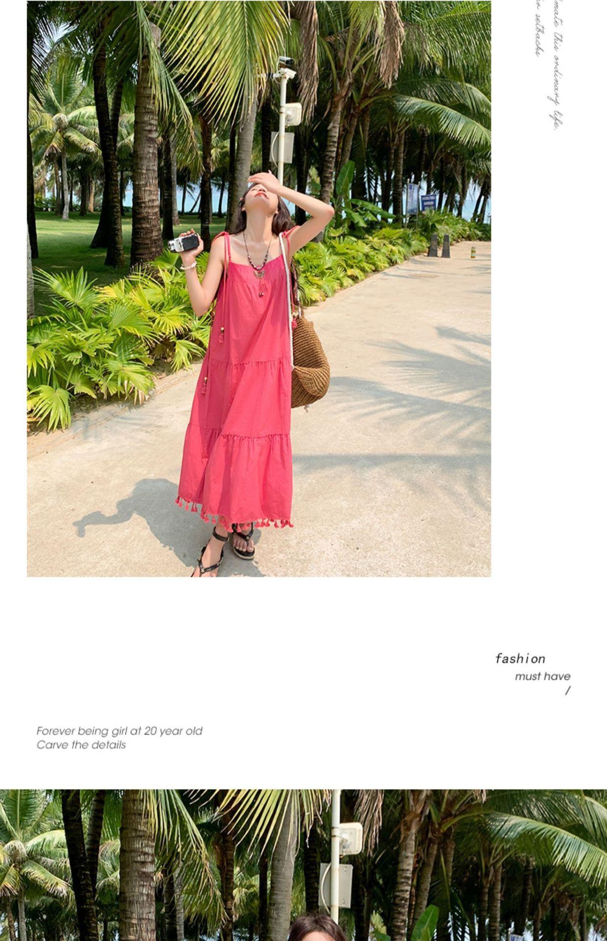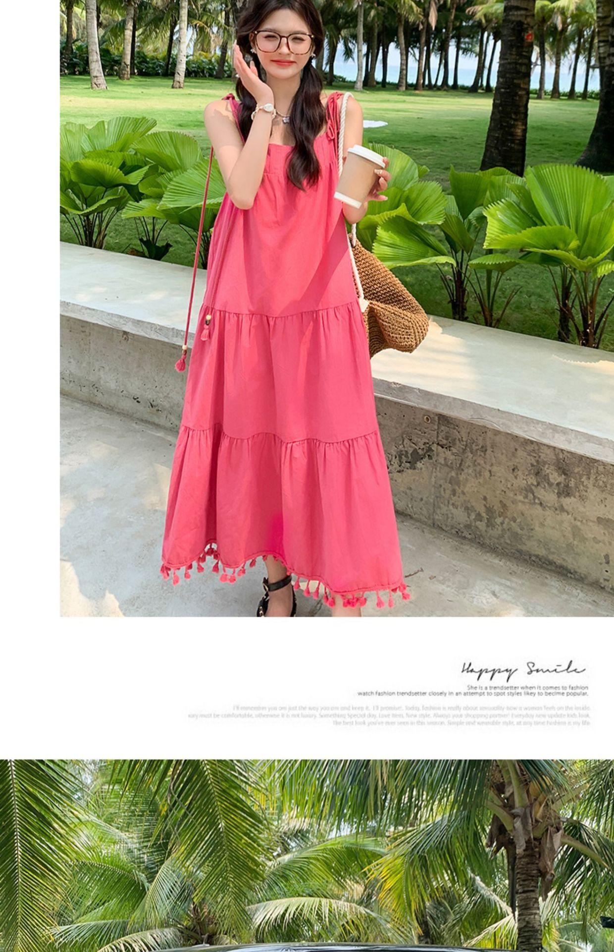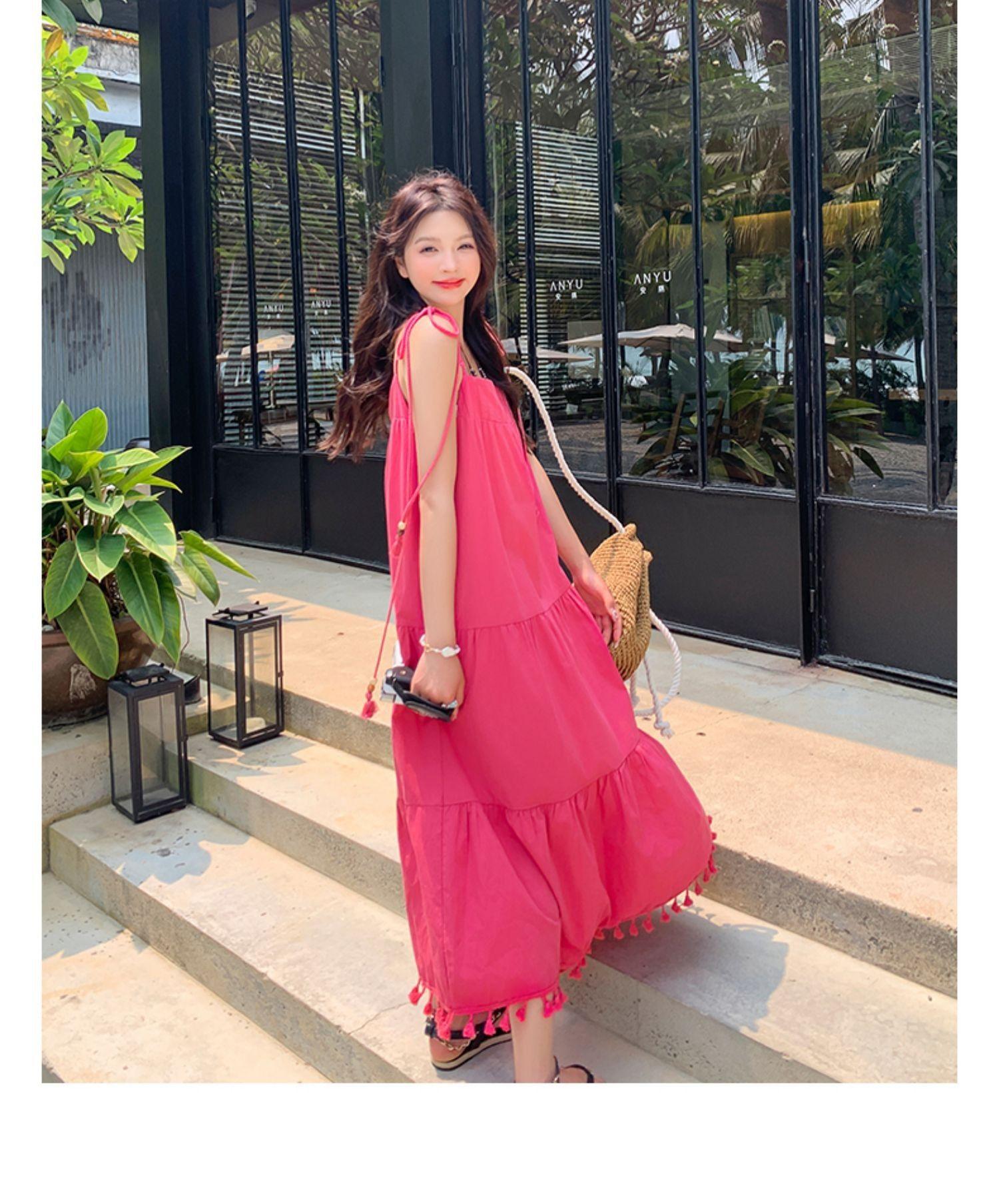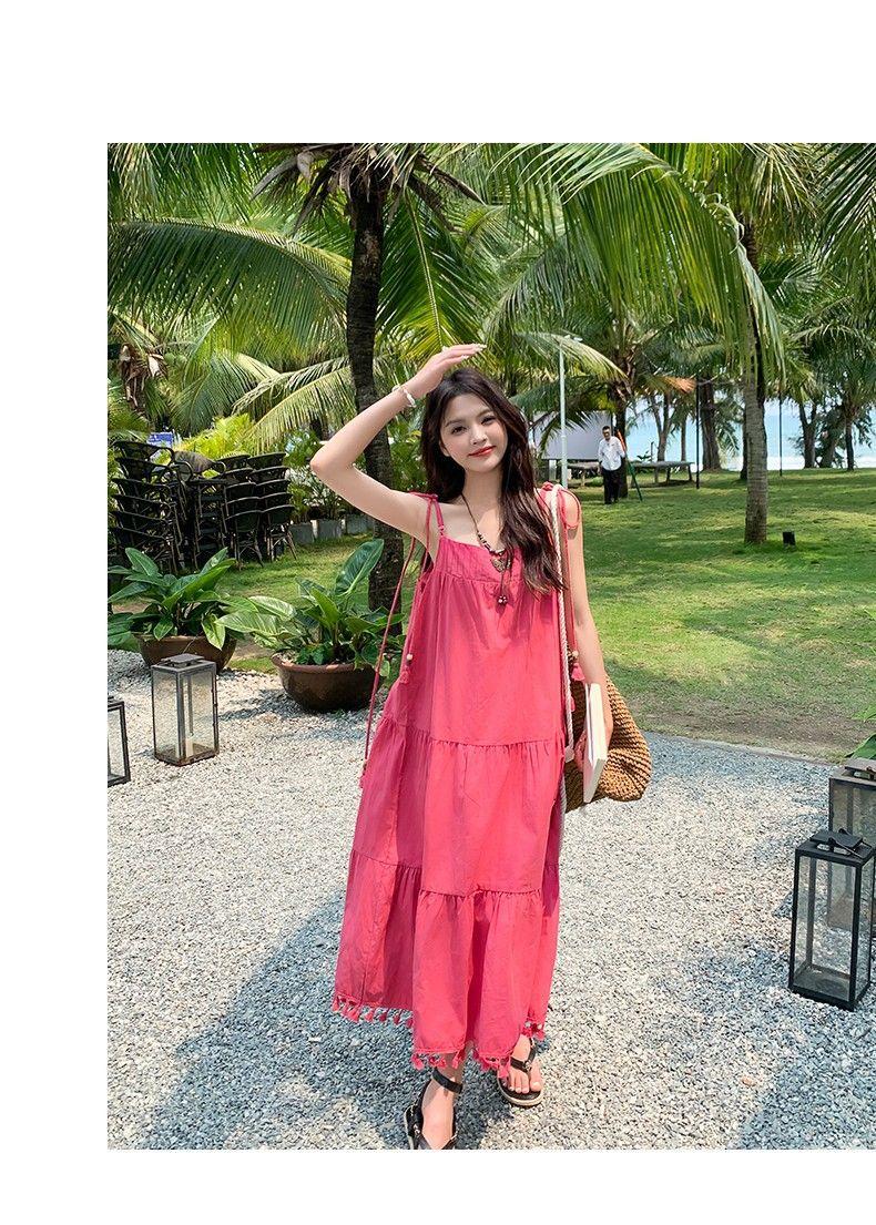 Vestido con borlas y tirantes de diseño de nicho para mujer, para vacaciones en la playa, de verano, suave, suelto, adelgazante, elegante, falda larga