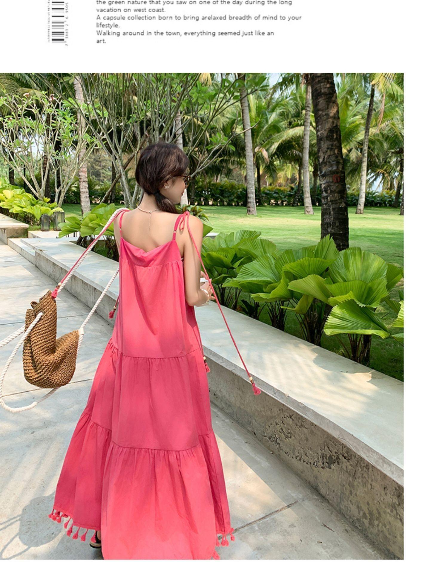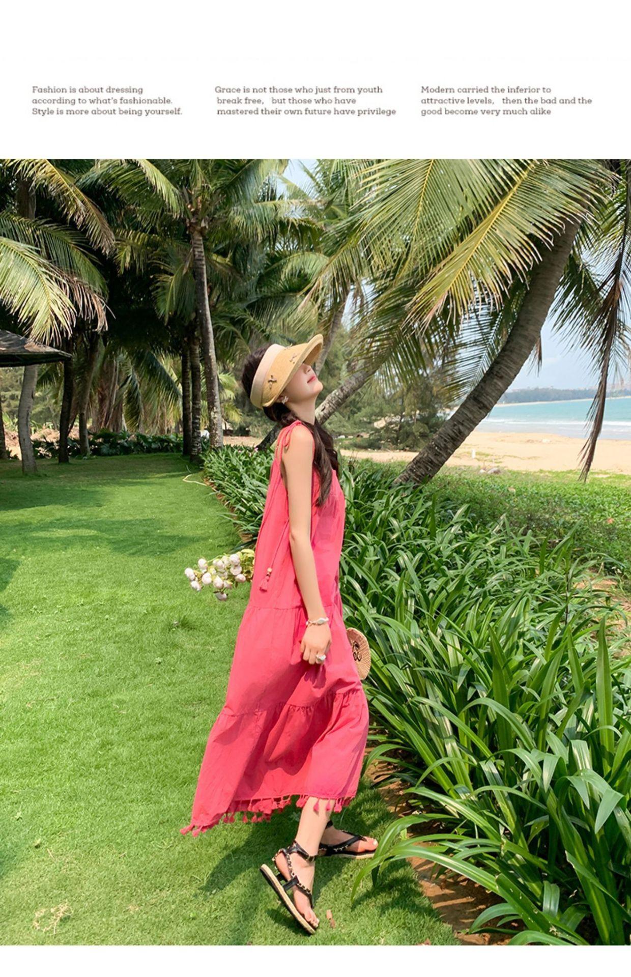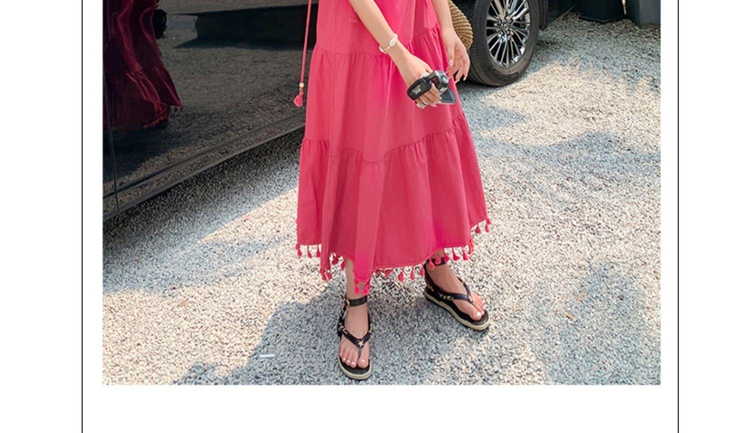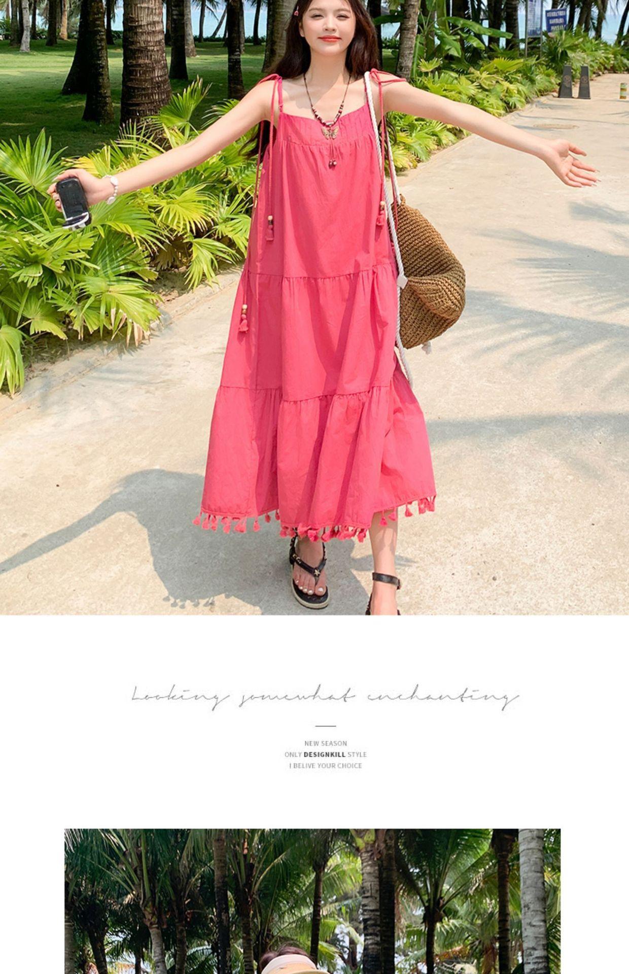Vestido con borlas y tirantes de diseño de nicho para mujer, para vacaciones en la playa, de verano, suave, suelto, adelgazante, elegante, falda larga