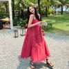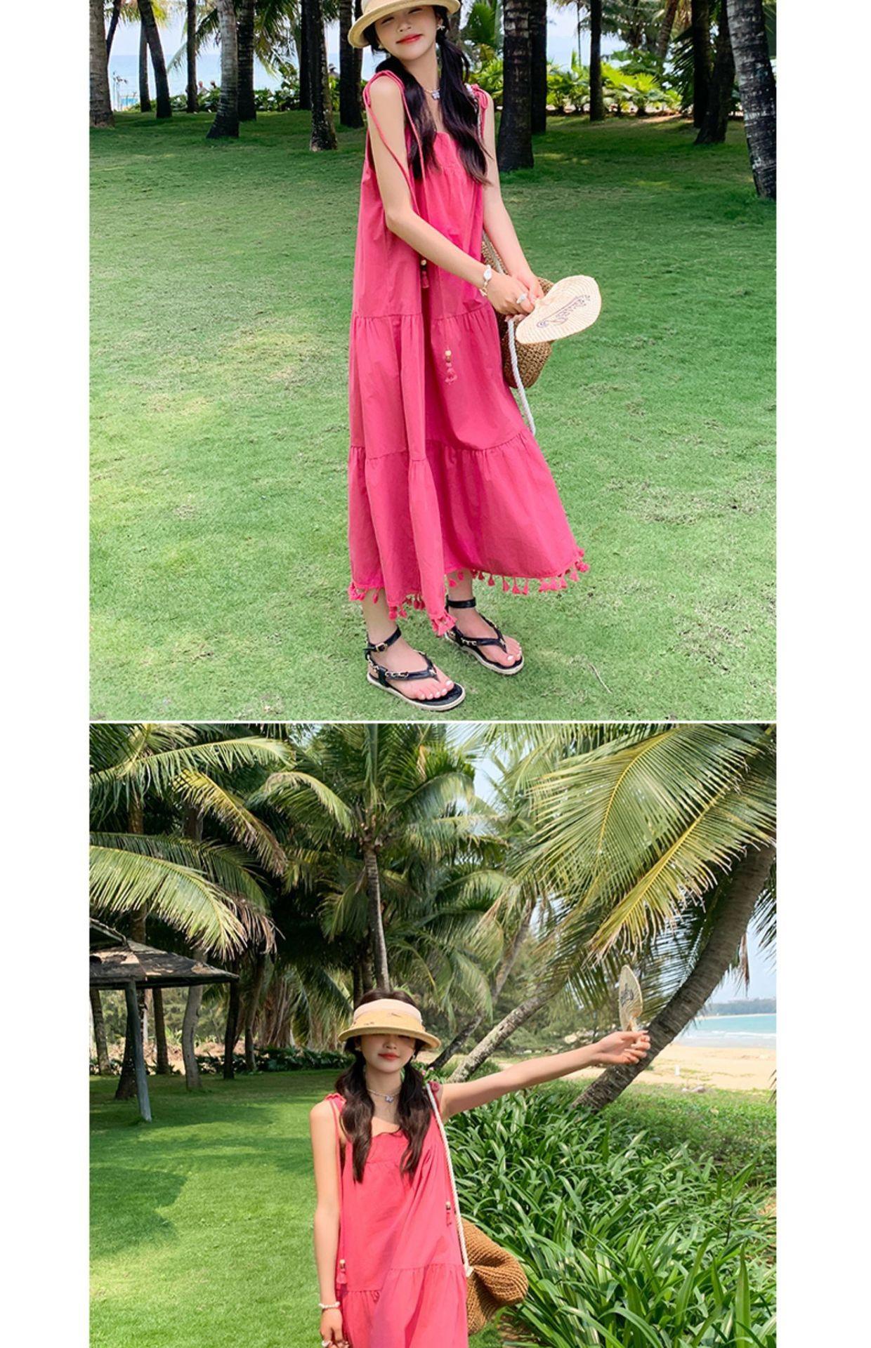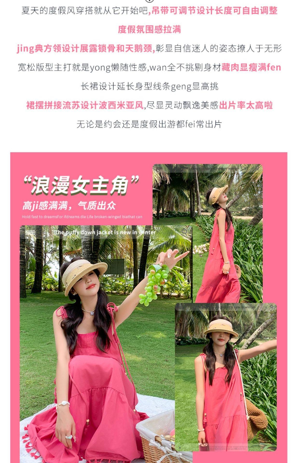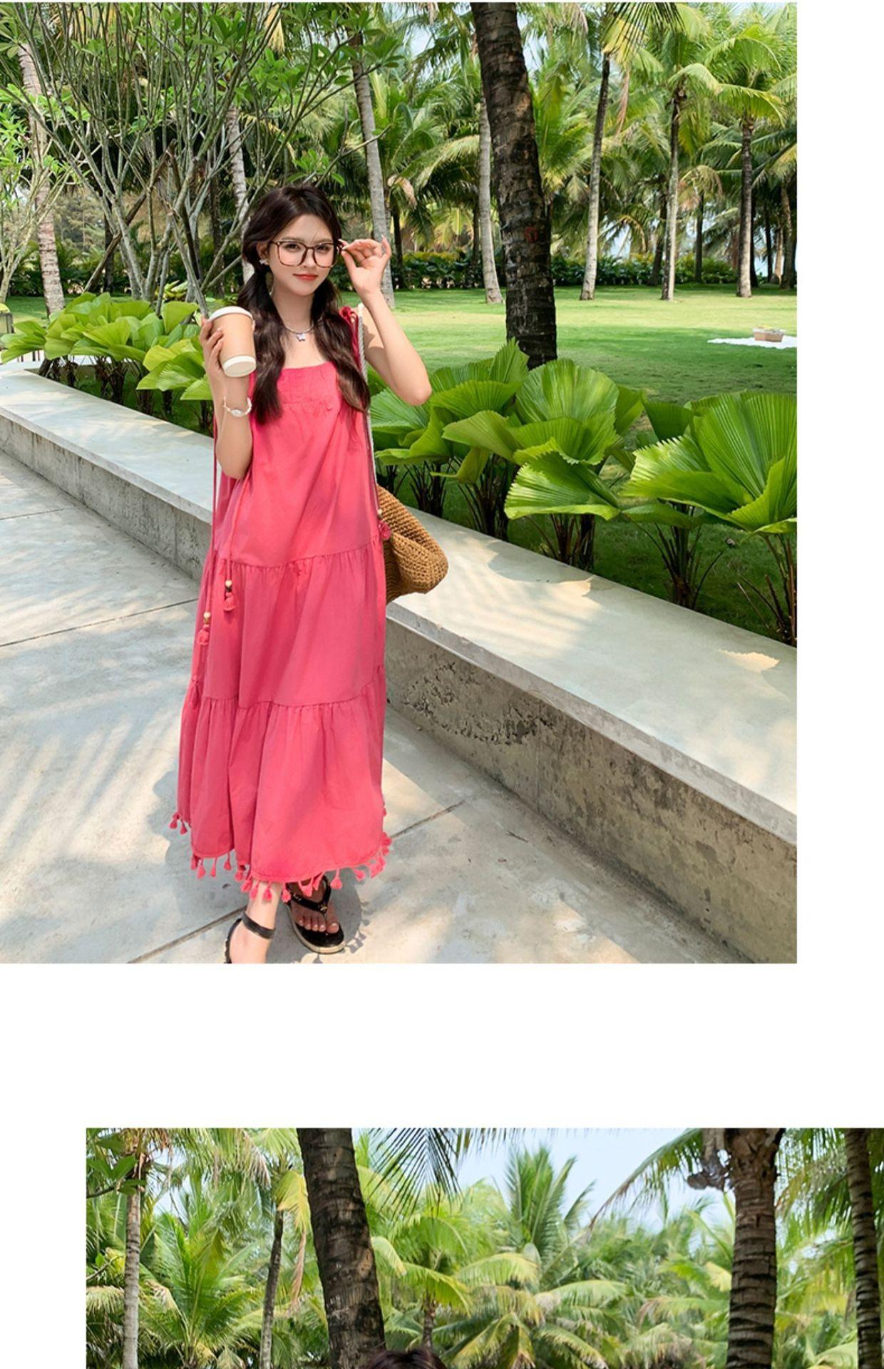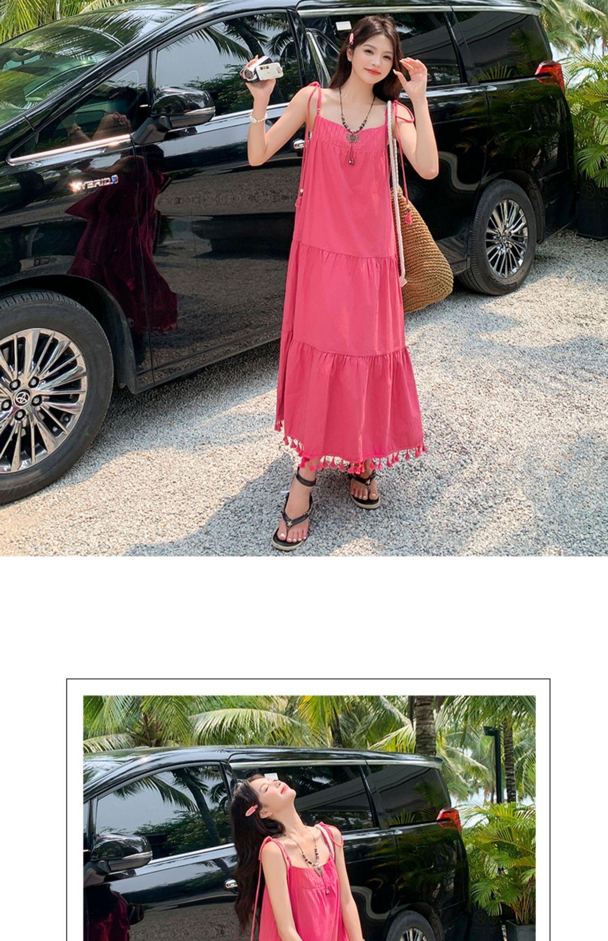 Vestido con borlas y tirantes de diseño de nicho para mujer, para vacaciones en la playa, de verano, suave, suelto, adelgazante, elegante, falda larga
