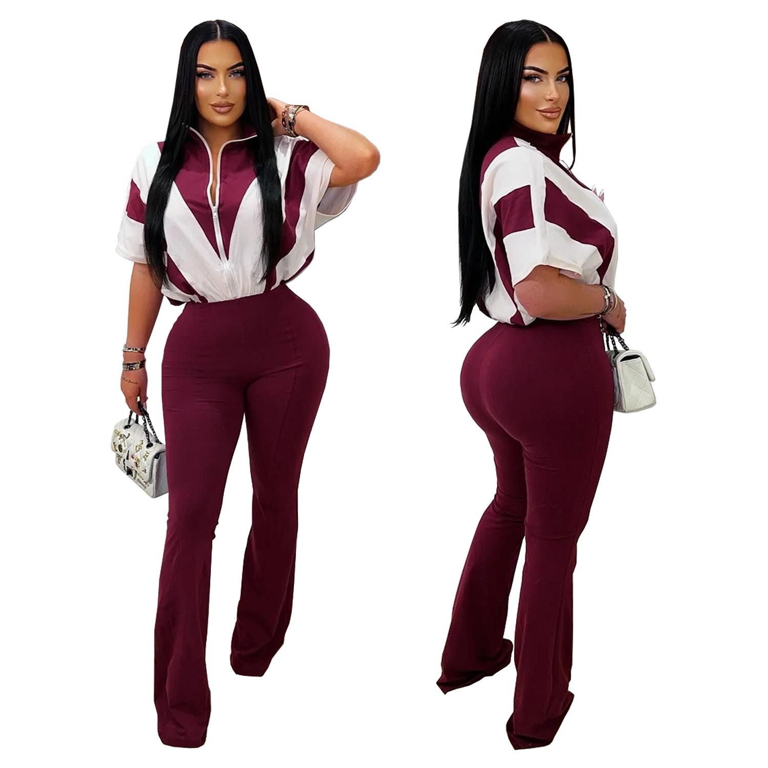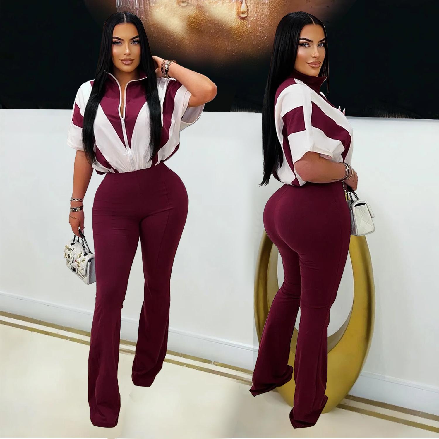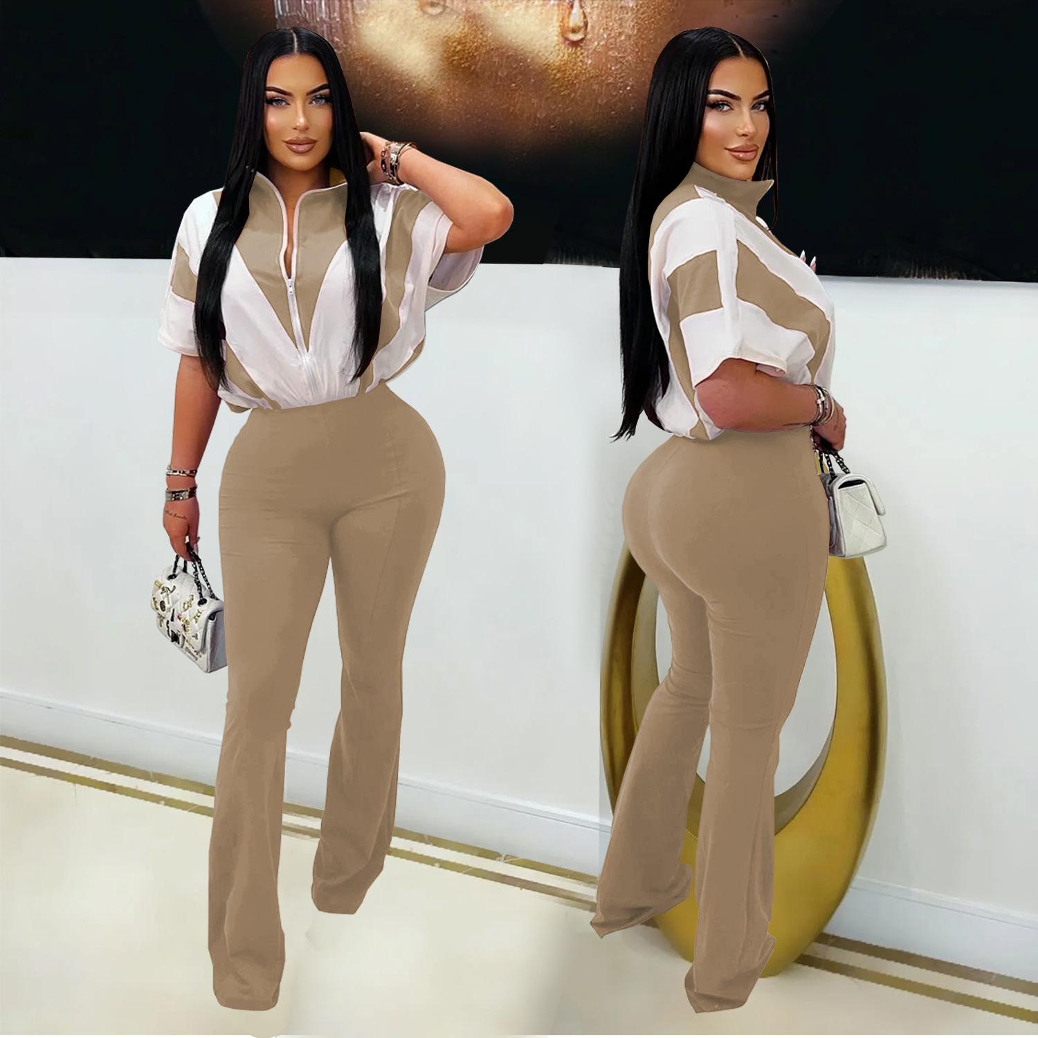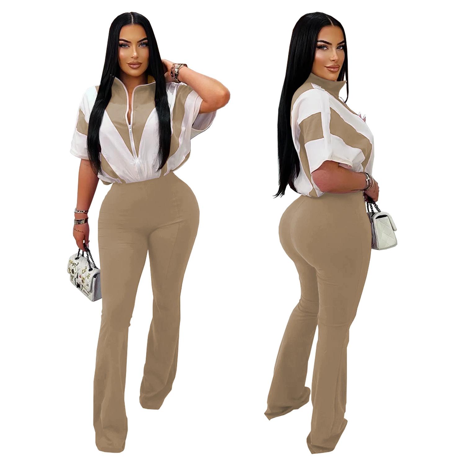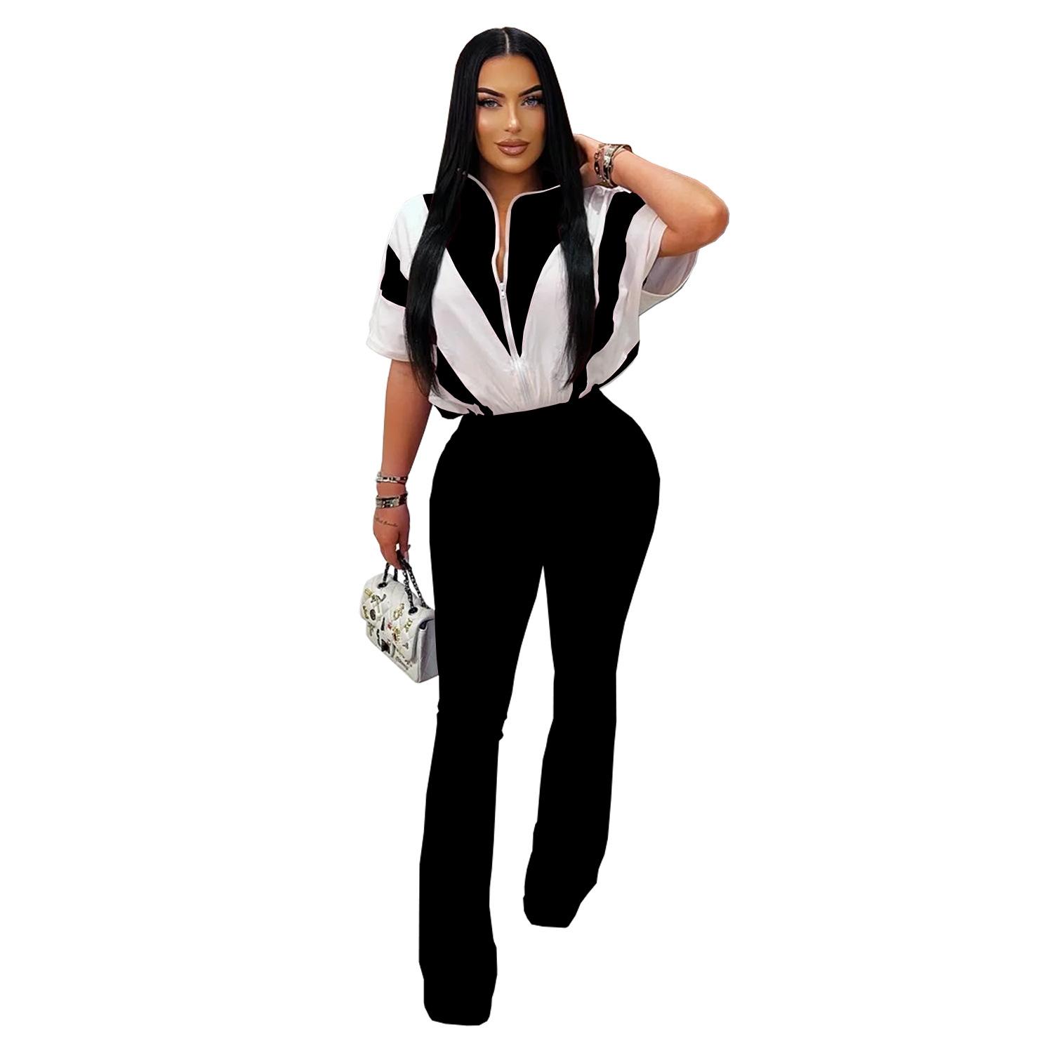 C7306 Conjunto de dos piezas de pantalones deportivos ajustados informales de manga corta para mujer, estilo europeo y americano, de AliExpress y Amazon, disponible en Europa y América.